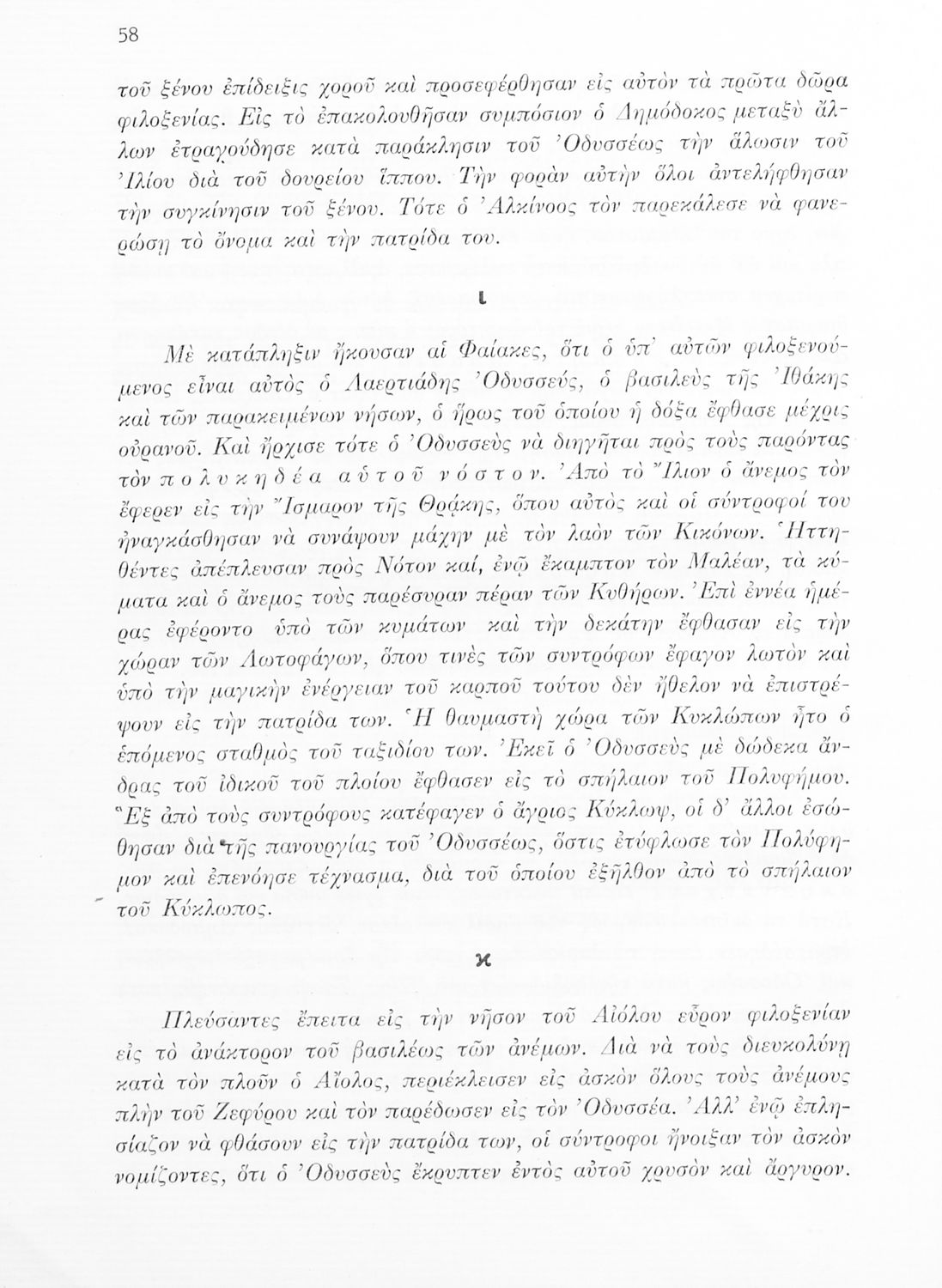 Σχολικό Εγχειρίδιο Αρχαίων Ελληνικών για τους μαθητές του Γυμνασίου. Το βιβλίο εισάγει τους μαθητές στο Ομηρικό έπος της Οδύσσειας. Στο πρώτο μέρος παρέχει πληροφορίες σχετικά με το μυκηναϊκό πολιτισμό και τους Αχαιούς. Στη συνέχεια παρουσιάζει το πρωτότυπο κείμενο του Ομήρου συνοδευόμενο από ερμηνευτικά και λεξιλογικά σχόλια.