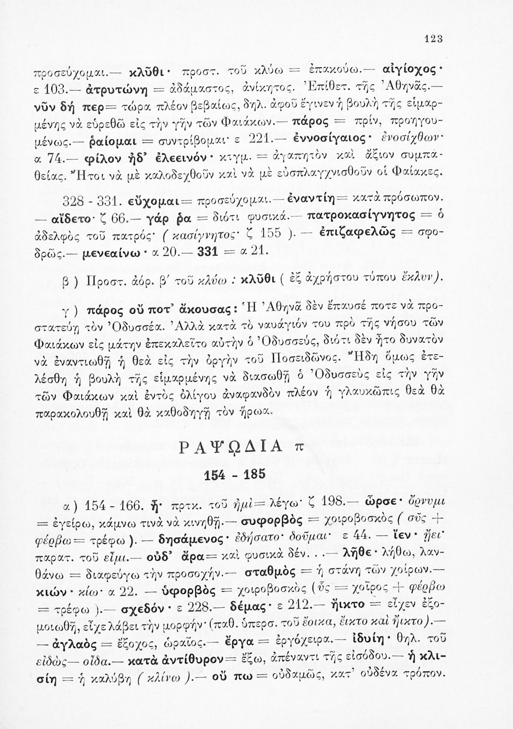 Σχολικό εγχειρίδιο Αρχαίων Ελληνικών Γυμνασίου που περιλαμβάνει αποσπάσματα από τις ραψωδίες της Οδύσσειας, ερμηνευτικά και πραγματολογικά σχόλια, και λεξιλογικές παρατηρήσεις.