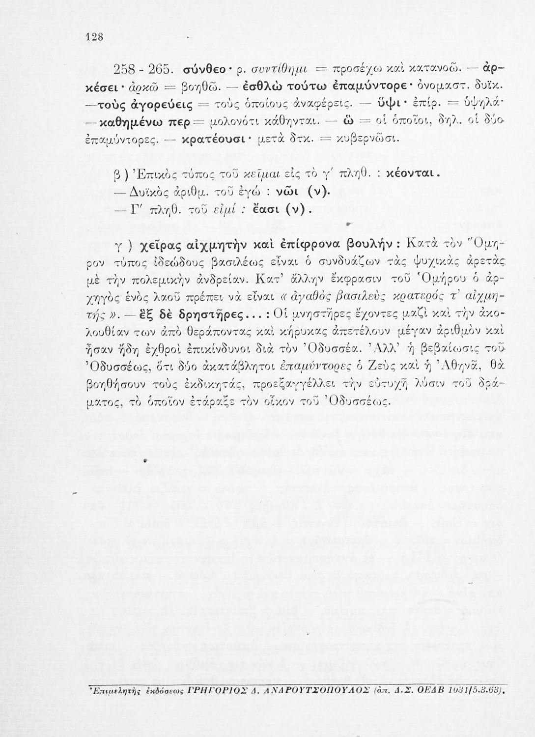 Τίτλος: Ομήρου Οδύσσεια (Εκλογαί), δια την Δ΄ τάξιν των εξατάξιων Γυμνασίων