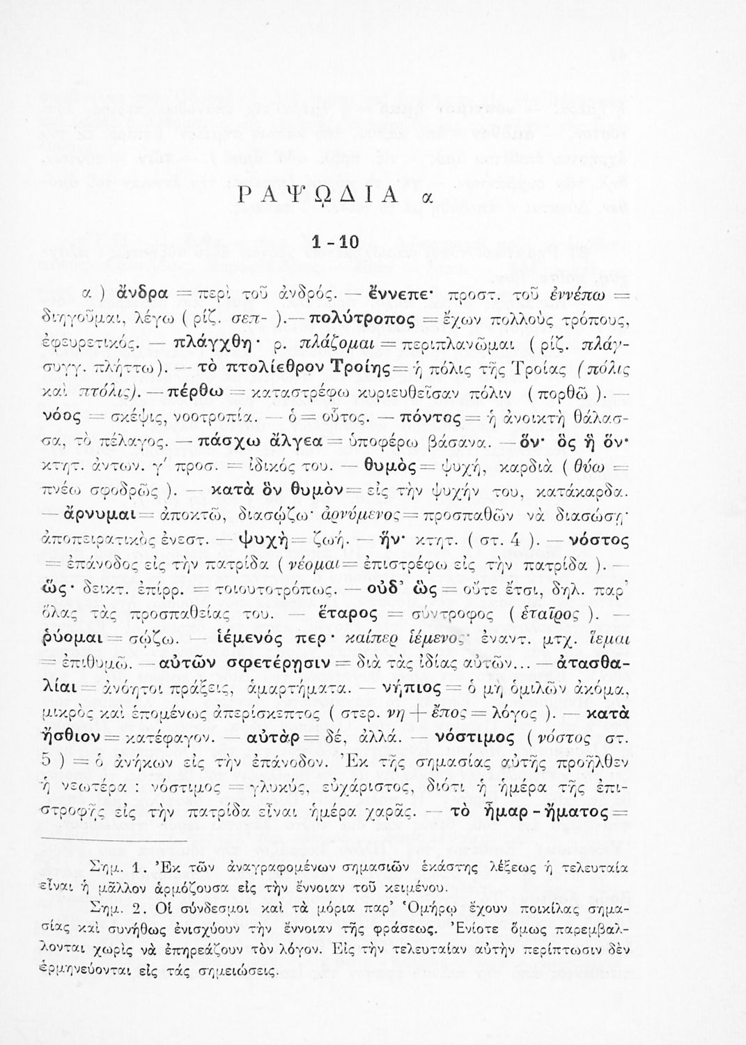 Σχολικό εγχειρίδιο Αρχαίων Ελληνικών Γυμνασίου που περιλαμβάνει αποσπάσματα από τις ραψωδίες της Οδύσσειας, ερμηνευτικά και πραγματολογικά σχόλια, και λεξιλογικές παρατηρήσεις.