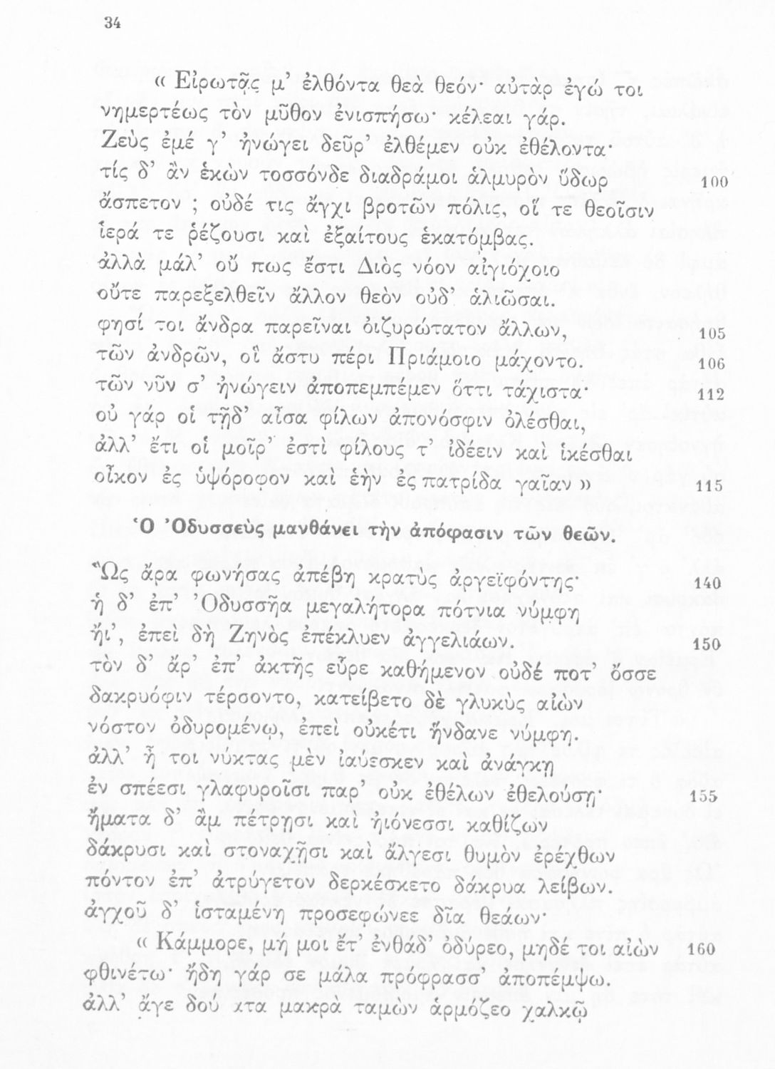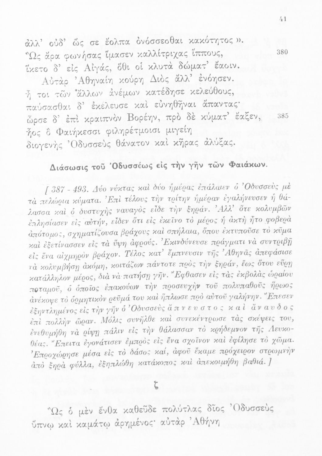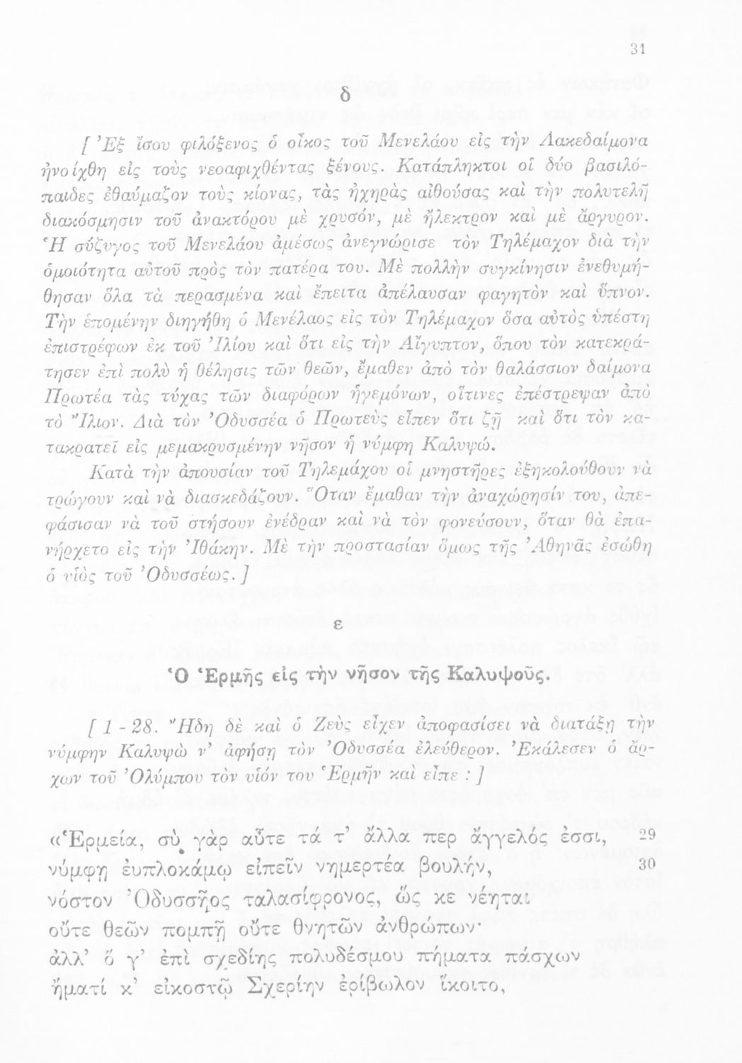 Ομήρου Οδύσσεια (Εκλογαί), Δ΄ Γυμνασίου