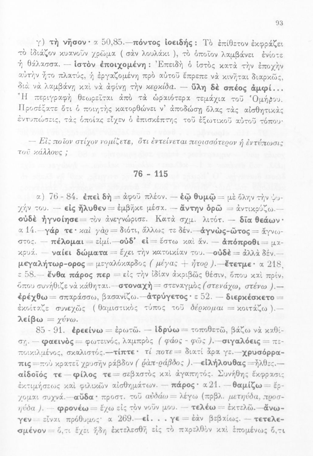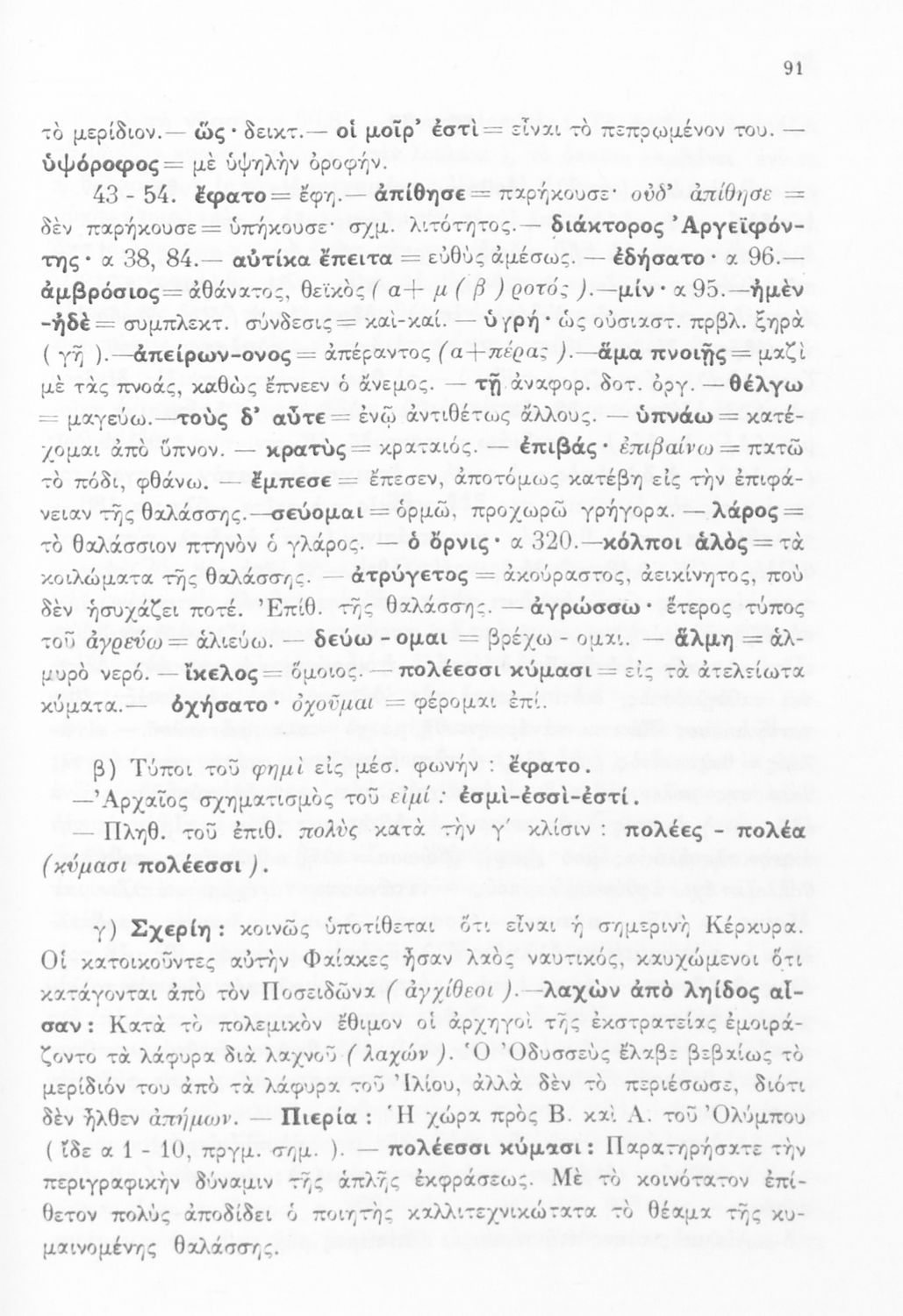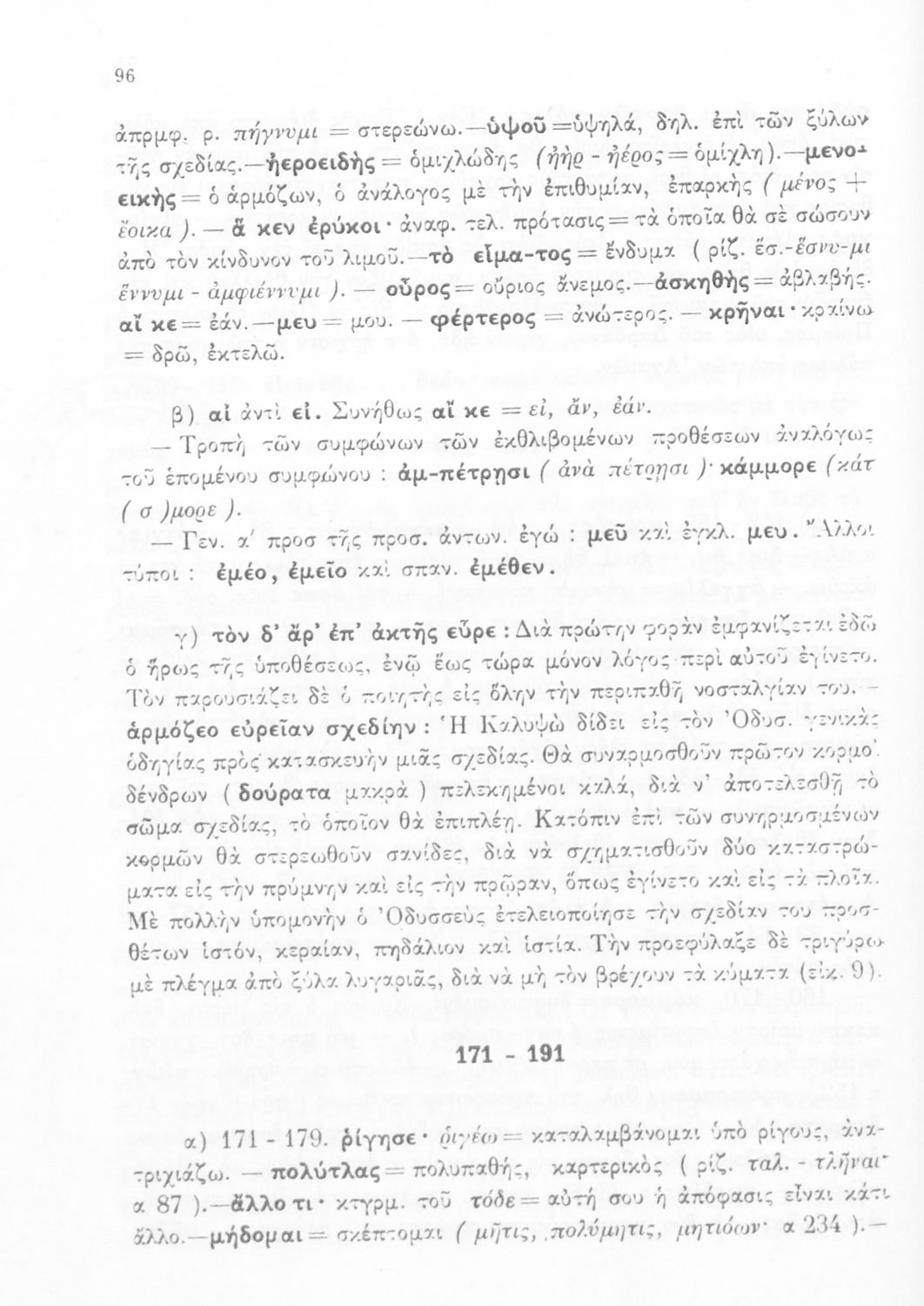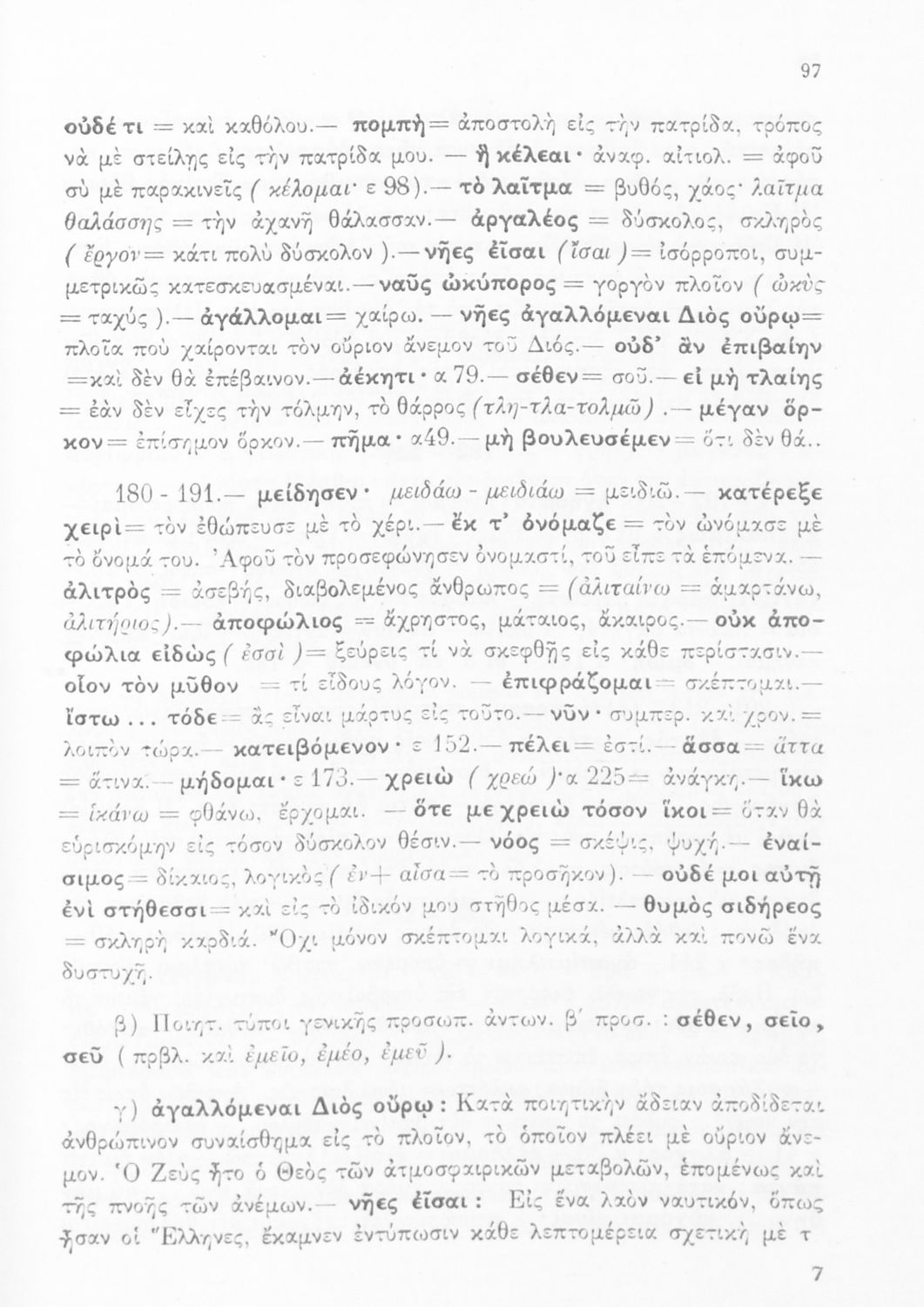 Σχολικό εγχειρίδιο Αρχαίων Ελληνικών Γυμνασίου που περιλαμβάνει μετάφραση της Οδύσσειας και λεξιλόγιο.