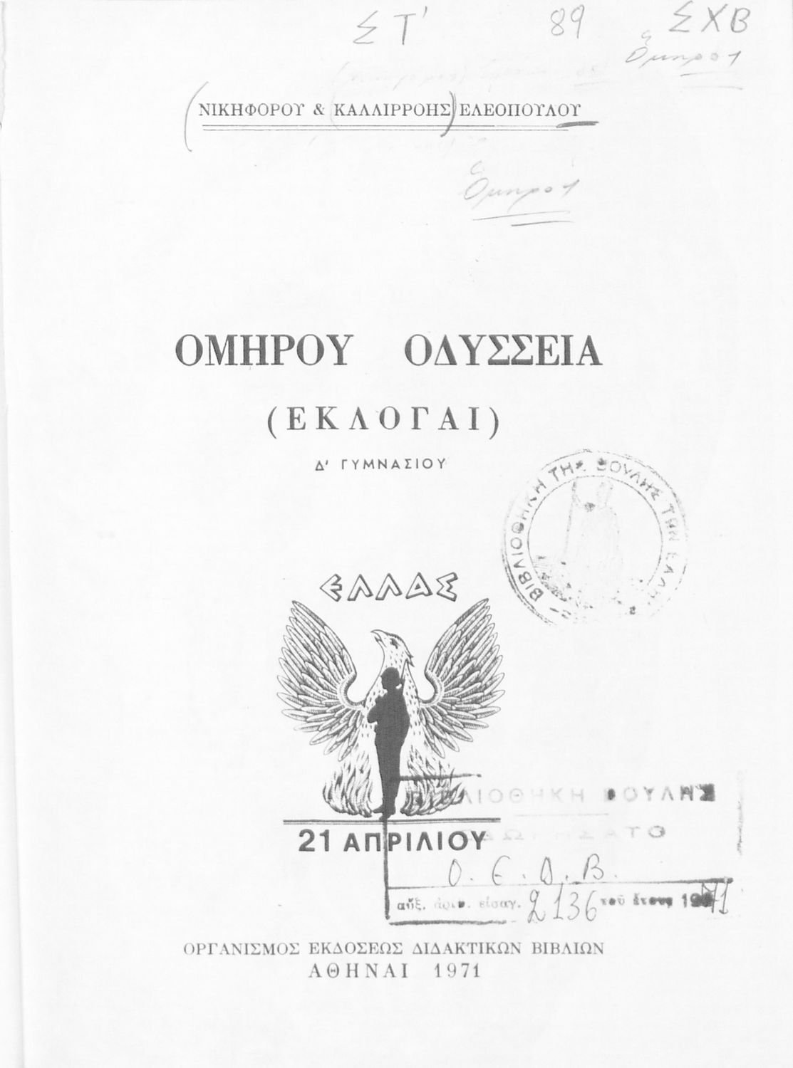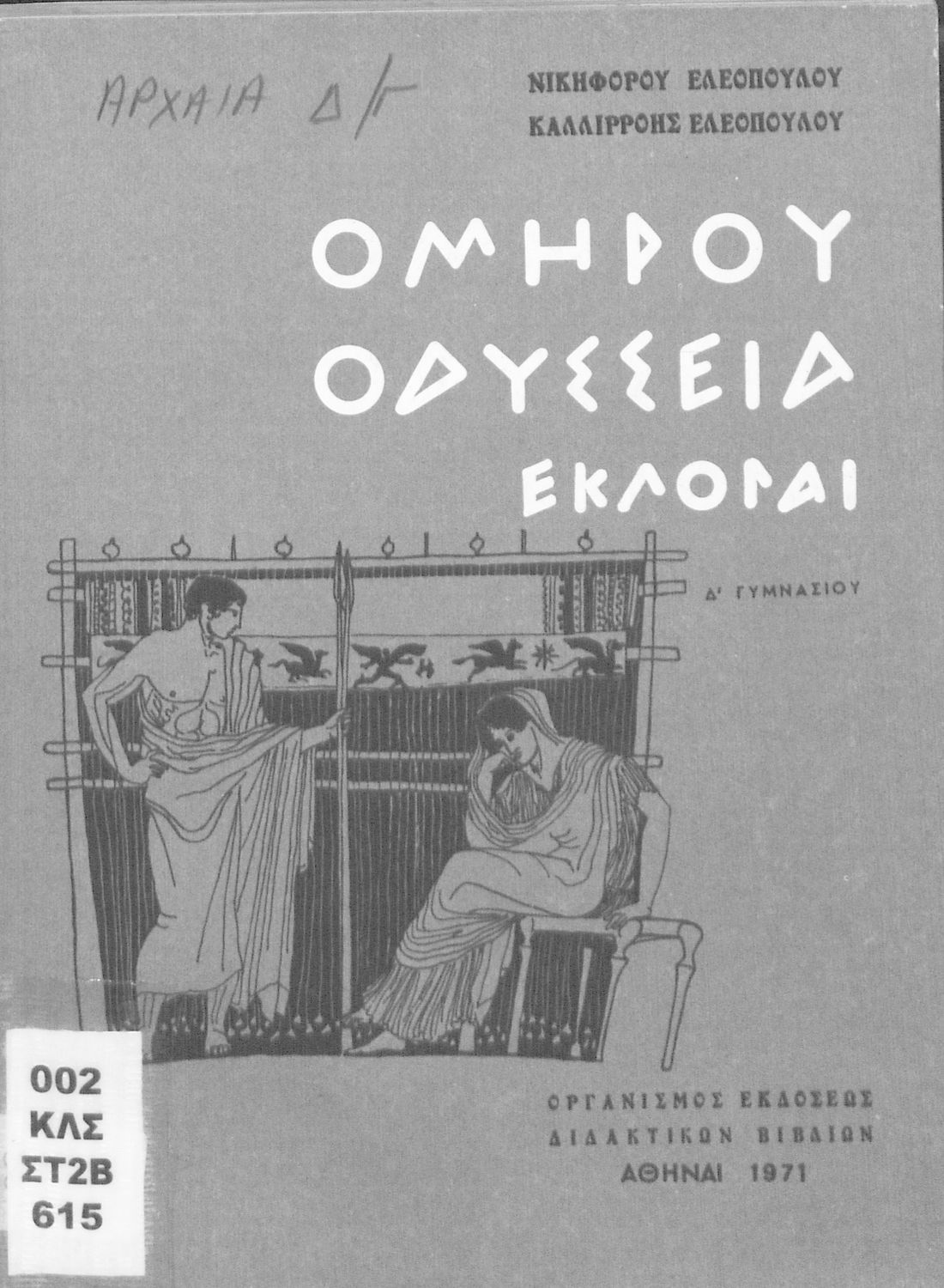 Σχολικό εγχειρίδιο Αρχαίων Ελληνικών της Δ΄ Γυμνασίου. Στο βιβλίο παρουσιάζεται η Οδύσσεια του Ομήρου. Χωρίζεται σε τρία μέρη. Το πρώτο μέρος περιλαμβάνει μια εισαγωγή για το μυκηναϊκό πολιτισμό. Στο δεύτερο μέρος παρουσιάζει το πρωτότυπο κείμενο του Ομήρου το οποίο και συνοδεύουν ερμηνευτικές και γλωσσολογικές στο τρίτο και τελευταίο μέρος.