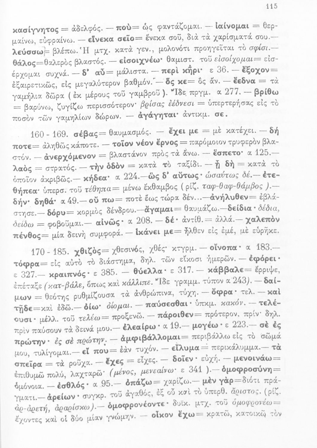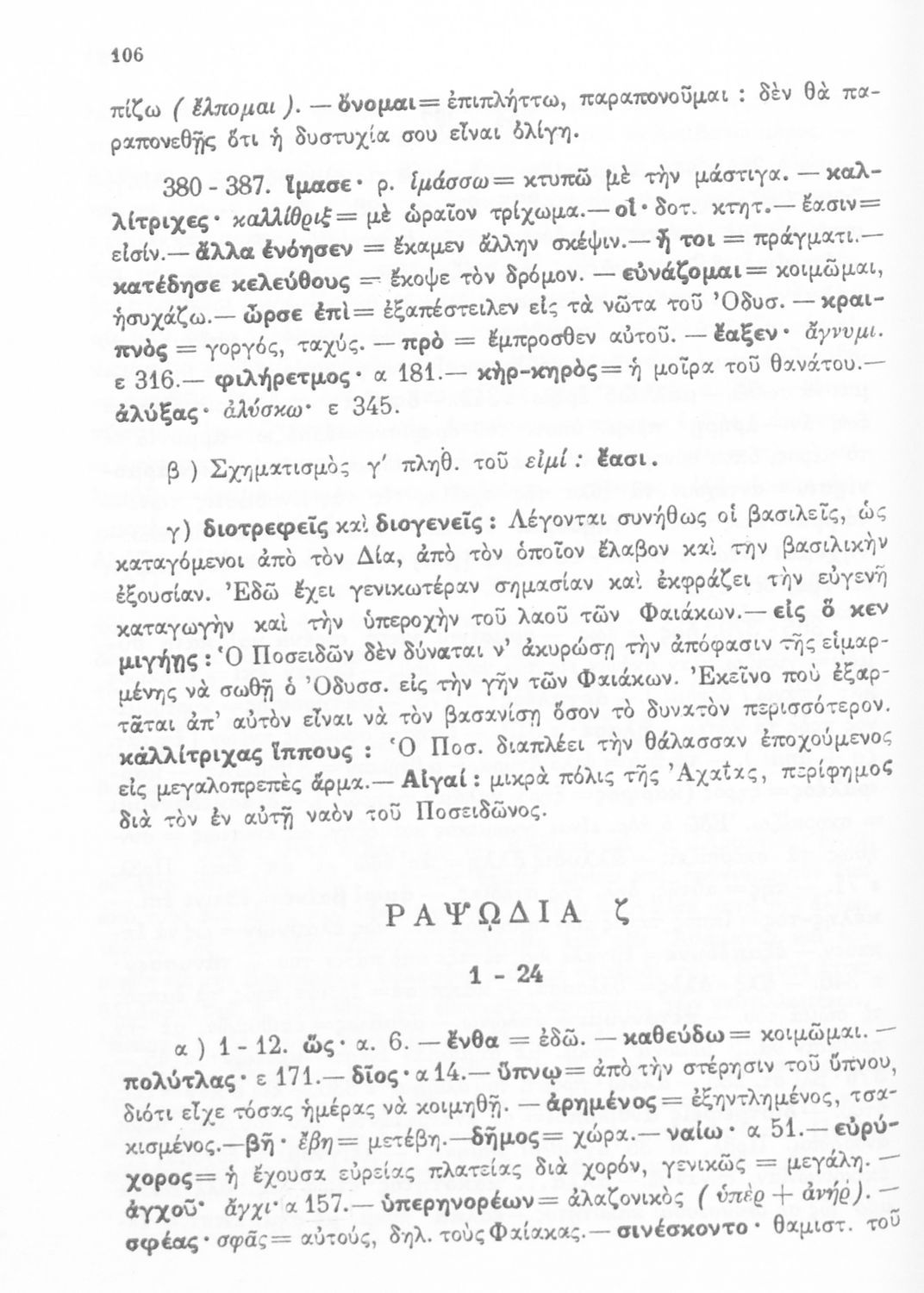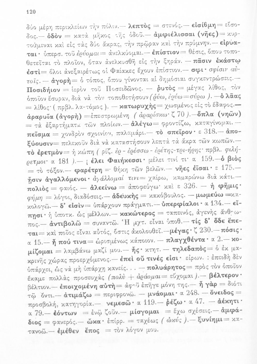 Σχολικό εγχειρίδιο Αρχαίων Ελληνικών Γυμνασίου που περιλαμβάνει μετάφραση της Οδύσσειας και λεξιλόγιο.