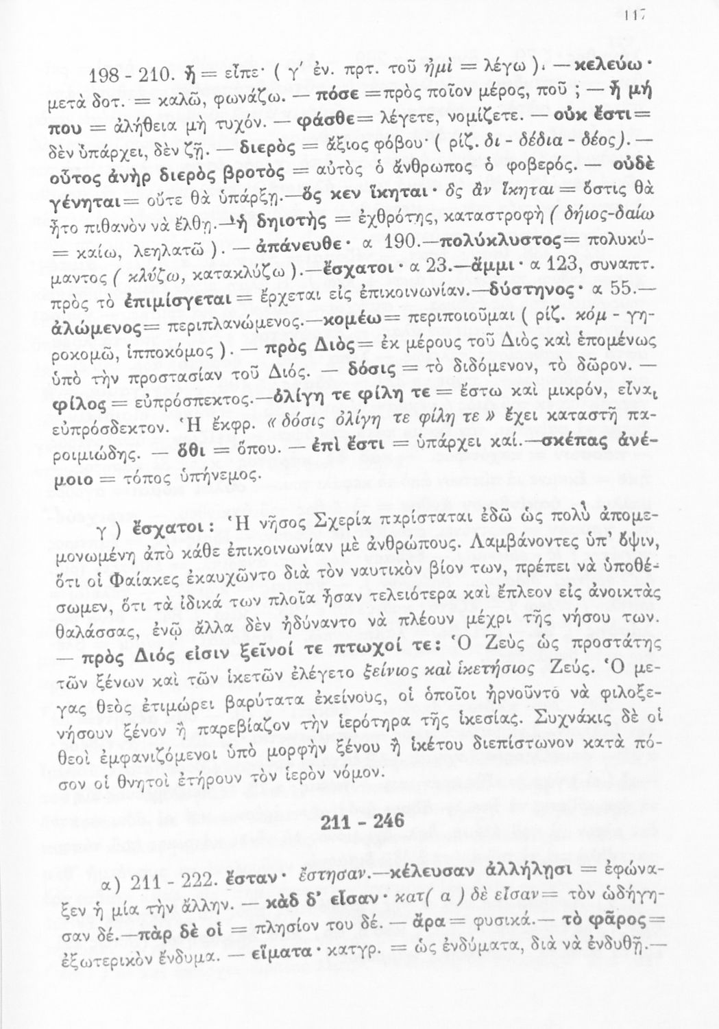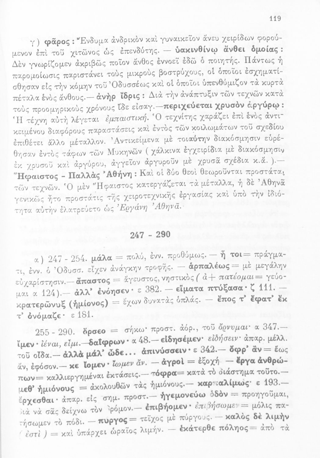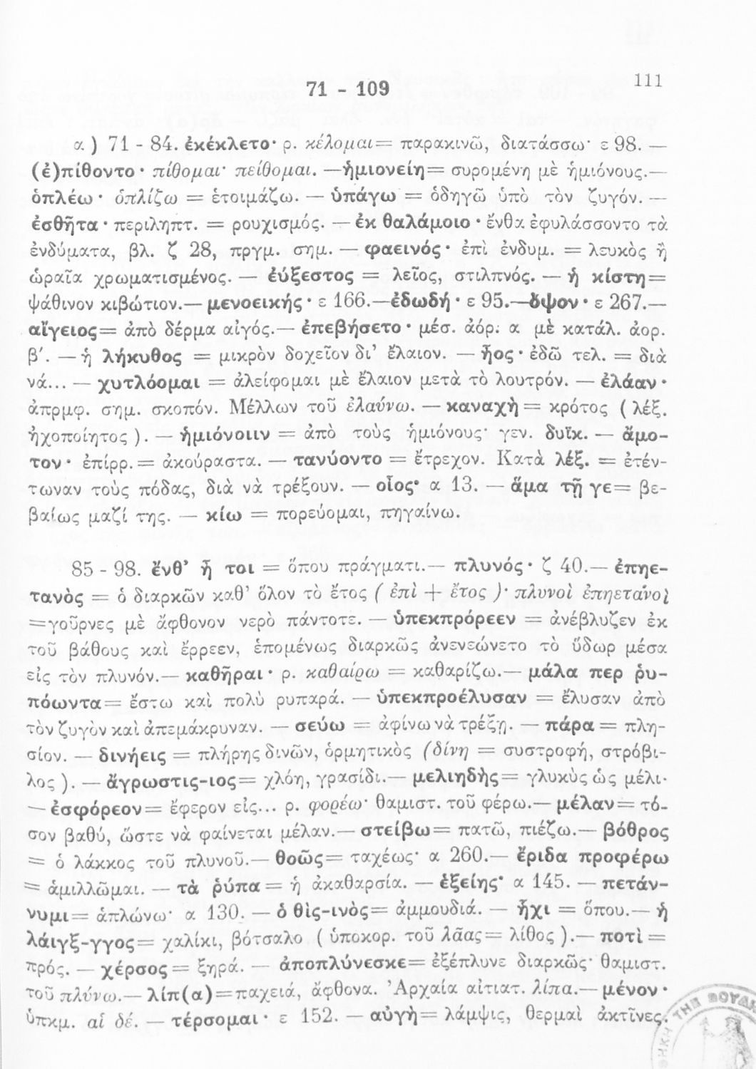 Σχολικό εγχειρίδιο Αρχαίων Ελληνικών Γυμνασίου που περιλαμβάνει μετάφραση της Οδύσσειας και λεξιλόγιο.