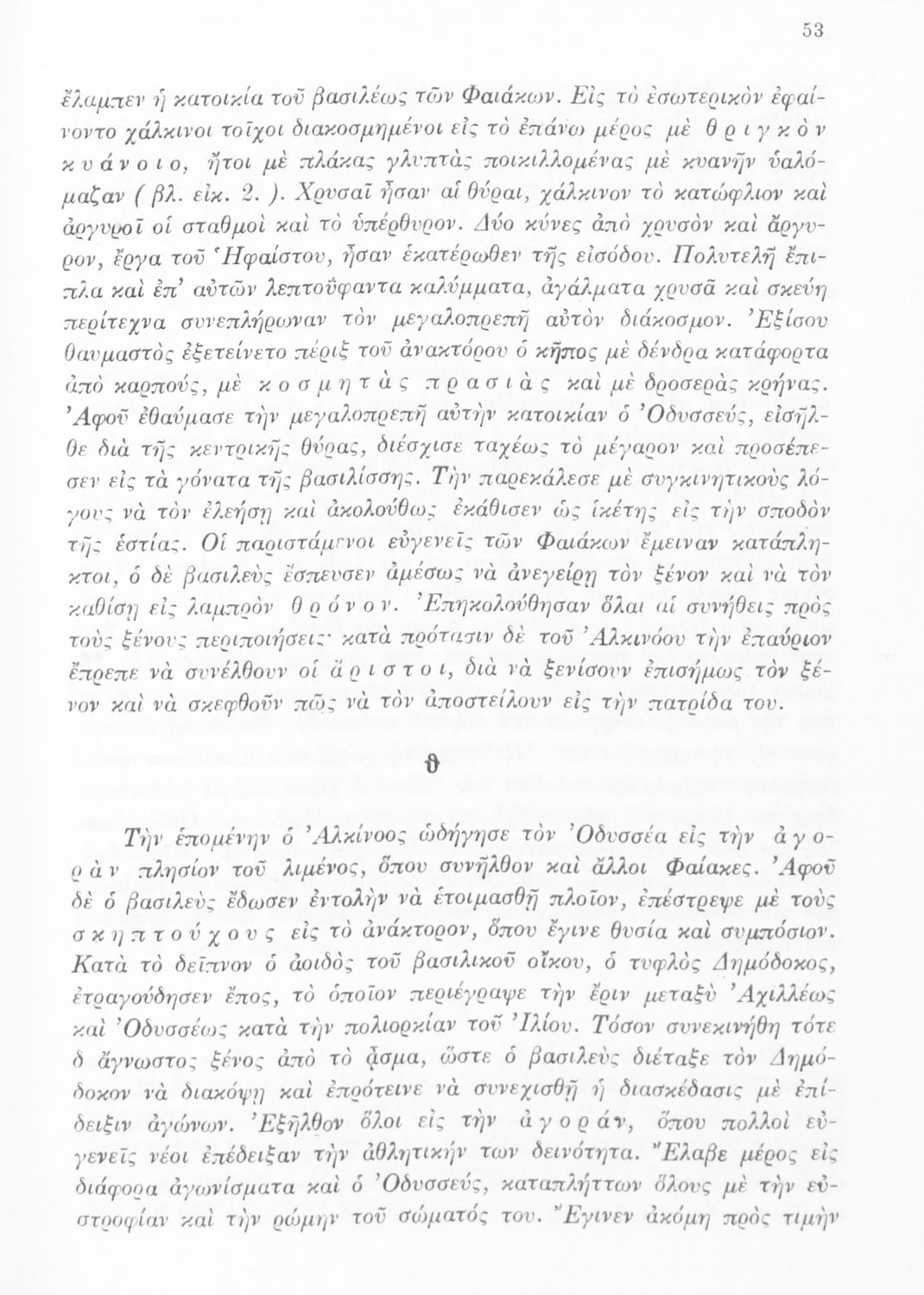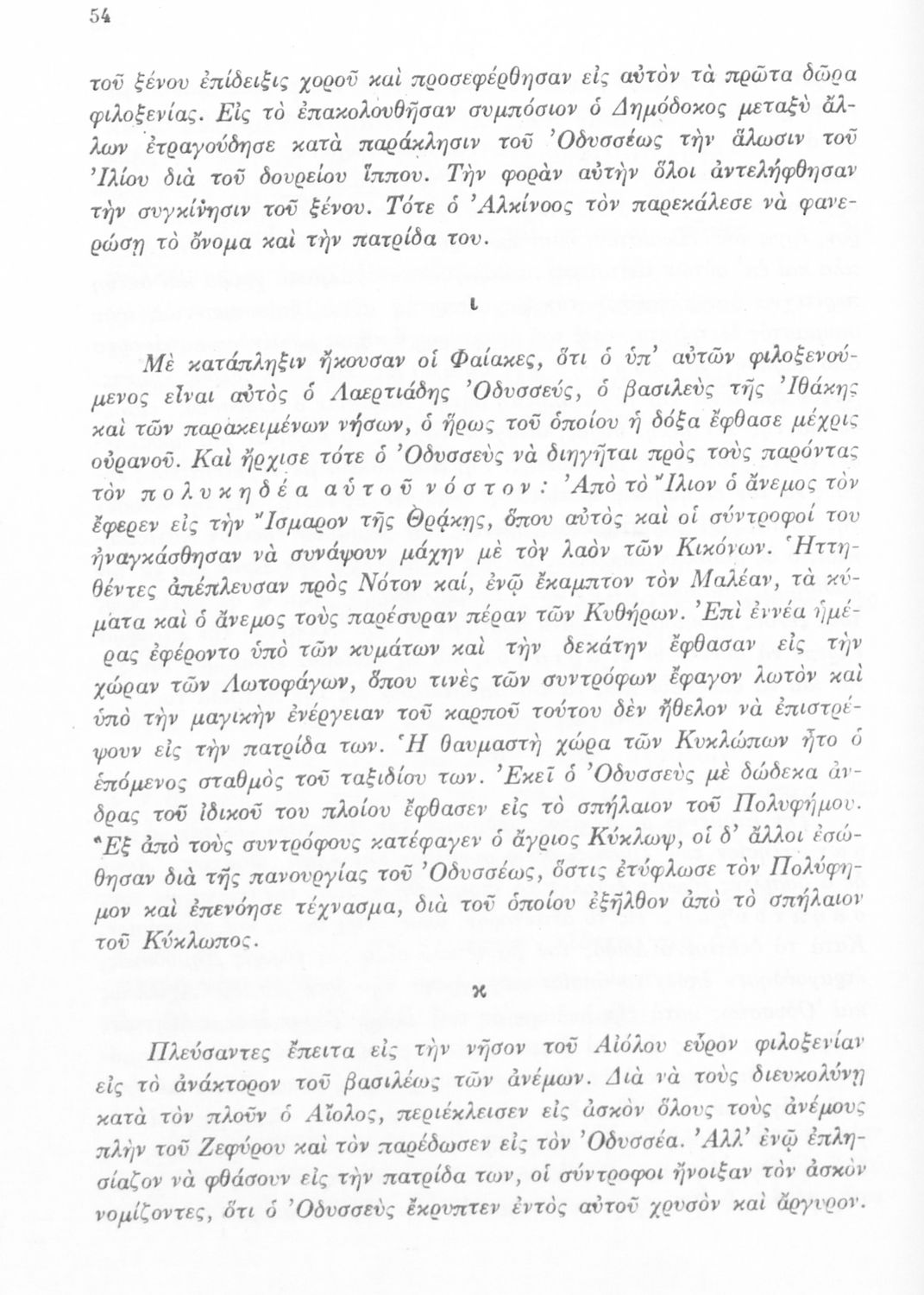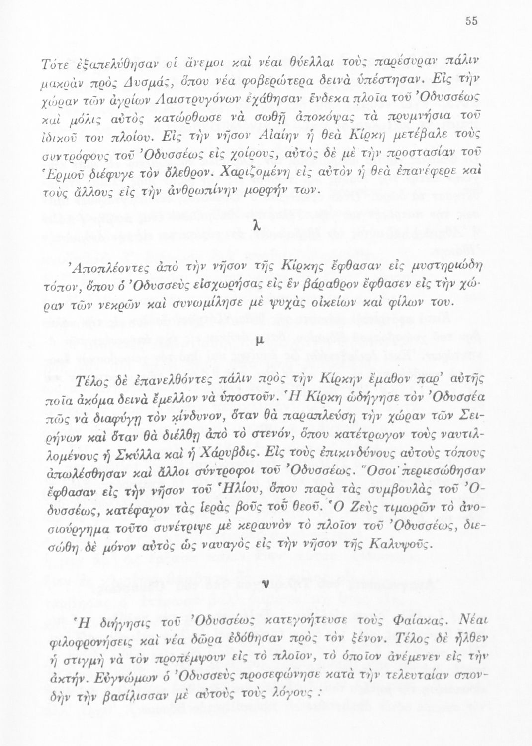 Σχολικό εγχειρίδιο Αρχαίων Ελληνικών Γυμνασίου που περιλαμβάνει αποσπάσματα από τις ραψωδίες της Οδύσσειας, ερμηνευτικά και πραγματολογικά σχόλια, και λεξιλογικές παρατηρήσεις.