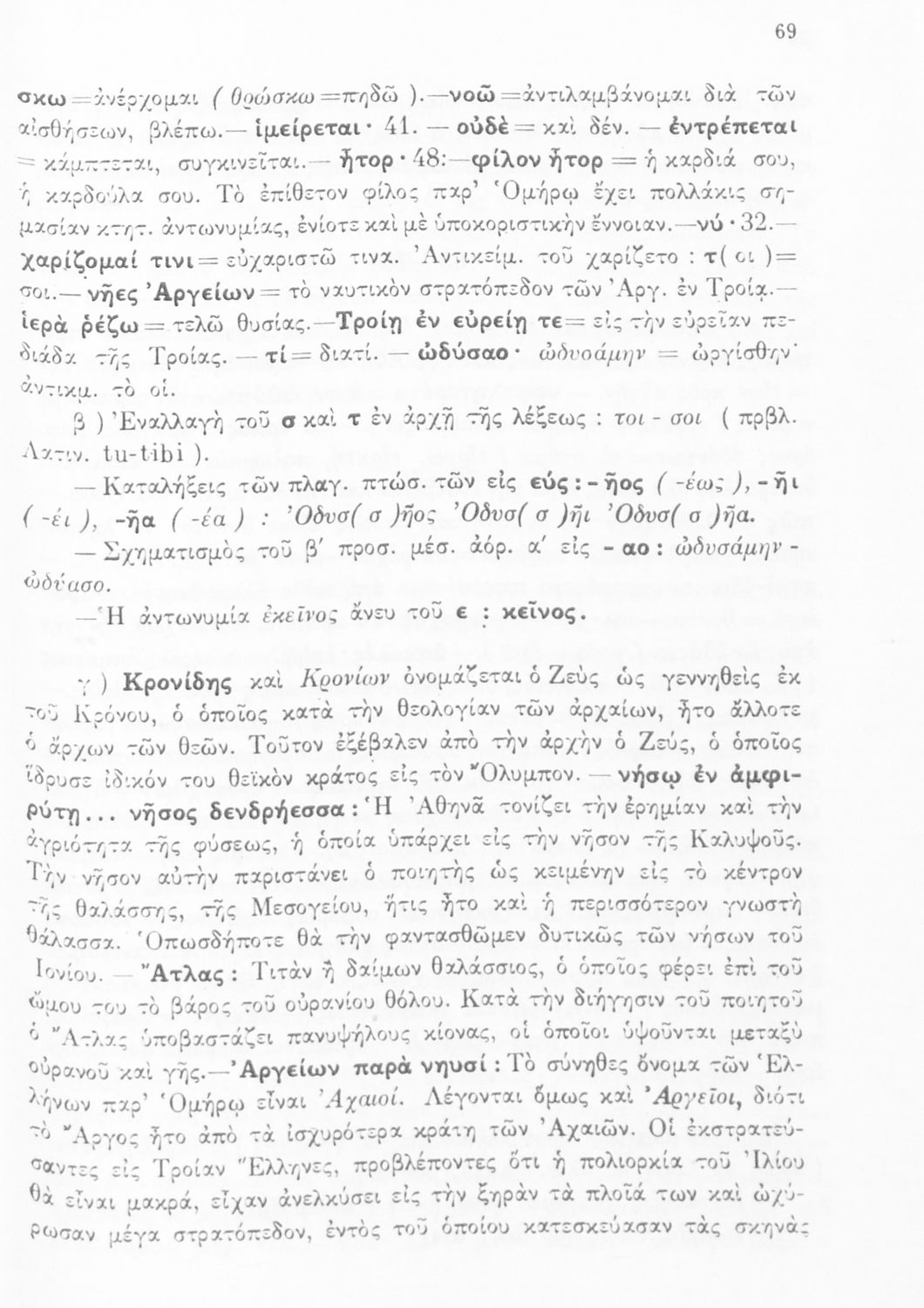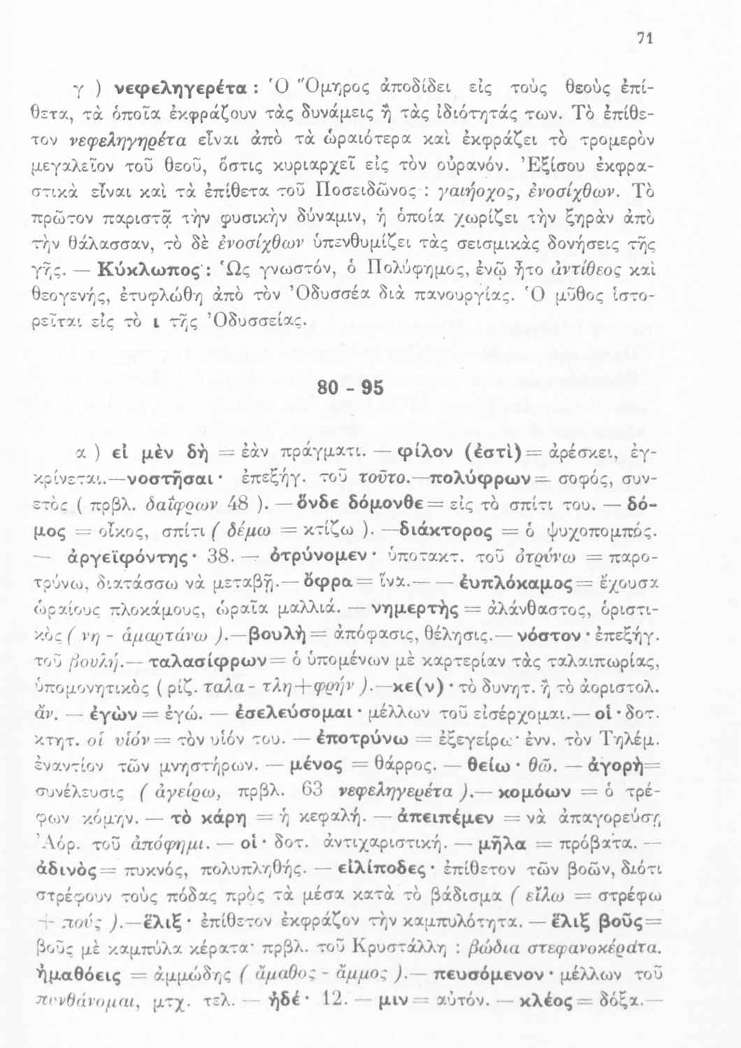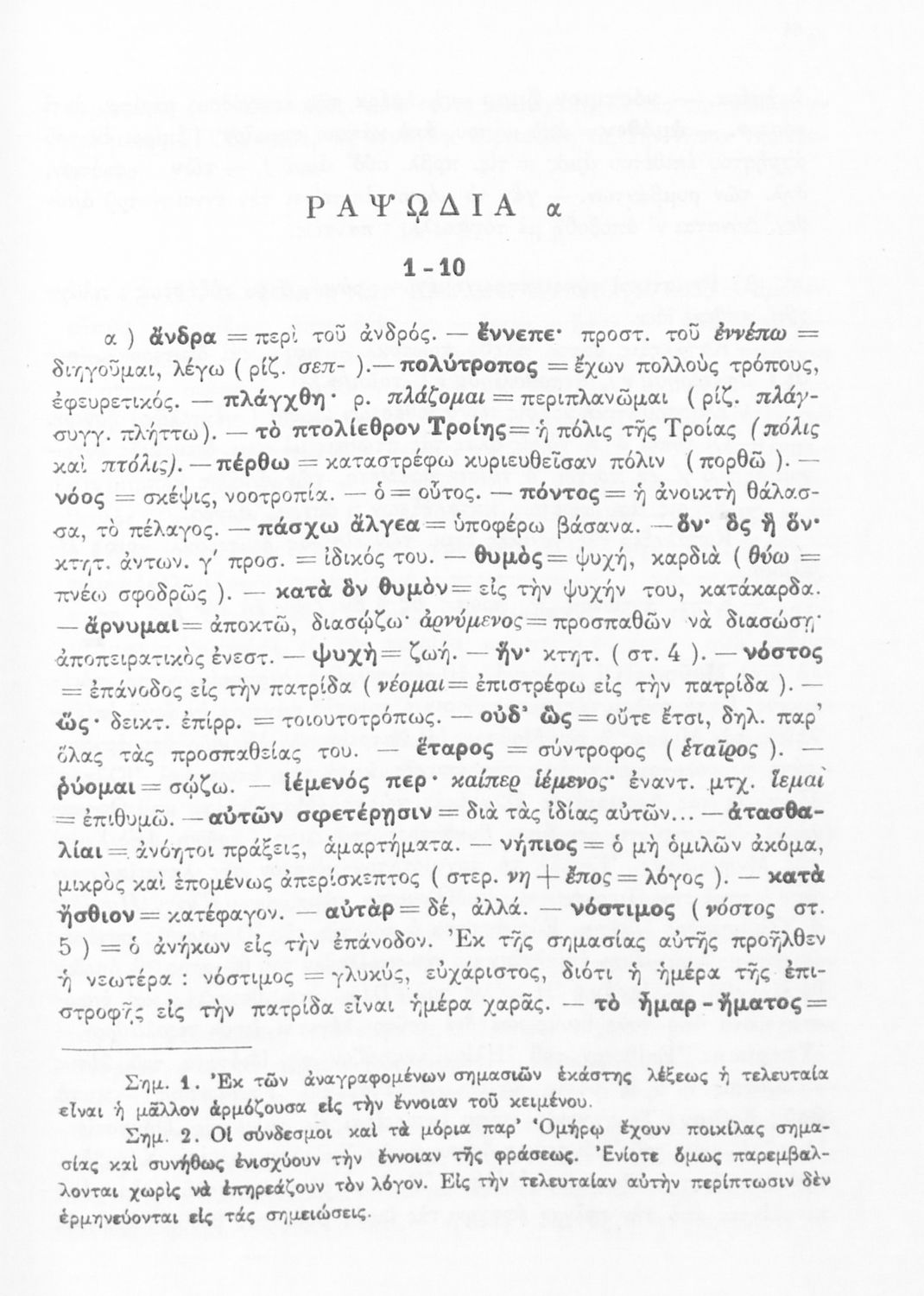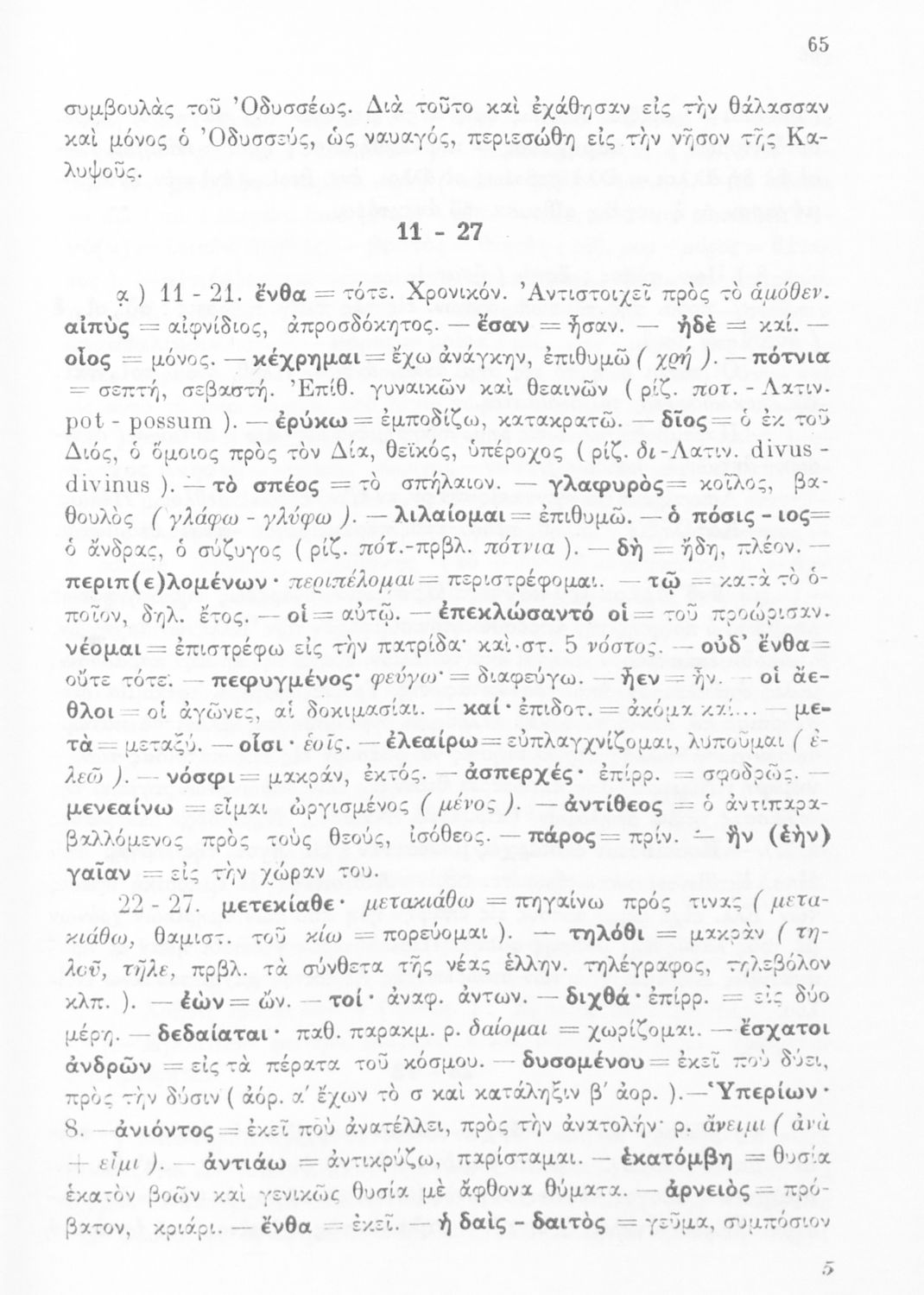 Σχολικό εγχειρίδιο Αρχαίων Ελληνικών Γυμνασίου που περιλαμβάνει μετάφραση της Οδύσσειας και λεξιλόγιο.