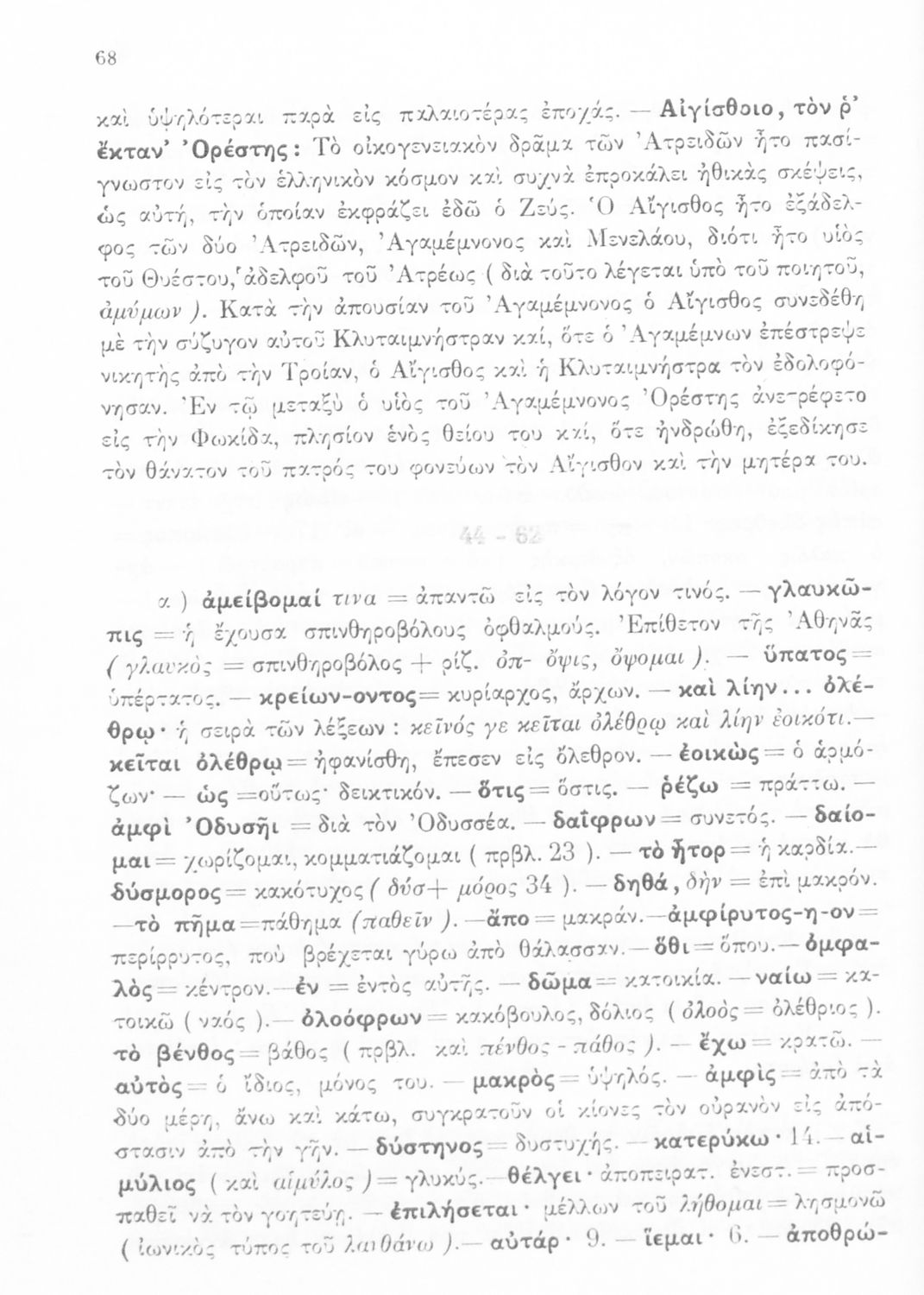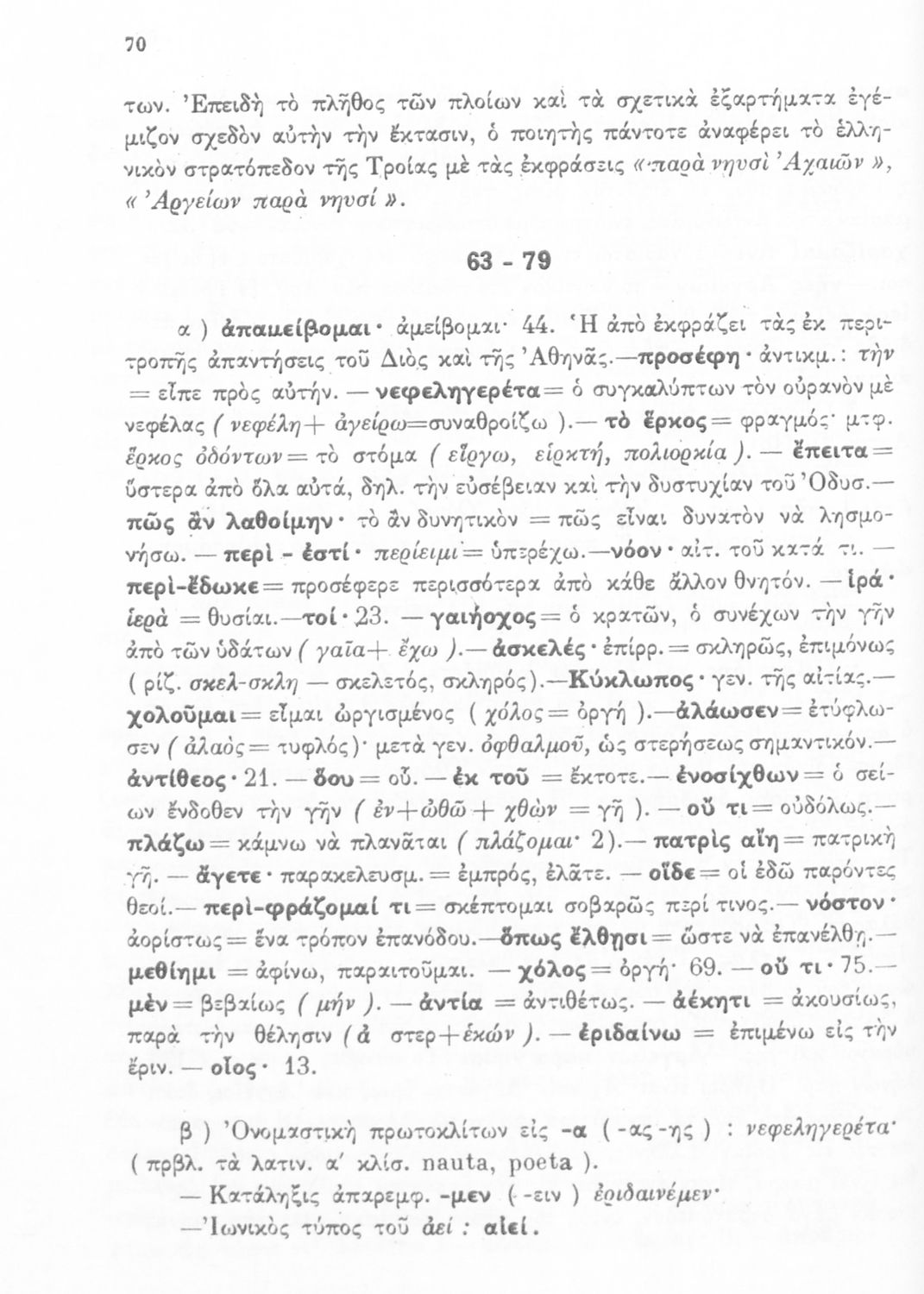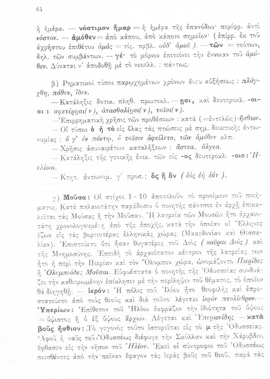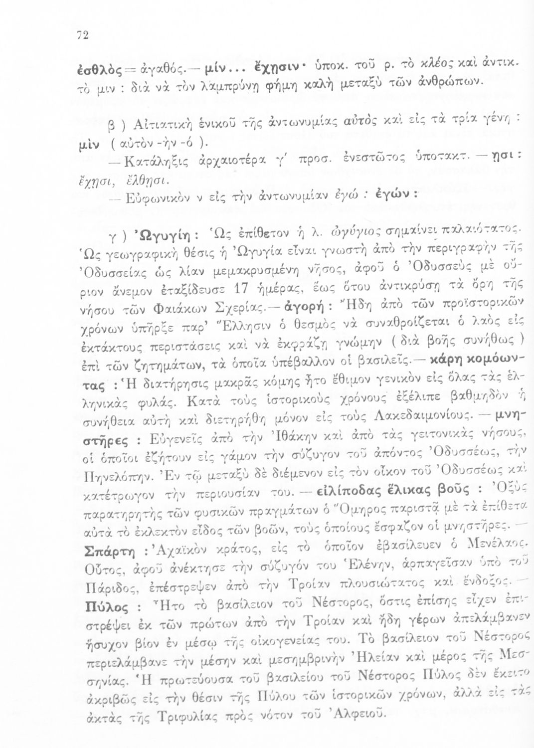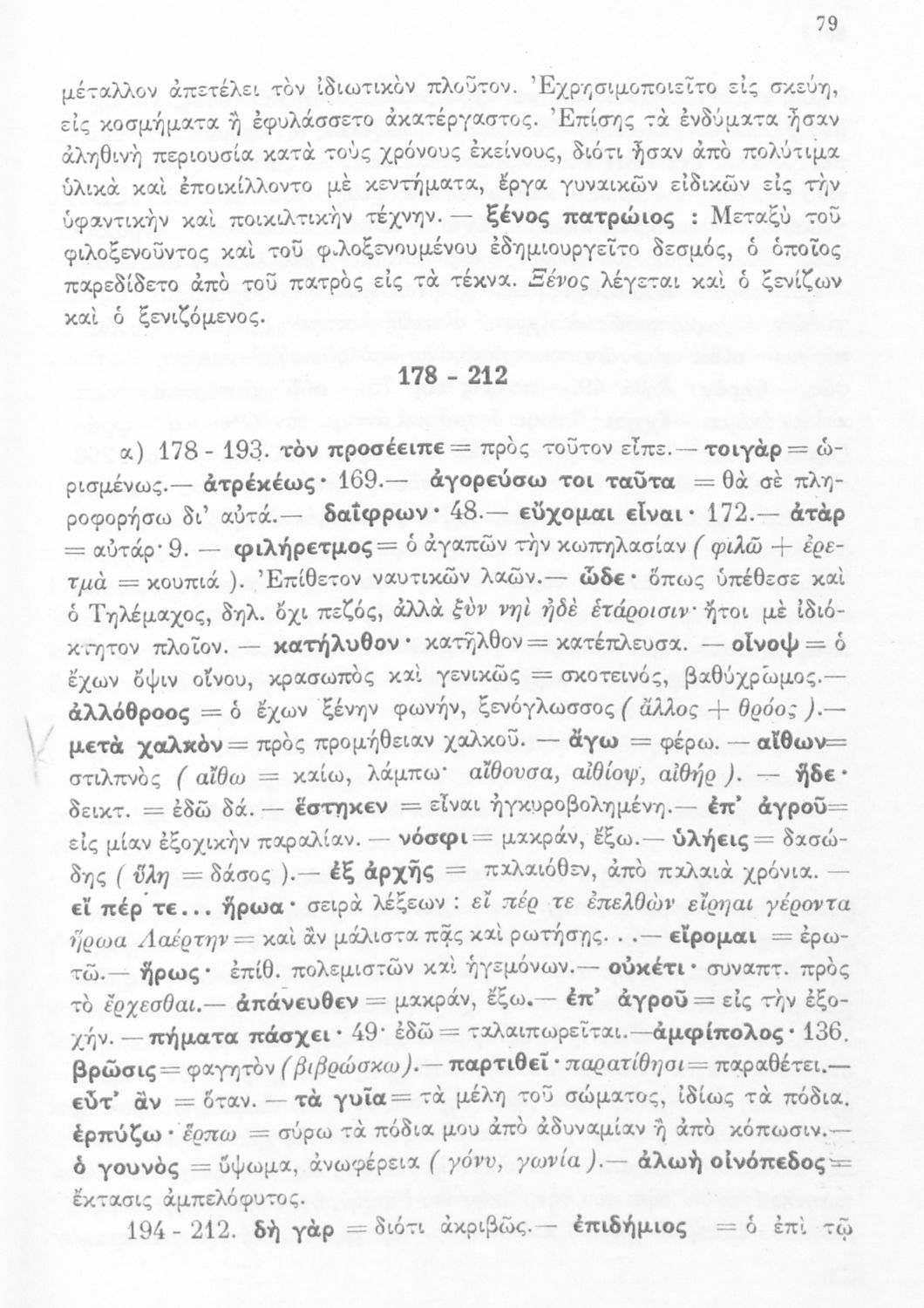 Σχολικό εγχειρίδιο Αρχαίων Ελληνικών Γυμνασίου που περιλαμβάνει μετάφραση της Οδύσσειας και λεξιλόγιο.