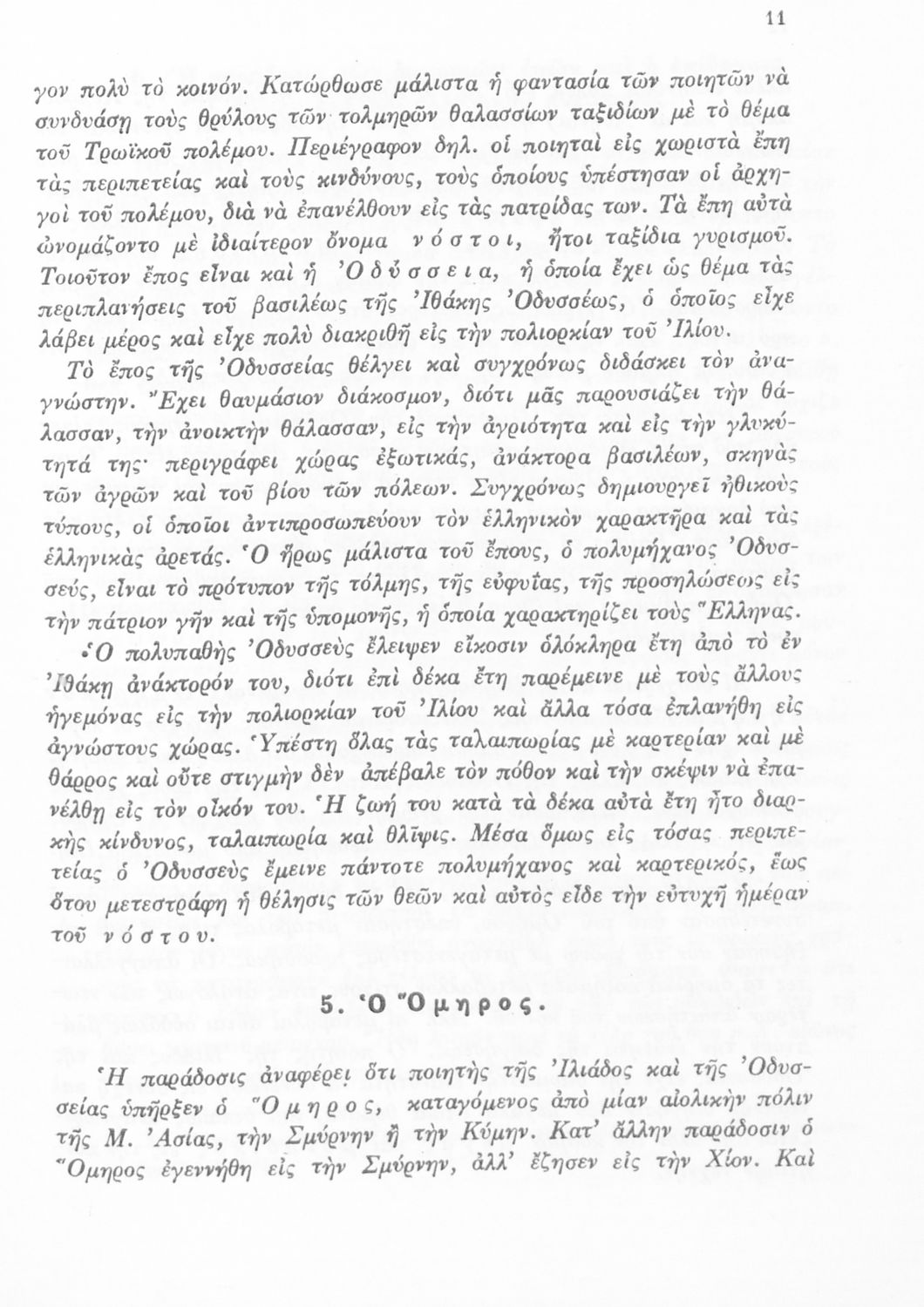 Σχολικό εγχειρίδιο Αρχαίων Ελληνικών Ε΄ Γυμνασίου που περιέχει αποσπάσματα από τις ραψωδίες της Οδύσσειας, εισαγωγή στη ζωή και το έργο του Όμηρου, περιλήψεις των ραψωδιών, ερμηνευτικά, πραγματολογικά σχόλια ...