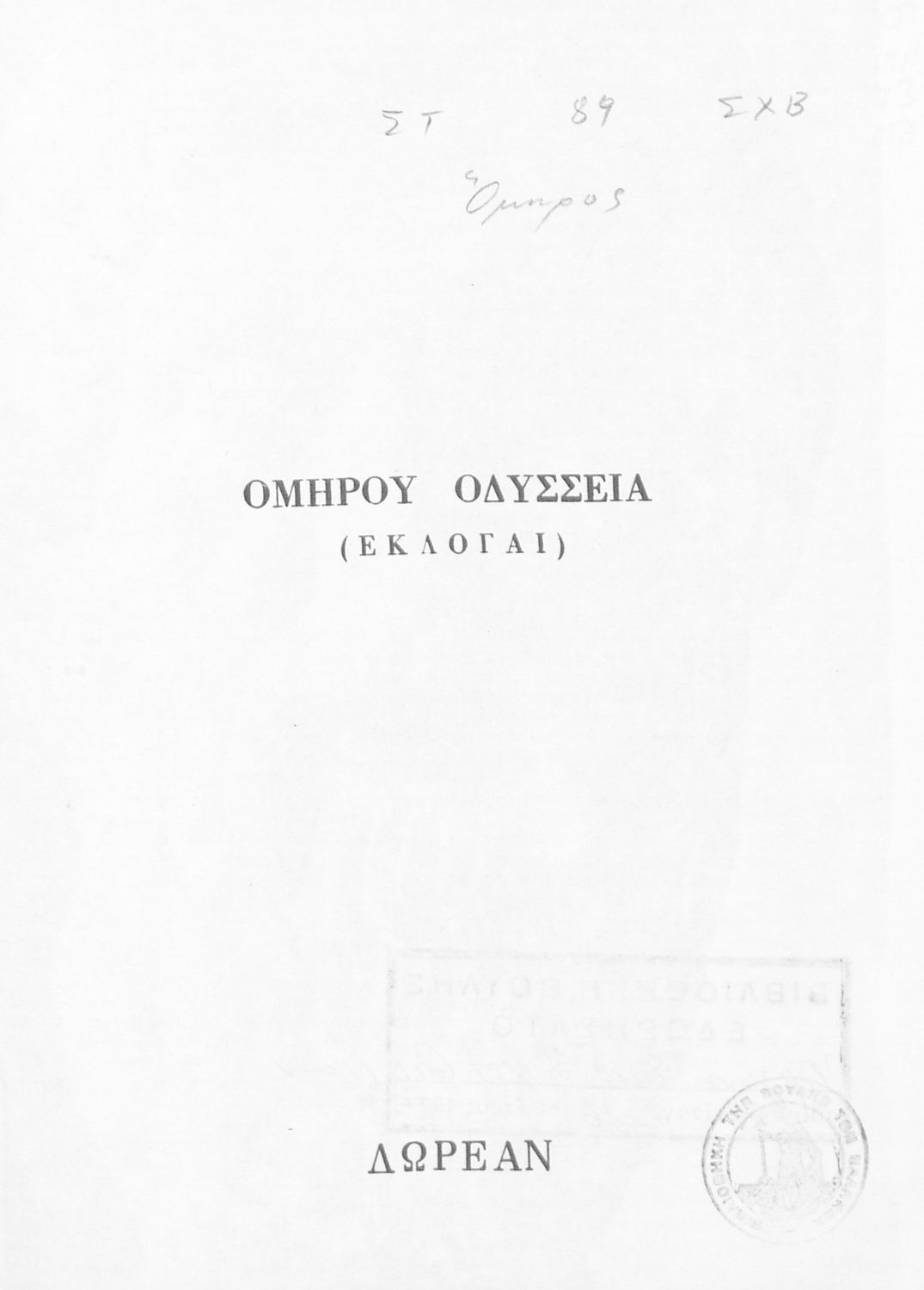 Τίτλος: Ομήρου Οδύσσεια (Εκλογαί) Δ' Γυμνασίου