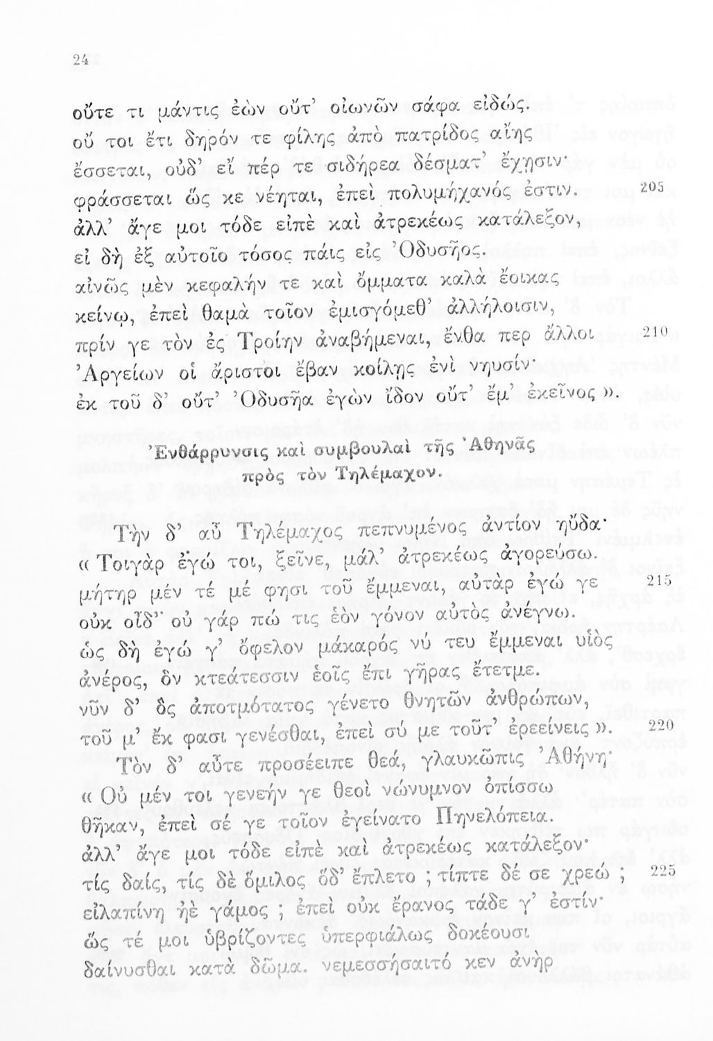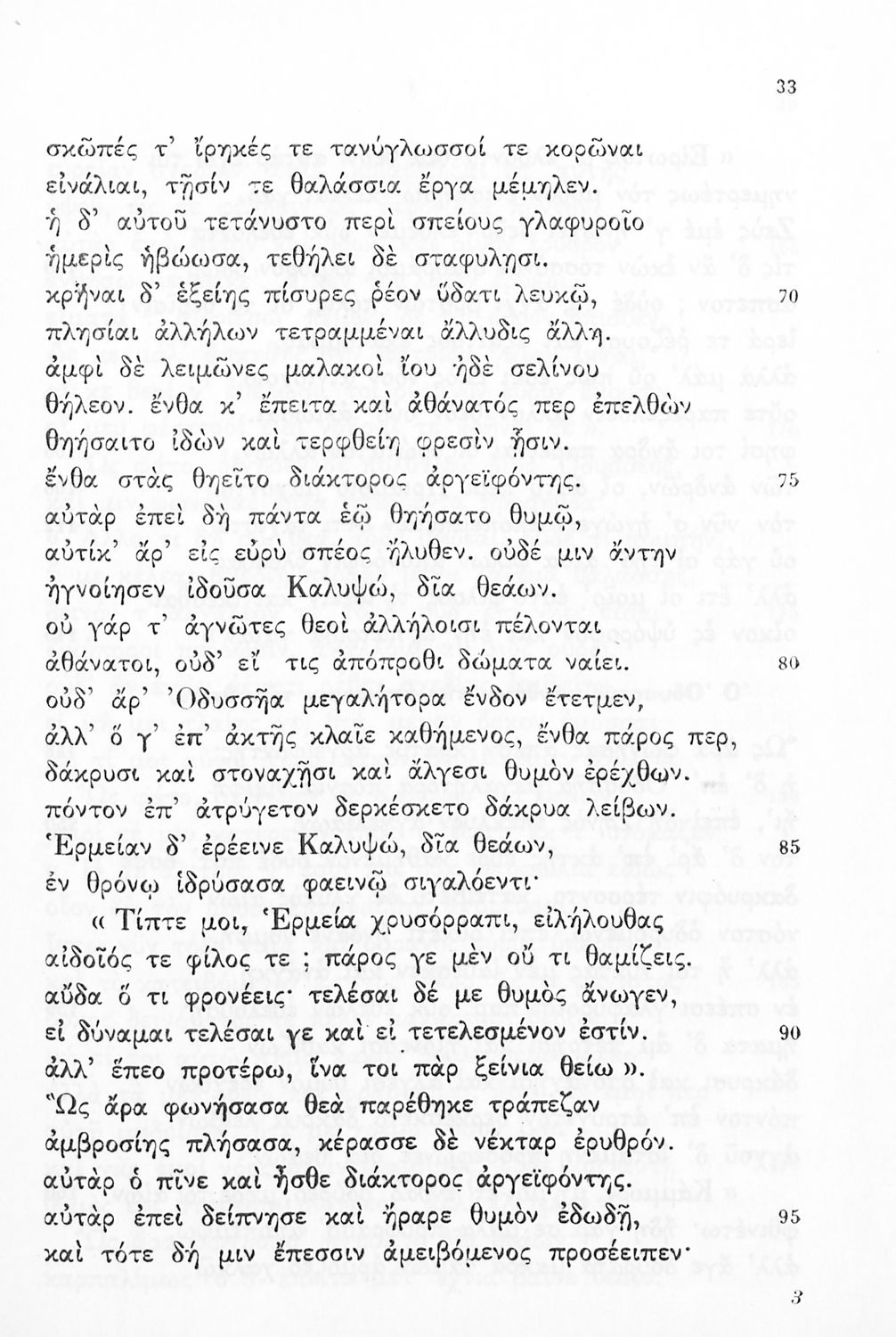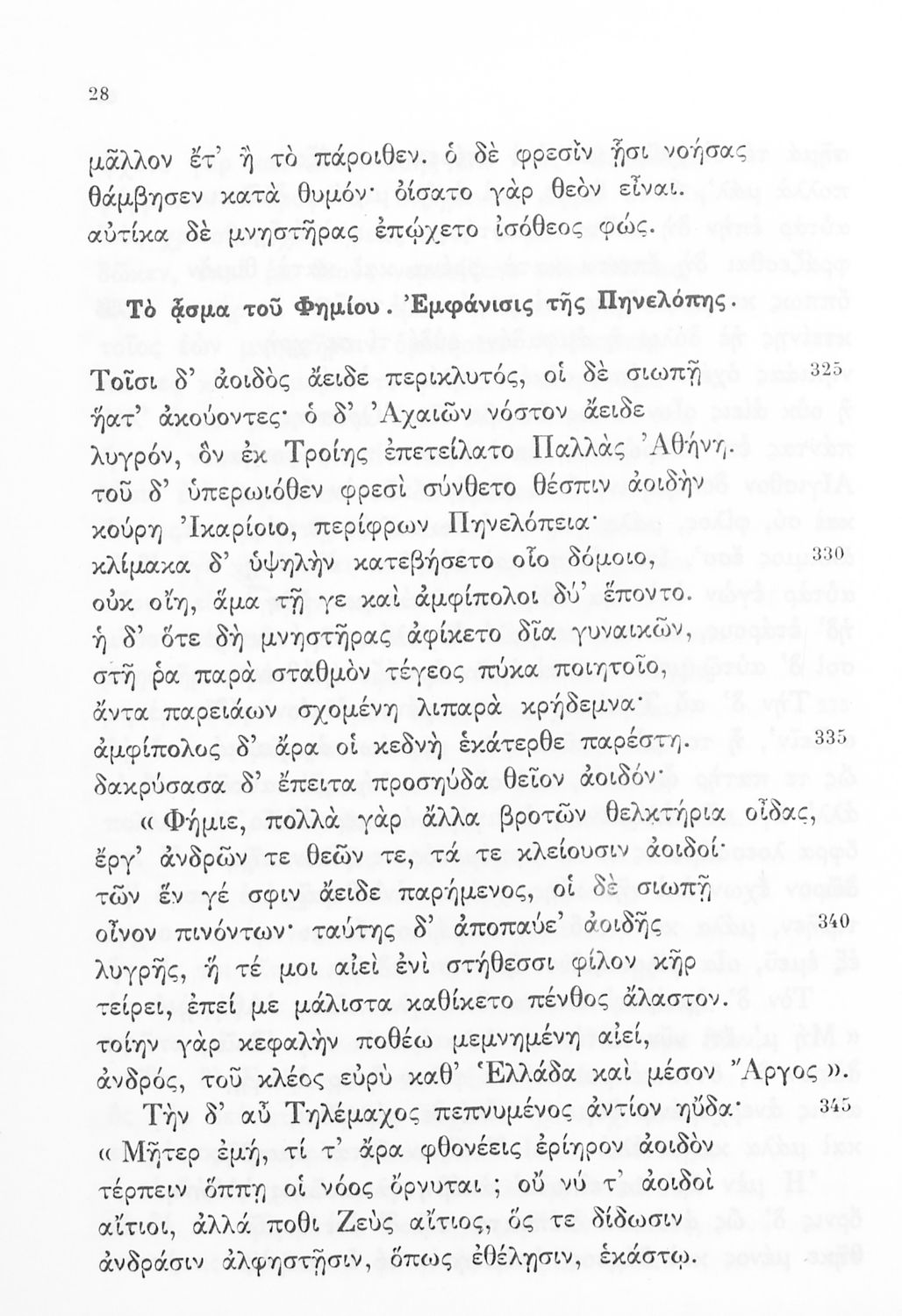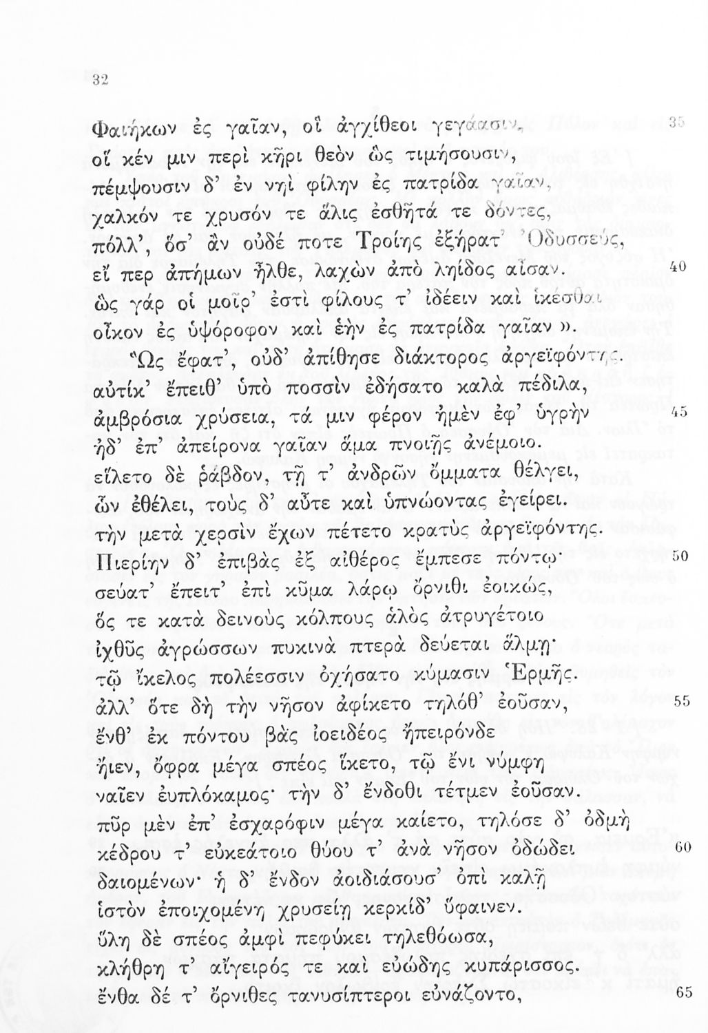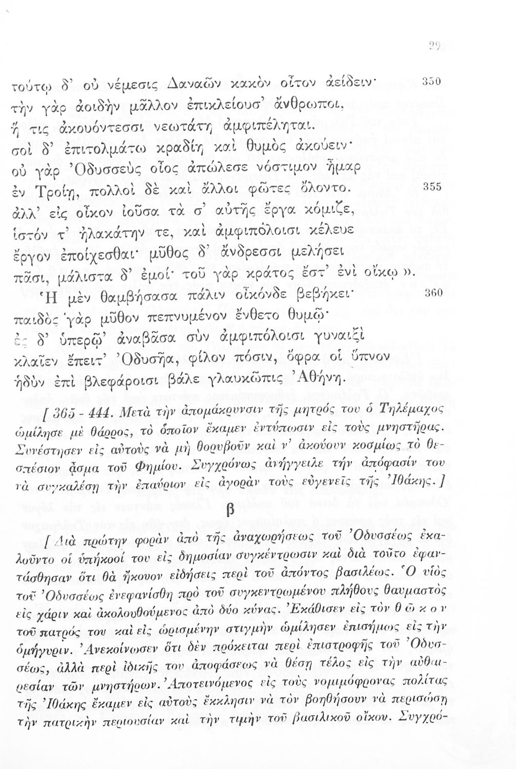 Σχολικό εγχειρίδιο Αρχαίων Ελληνικών Γυμνασίου που περιλαμβάνει αποσπάσματα από τις ραψωδίες της Οδύσσειας, ερμηνευτικά και πραγματολογικά σχόλια, και λεξιλογικές παρατηρήσεις.