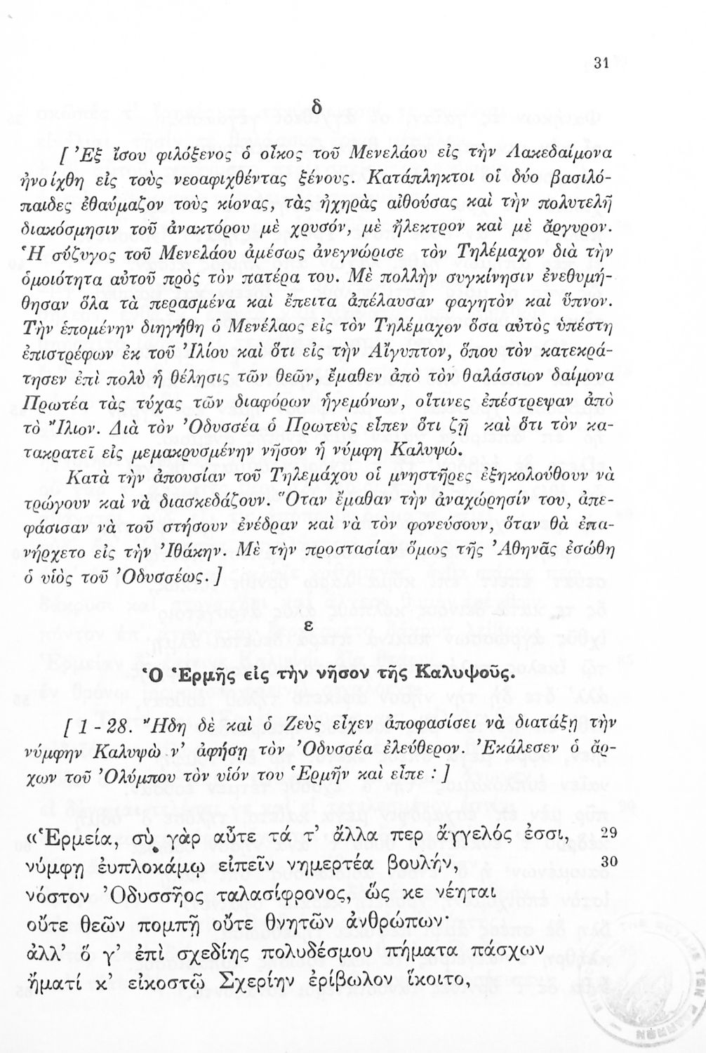 Ομήρου Οδύσσεια (Εκλογαί) Δ΄ Γυμνασίου