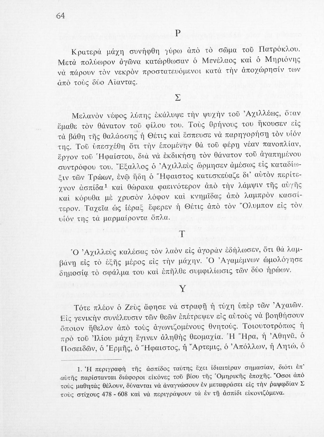 Σχολικό εγχειρίδιο Αρχαίων Ελληνικών της Ε΄ Γυμνασίου το οποίο περιλαμβάνει επιλεγμένα μέρη από την Ιλιάδα. Τα αποσπάσματα συνοδεύονται από γλωσσικές και ερμηνευτικές σημειώσεις.