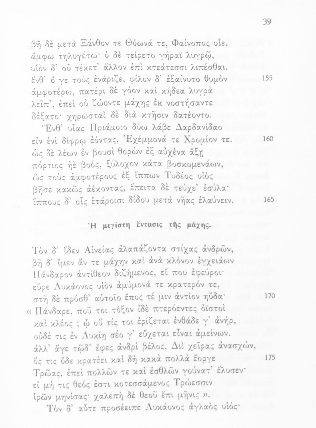 Σχολικό εγχειρίδιο Αρχαίων Ελληνικών της Ε΄ Γυμνασίου το οποίο περιλαμβάνει επιλεγμένα μέρη από την Ιλιάδα. Τα αποσπάσματα συνοδεύονται από γλωσσικές και ερμηνευτικές σημειώσεις.