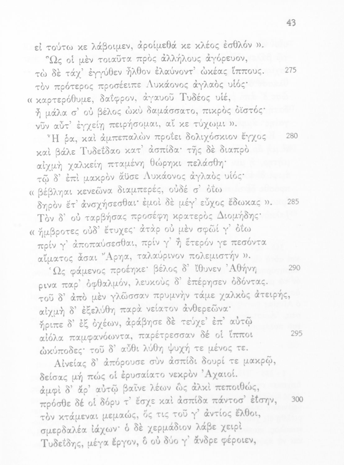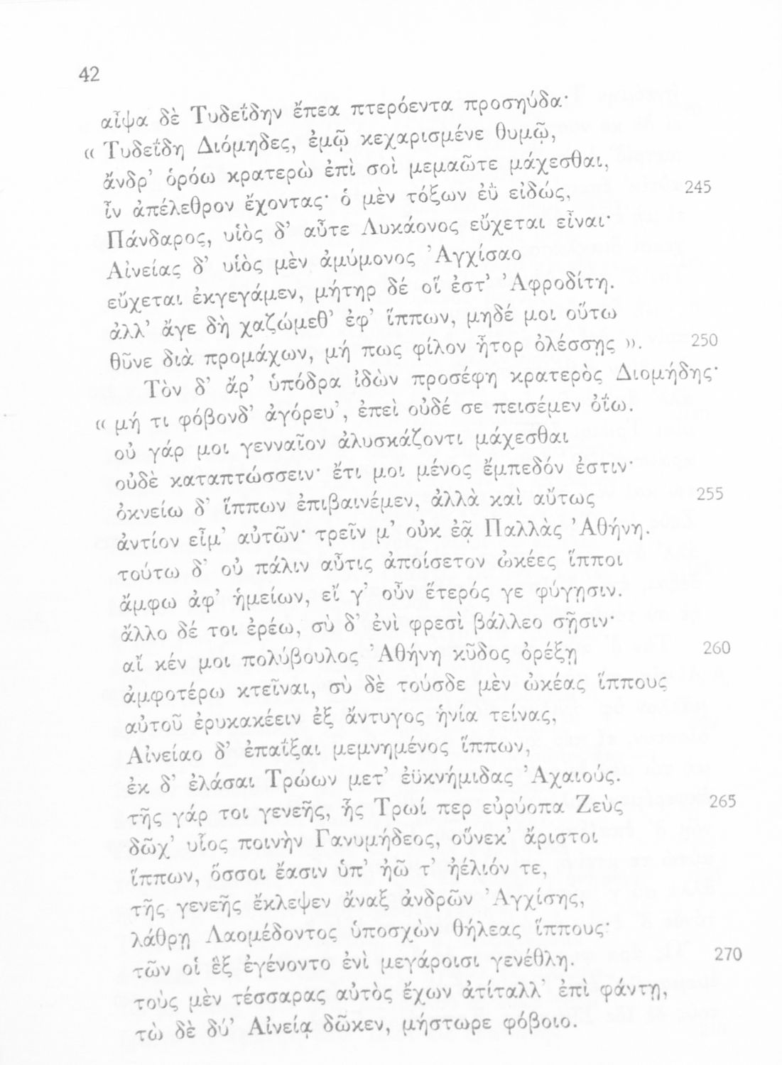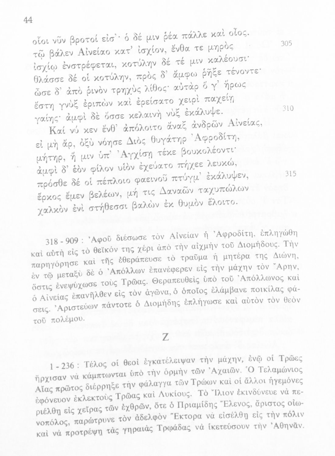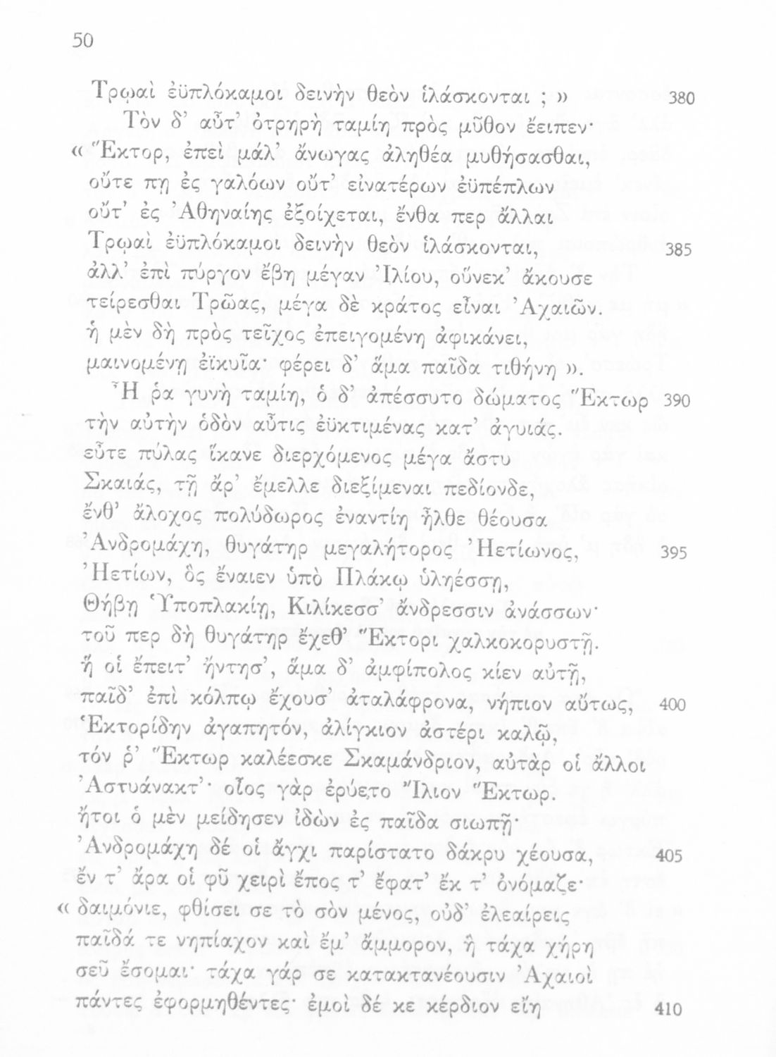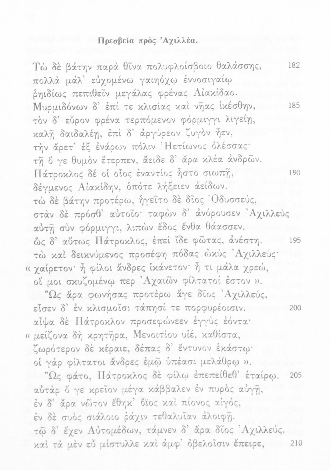 Σχολικό εγχειρίδιο Αρχαίων Ελληνικών της Ε΄ Γυμνασίου το οποίο περιλαμβάνει επιλεγμένα μέρη από την Ιλιάδα. Τα αποσπάσματα συνοδεύονται από γλωσσικές και ερμηνευτικές σημειώσεις.