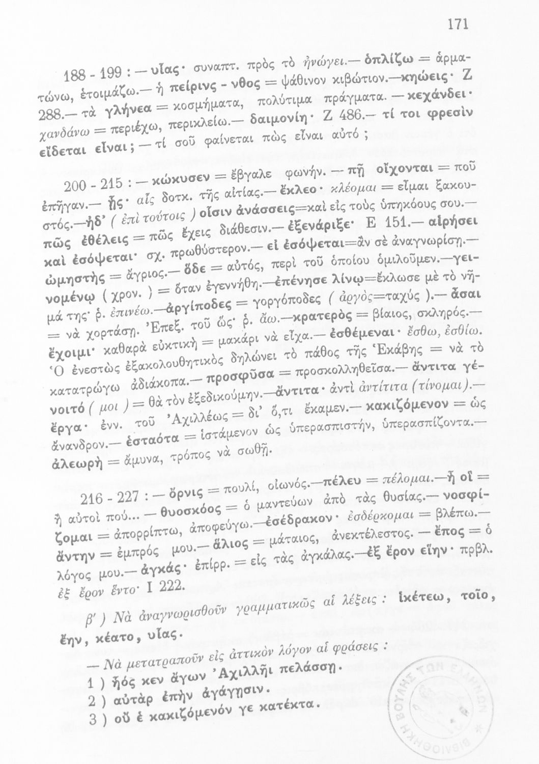 Ομήρου Ιλιάς εκλογαί Ε' Γυμνασίου