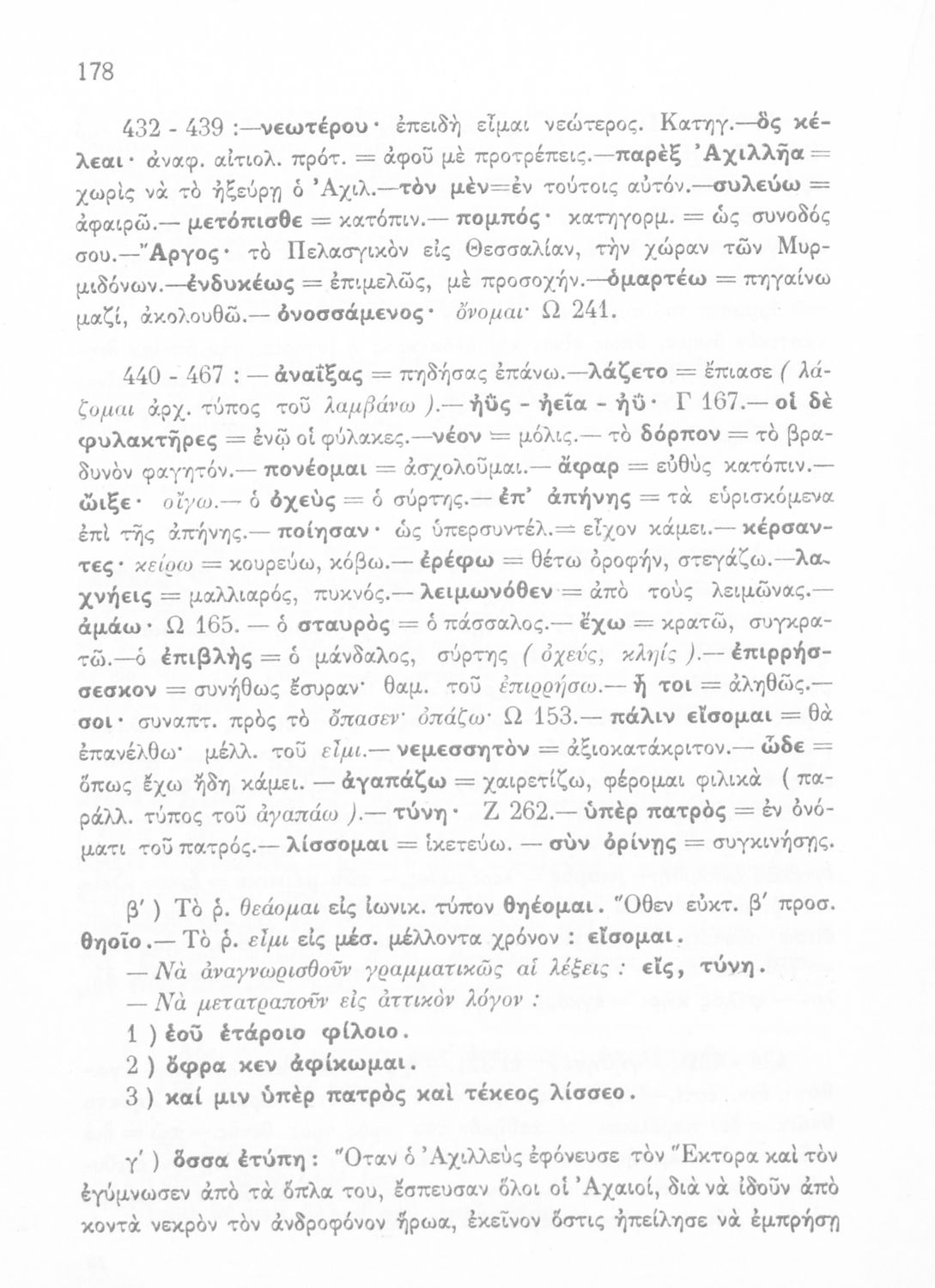 Σχολικό εγχειρίδιο Αρχαίων Ελληνικών της Ε΄ Γυμνασίου το οποίο περιλαμβάνει επιλεγμένα μέρη από την Ιλιάδα. Τα αποσπάσματα συνοδεύονται από γλωσσικές και ερμηνευτικές σημειώσεις.