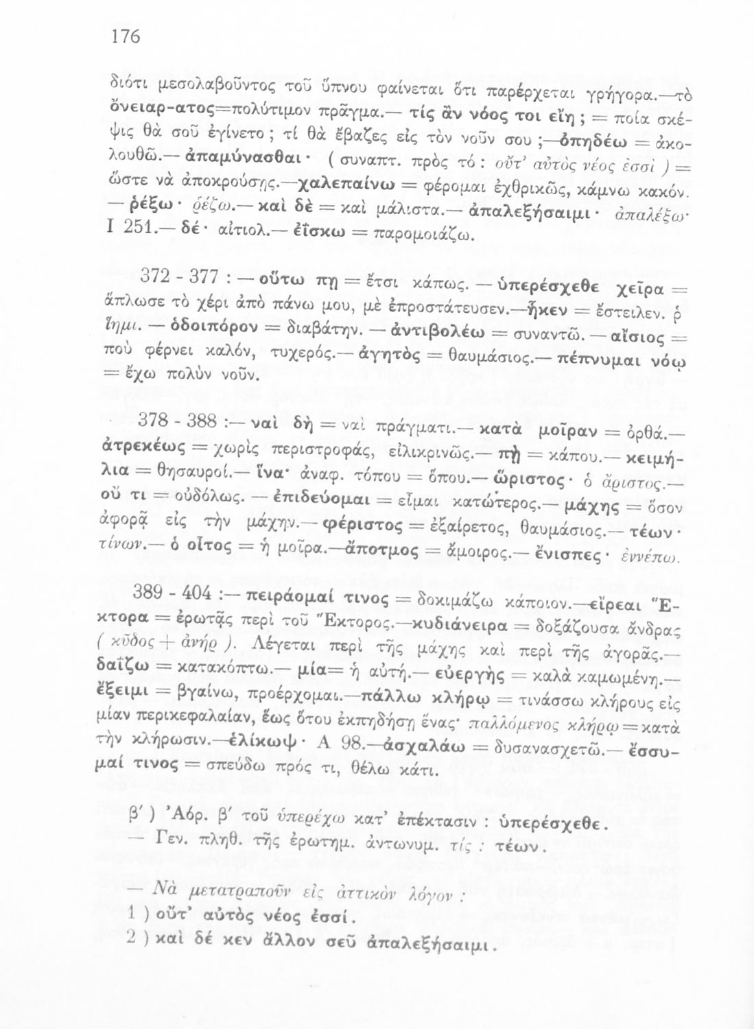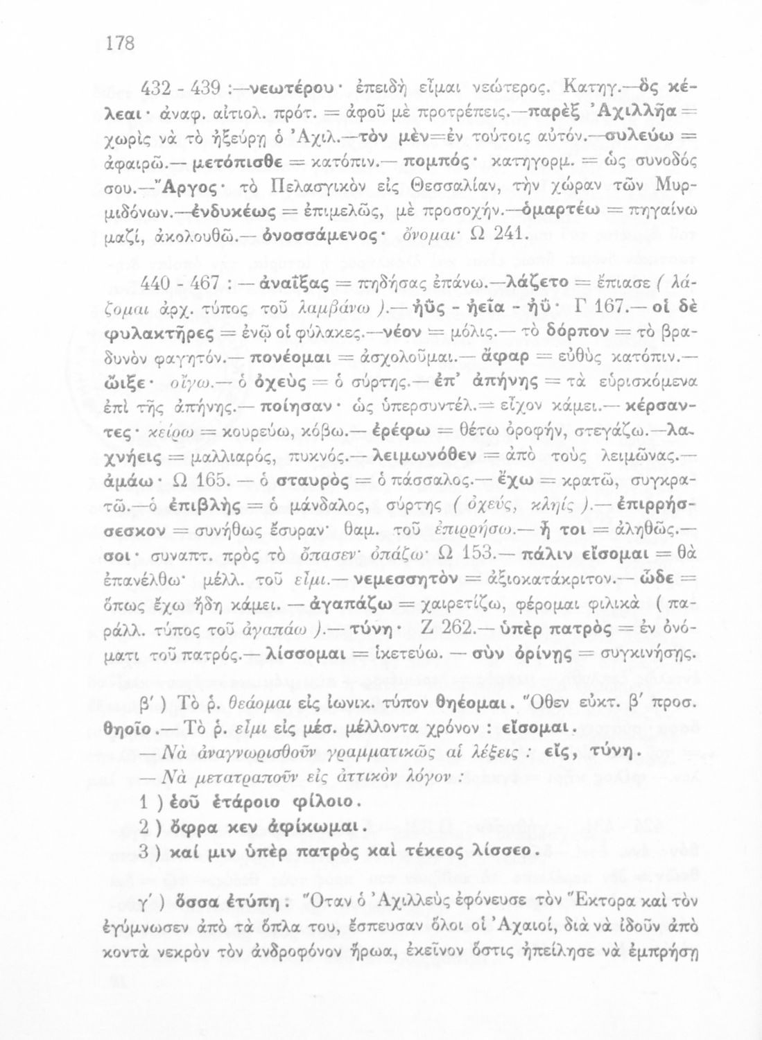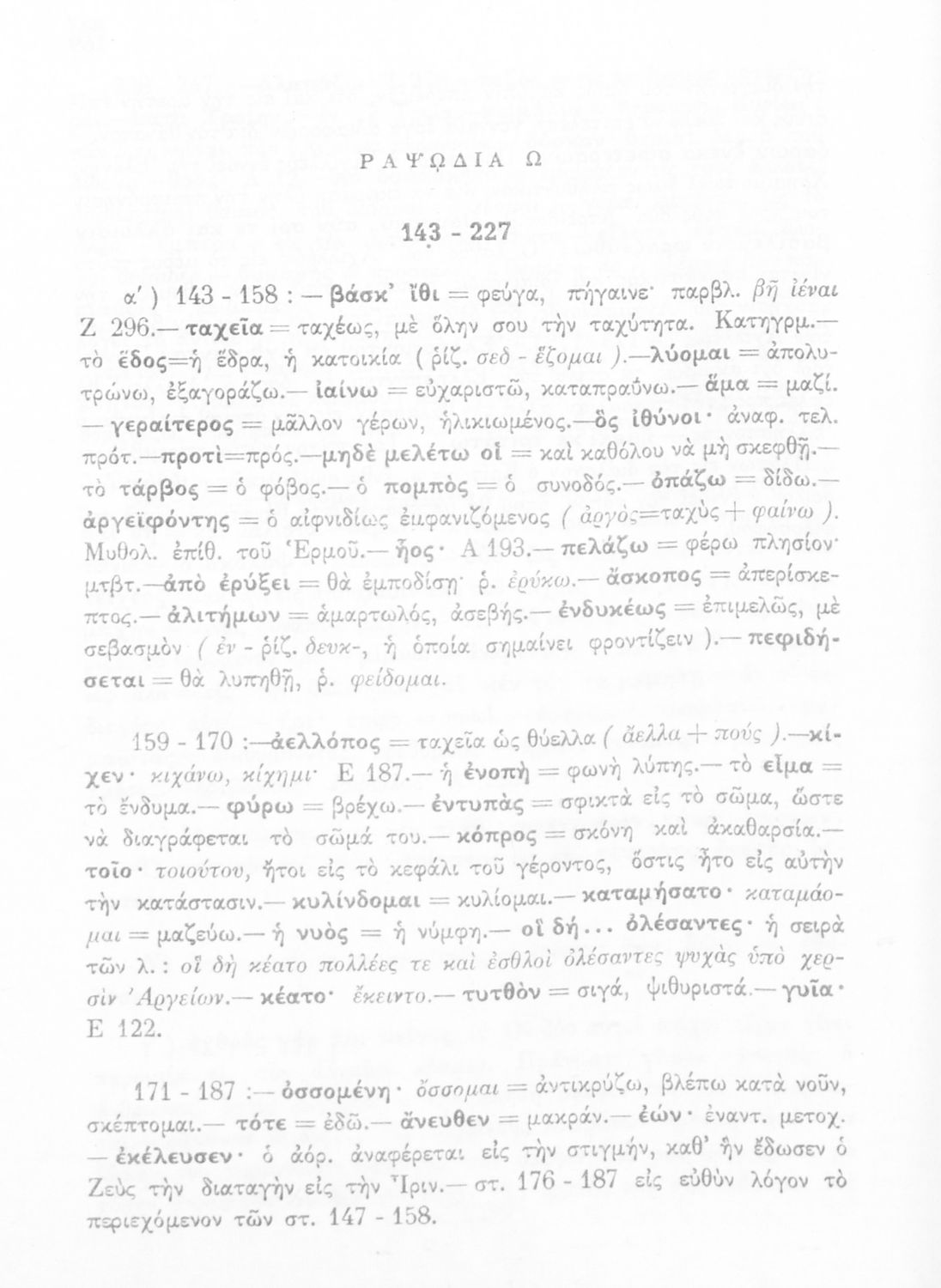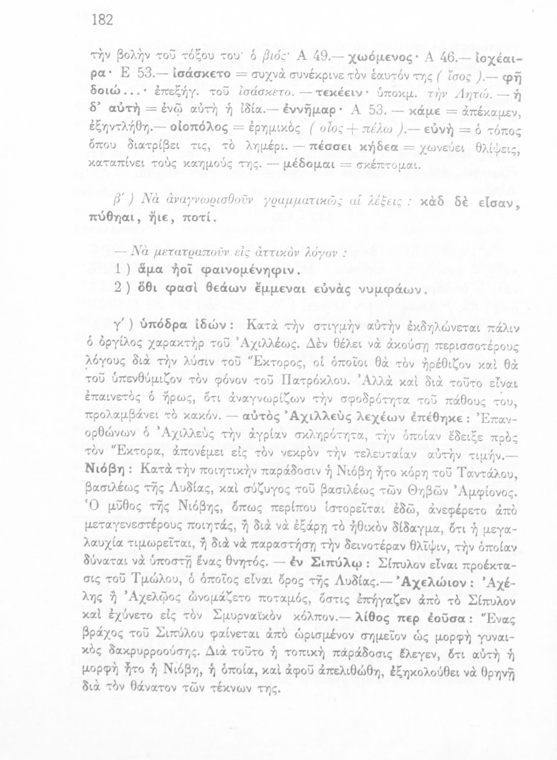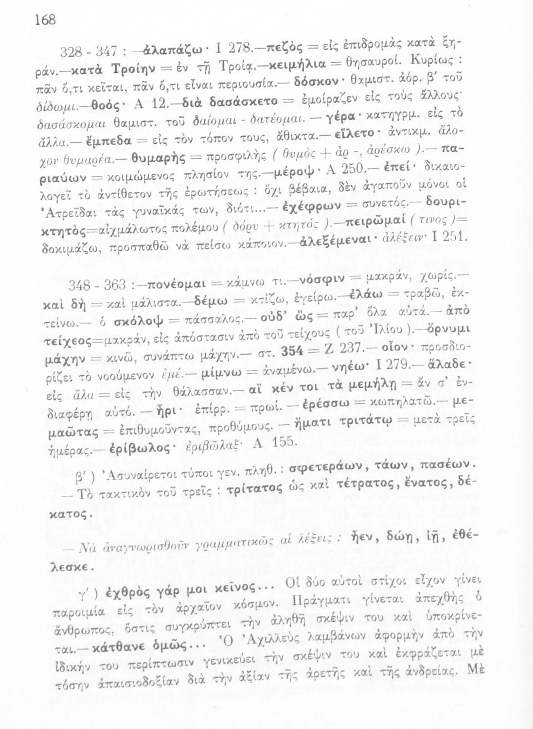 Μαθητικό βοήθημα του Ελληνικού Σχολείου, των Παρθεναγωγείων και του Γυμνασίου για το μάθημα των Αρχαίων Ελληνικών. Περιέχει τις ραψωδίες Ο, Π, Ρ, Σ, Τ, Χ, ψ, Ω από το πρωτότυπο με σχόλια και ερμηνευτικές ...