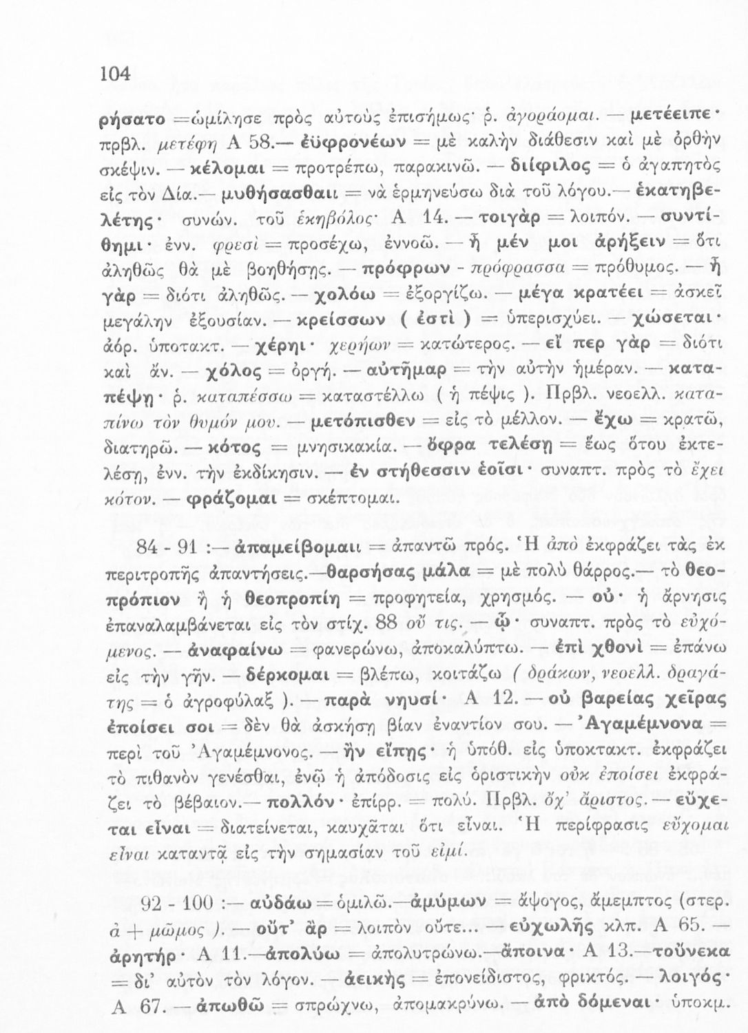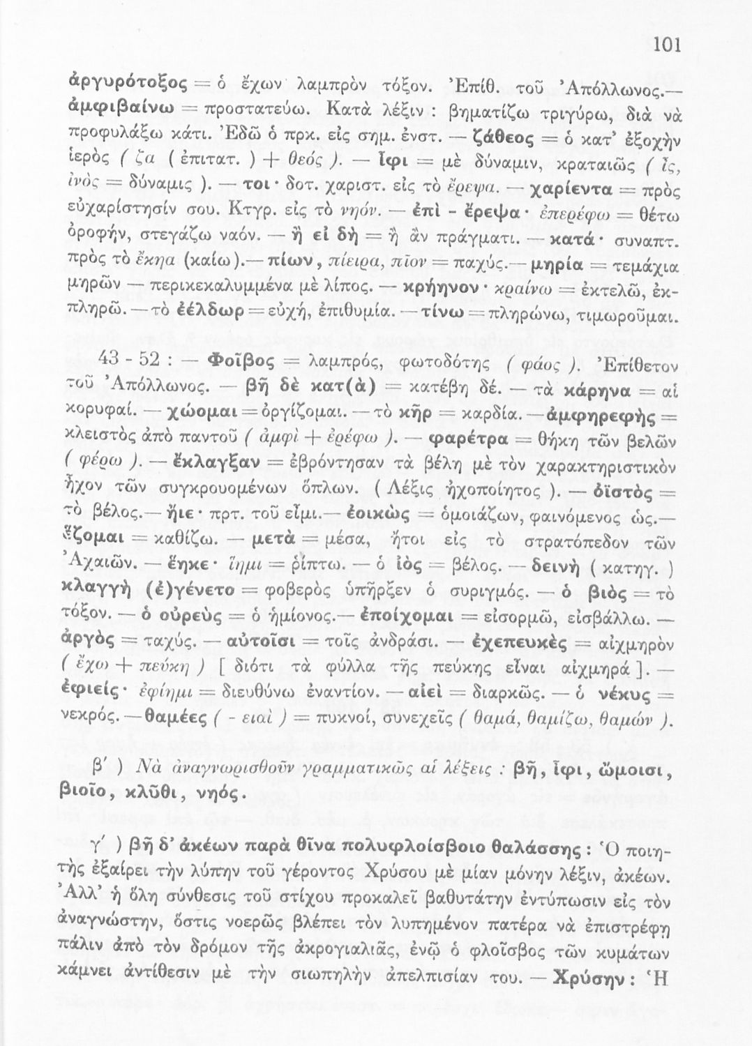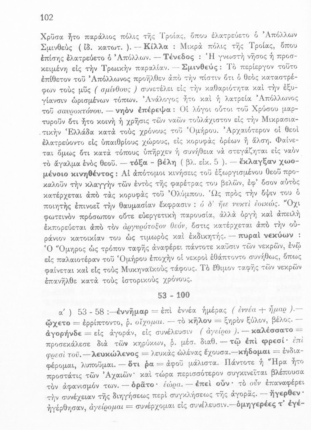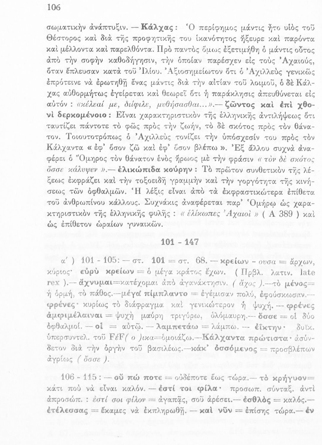 Μαθητικό βοήθημα του Ελληνικού Σχολείου, των Παρθεναγωγείων και του Γυμνασίου για το μάθημα των Αρχαίων Ελληνικών. Περιέχει τις ραψωδίες Ο, Π, Ρ, Σ, Τ, Χ, ψ, Ω από το πρωτότυπο με σχόλια και ερμηνευτικές ...