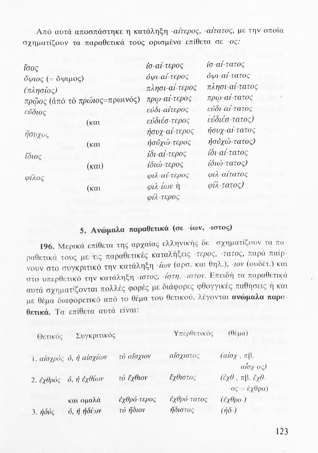 Σχολικό εγχειρίδιο Αρχαίων Ελληνικών που περιέχει τους κανόνες γραμματικής και είναι χωρισμένο σε φθογγολογικό, τυπολογικό και ετυμολογικό μέρος. Περιέχει και κατάλογο ανωμάλων ρημάτων.