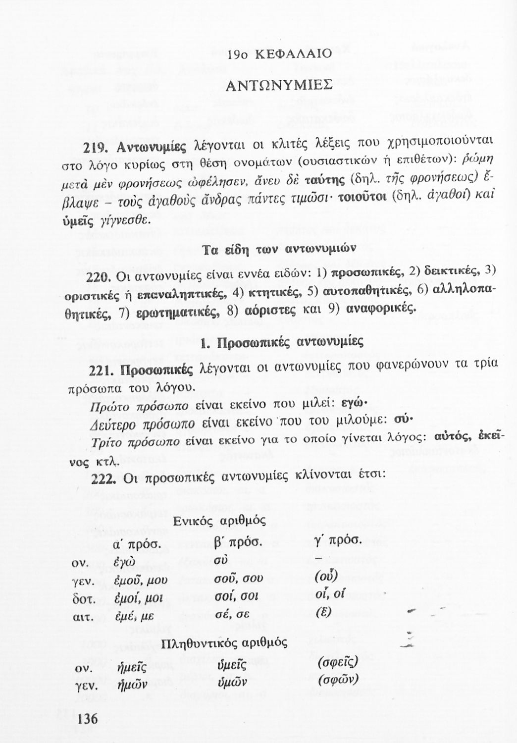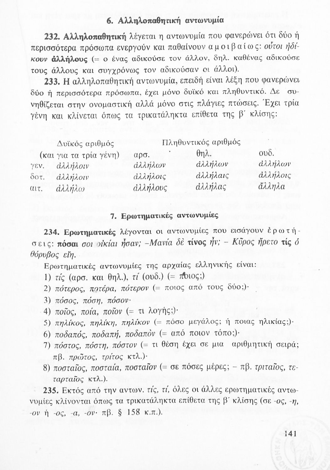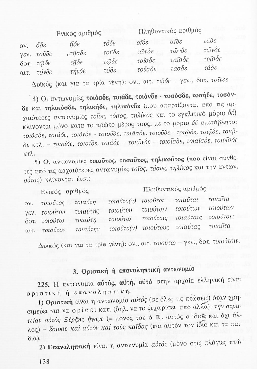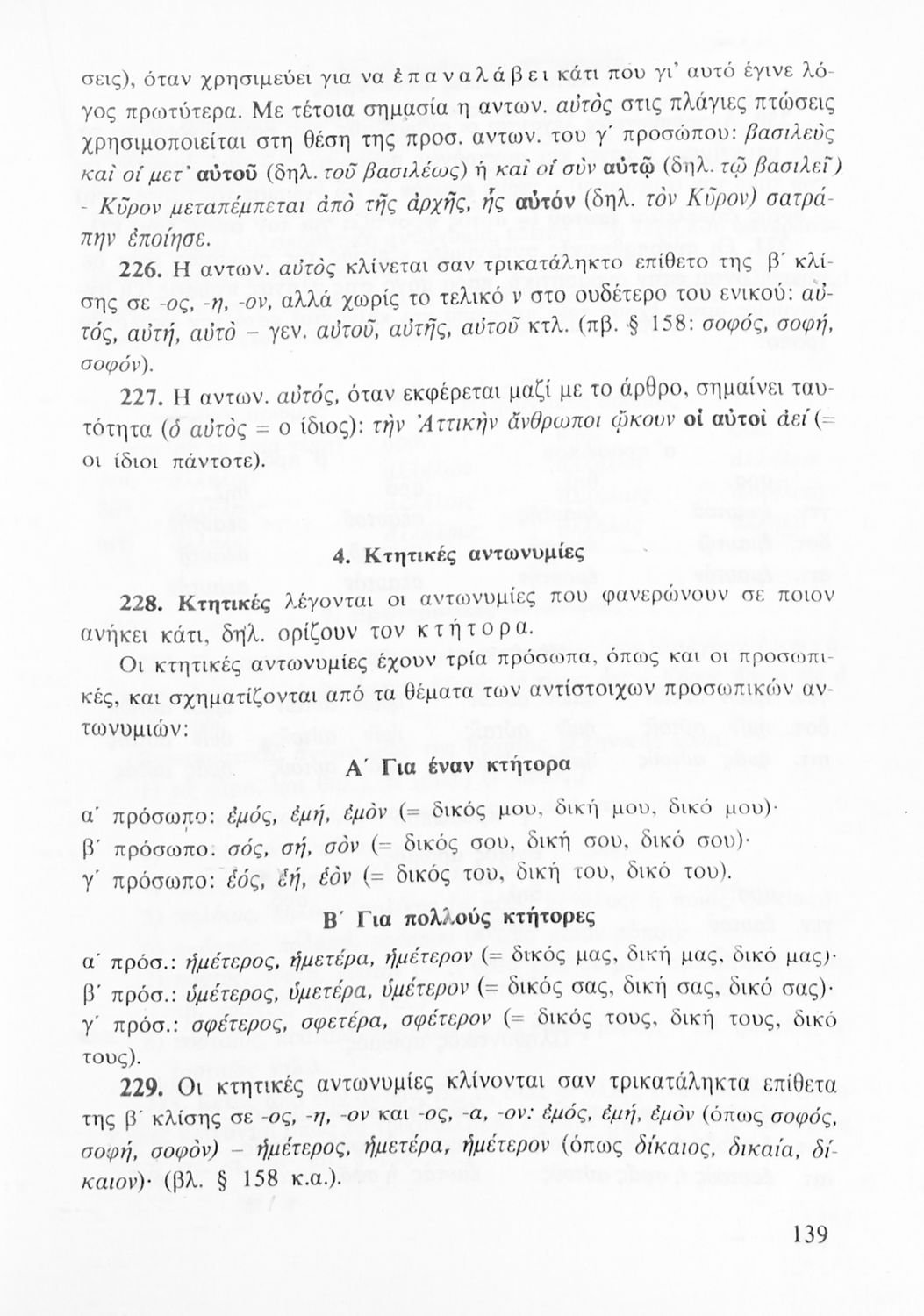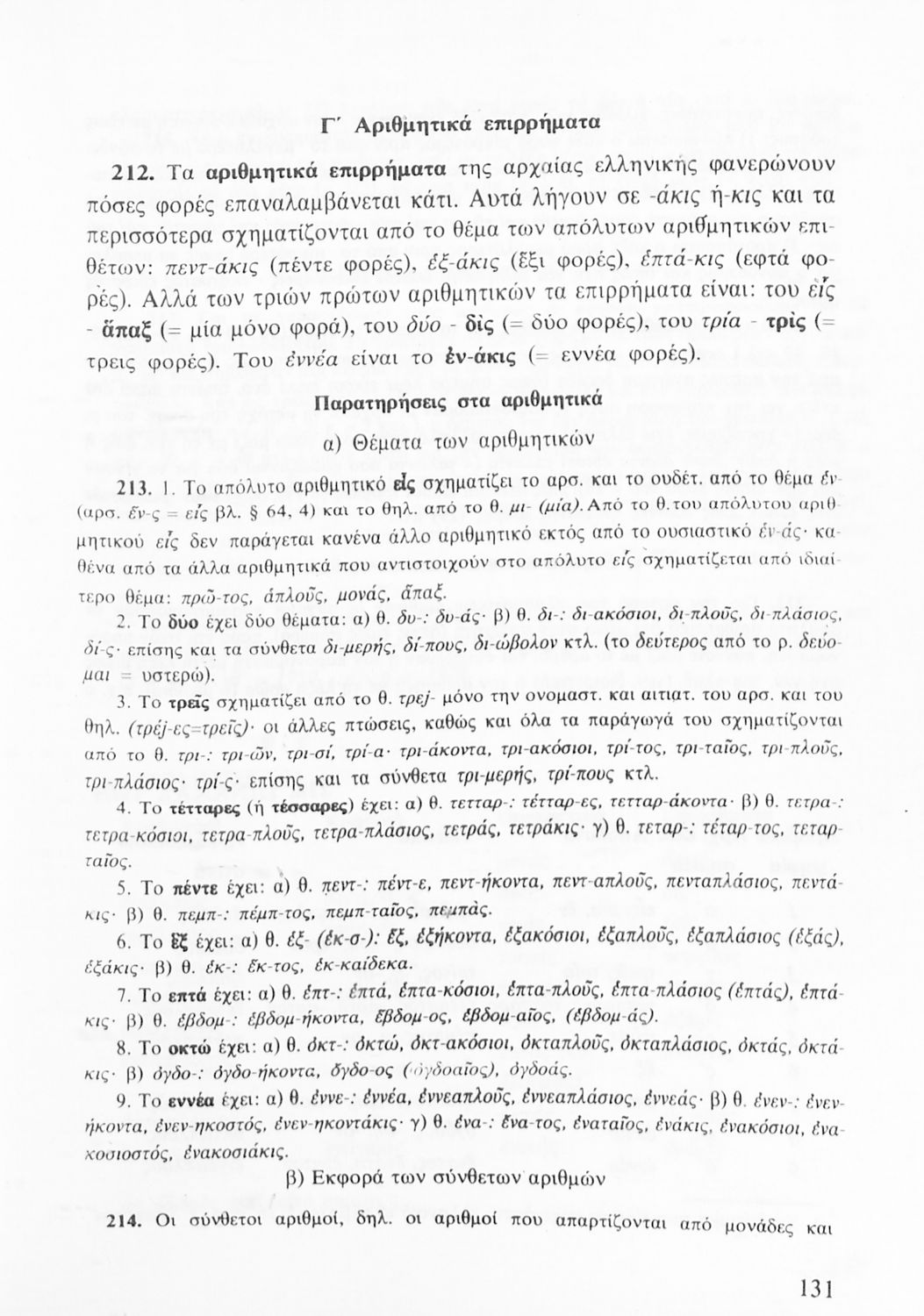 Σχολικό εγχειρίδιο Αρχαίων Ελληνικών Γυμνασίου που περιλαμβάνει τη γραμματική της αρχαίας ελληνικής και είναι χωρισμένο σε φθογγολογικό και τυπολογικό μέρος Περιέχει και κατάλογο ανωμάλων ρημάτων.