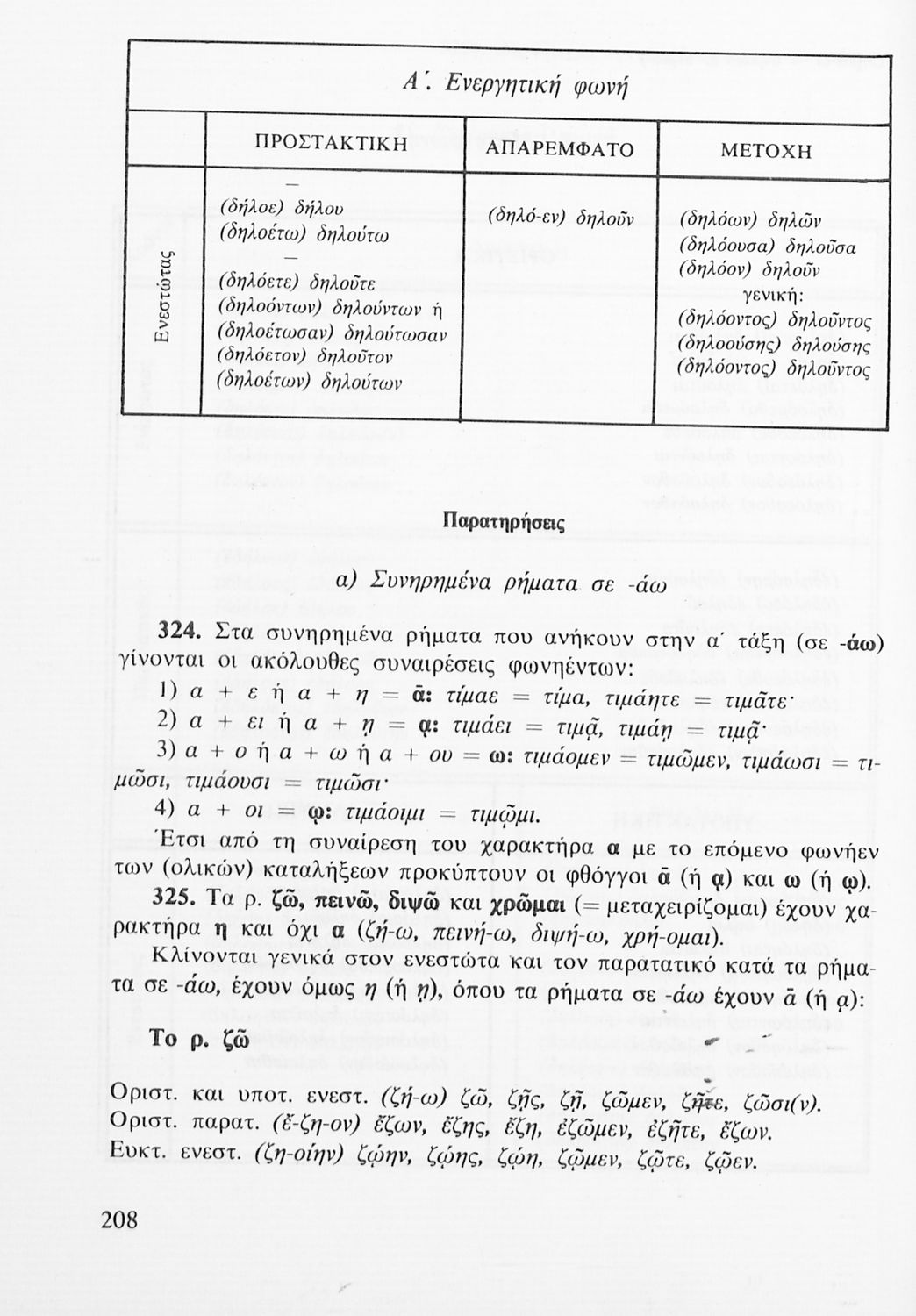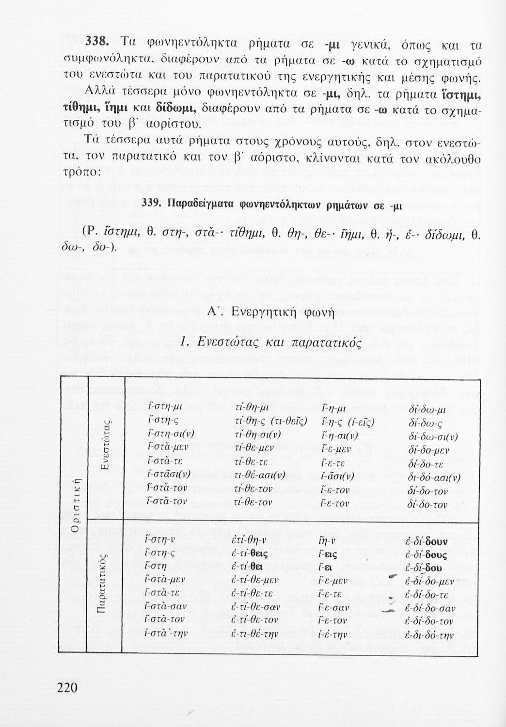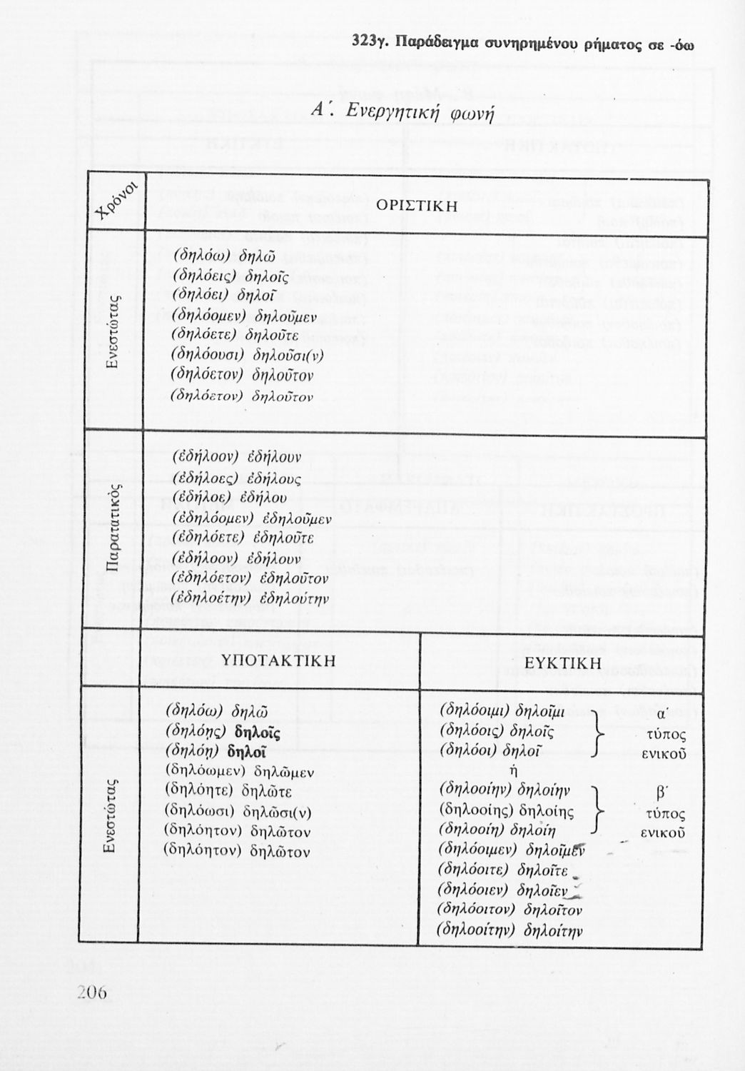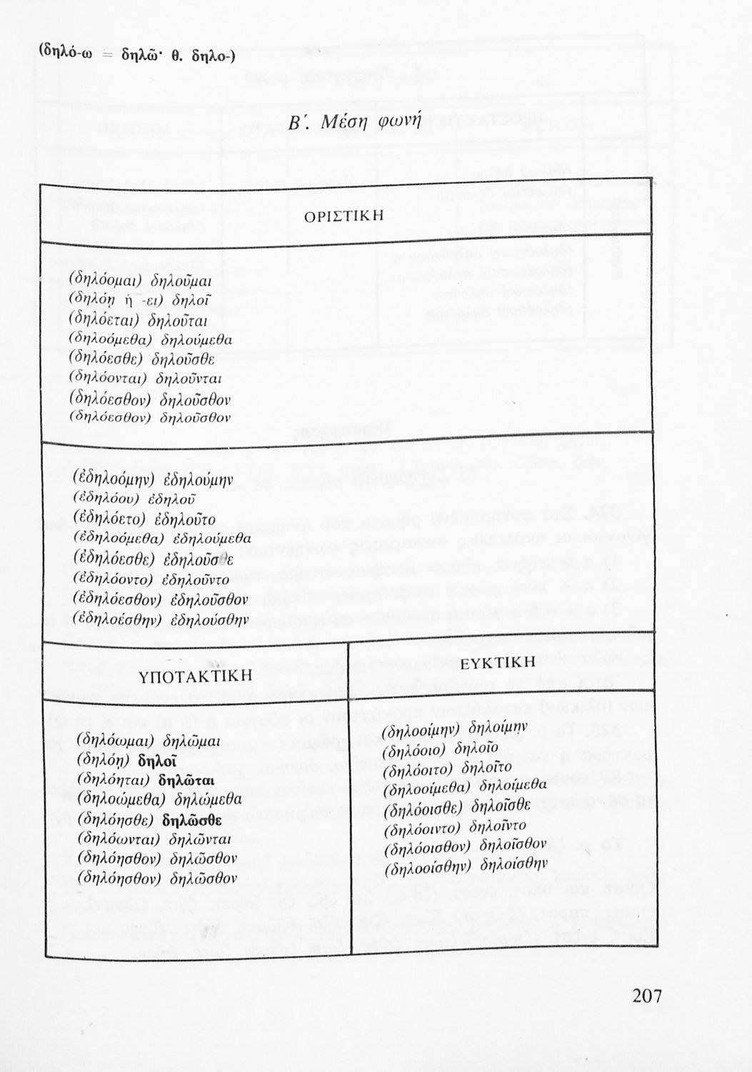 Σχολικό εγχειρίδιο Αρχαίων Ελληνικών Γυμνασίου που περιλαμβάνει τη γραμματική της αρχαίας ελληνικής και είναι χωρισμένο σε φθογγολογικό και τυπολογικό μέρος Περιέχει και κατάλογο ανωμάλων ρημάτων.