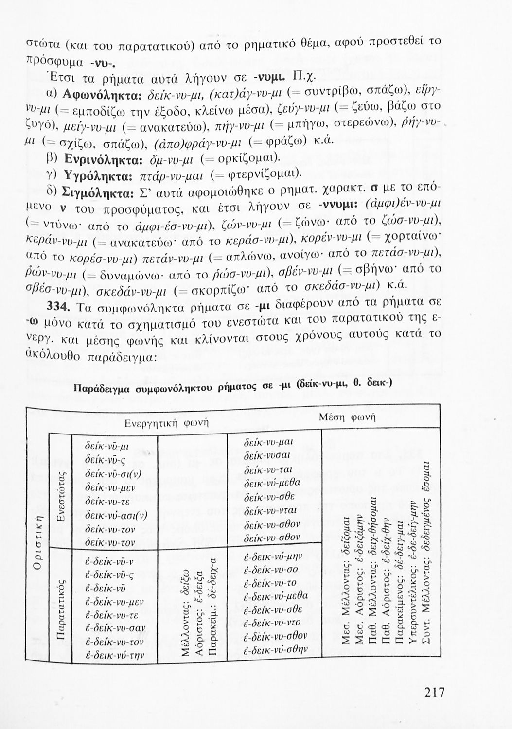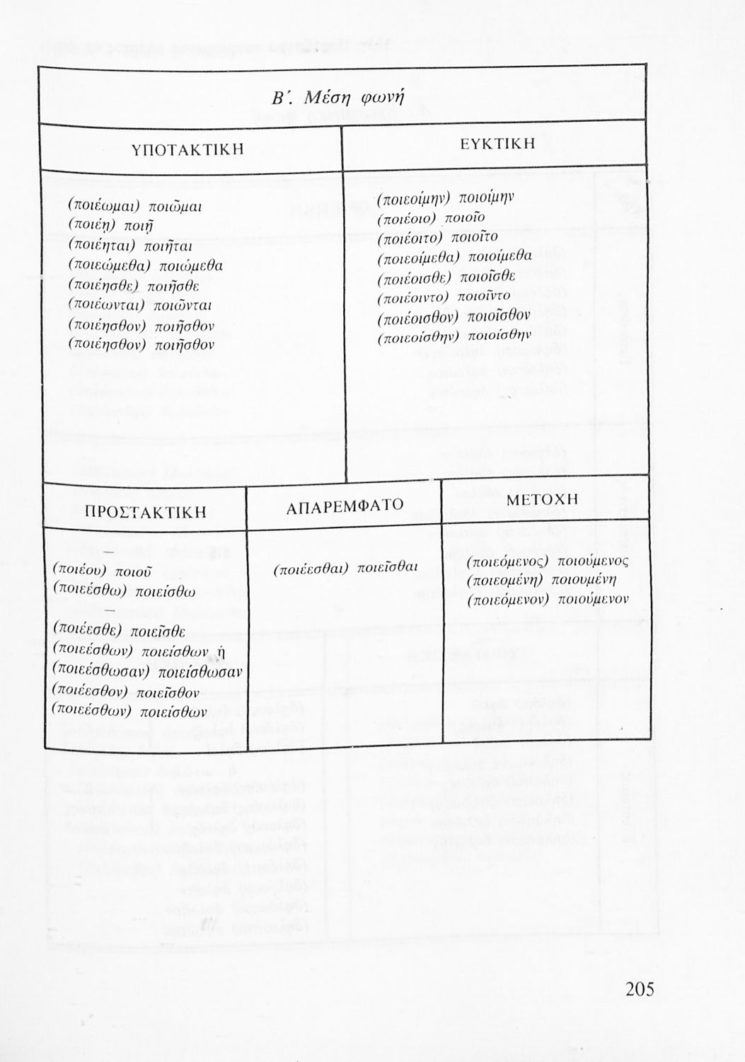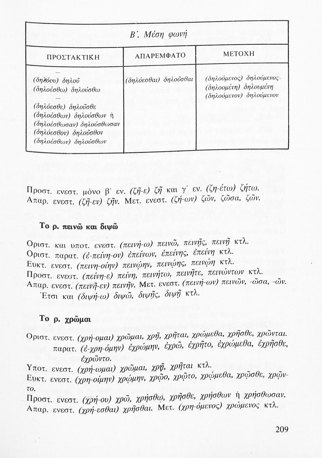 Σχολικό εγχειρίδιο Αρχαίων Ελληνικών Γυμνασίου που περιλαμβάνει τη γραμματική της αρχαίας ελληνικής και είναι χωρισμένο σε φθογγολογικό και τυπολογικό μέρος Περιέχει και κατάλογο ανωμάλων ρημάτων.