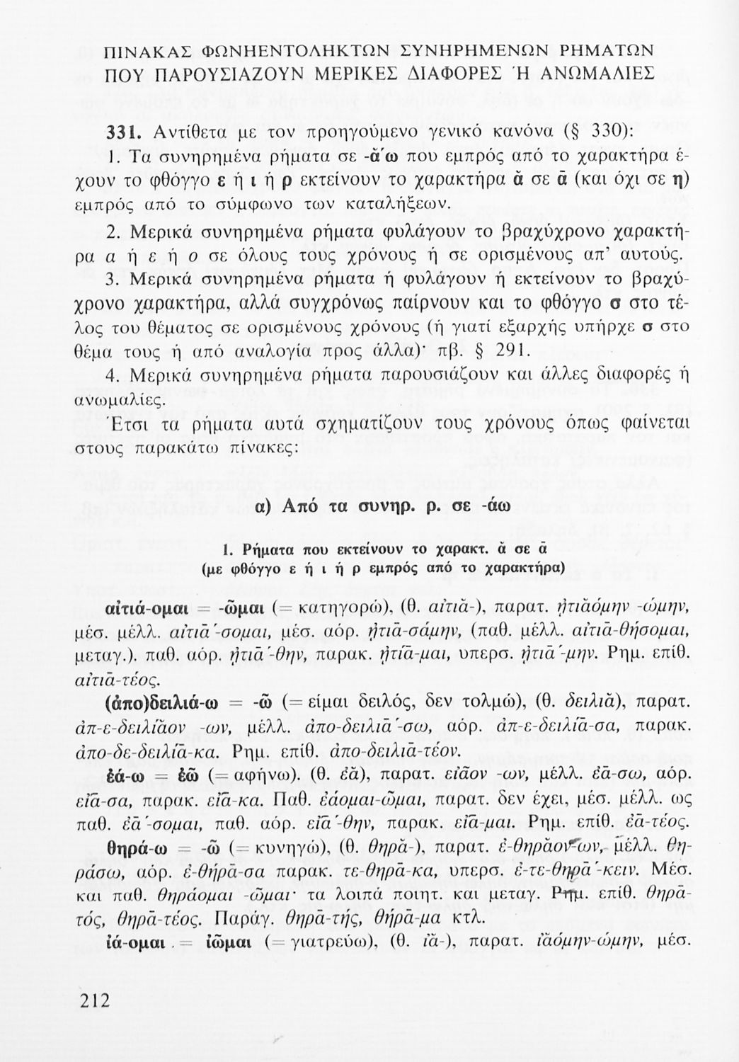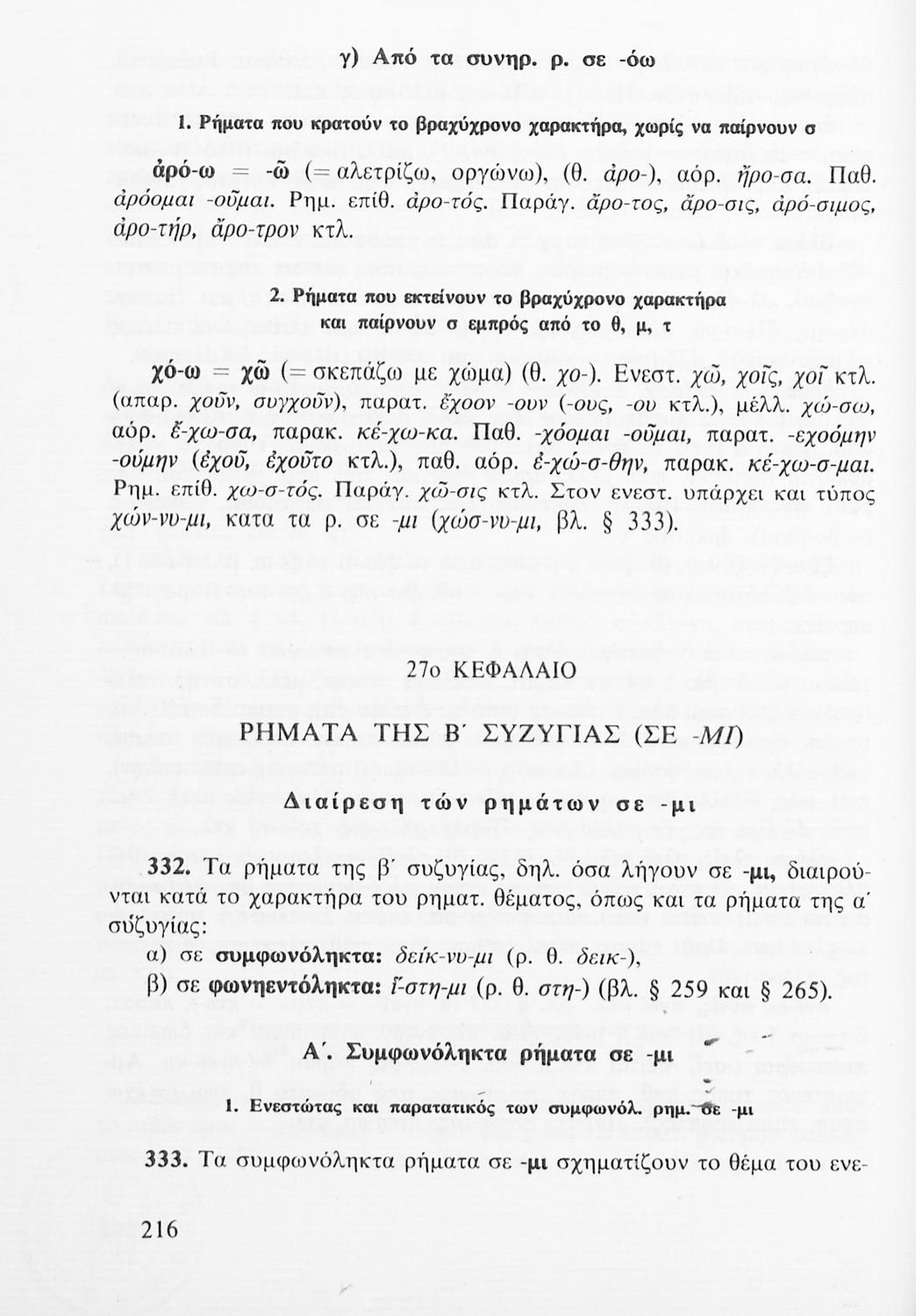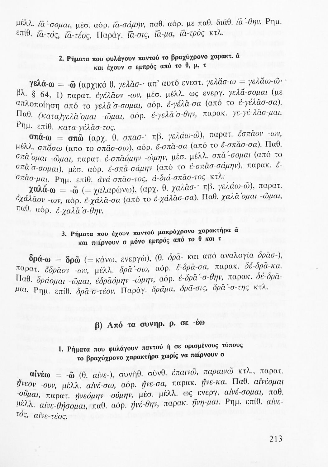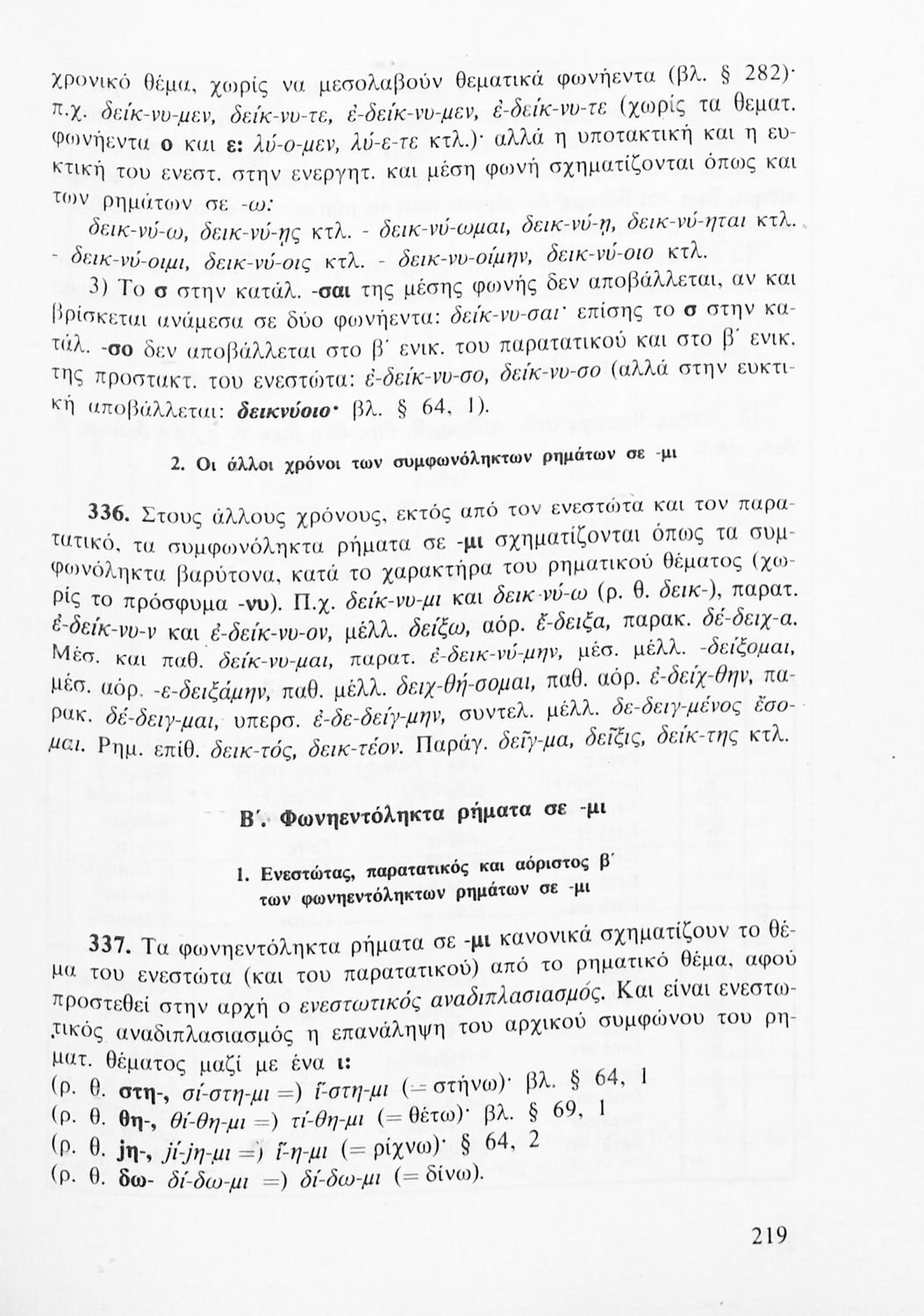 Σχολικό εγχειρίδιο Αρχαίων Ελληνικών Γυμνασίου που περιλαμβάνει τη γραμματική της αρχαίας ελληνικής και είναι χωρισμένο σε φθογγολογικό και τυπολογικό μέρος Περιέχει και κατάλογο ανωμάλων ρημάτων.