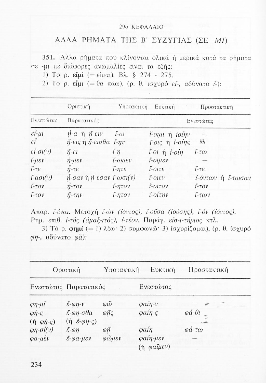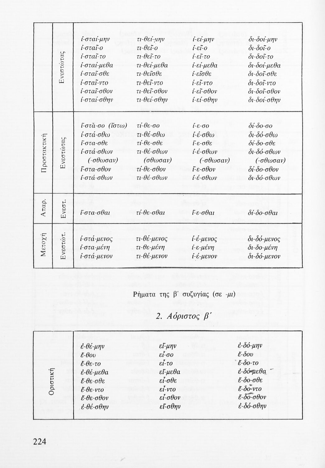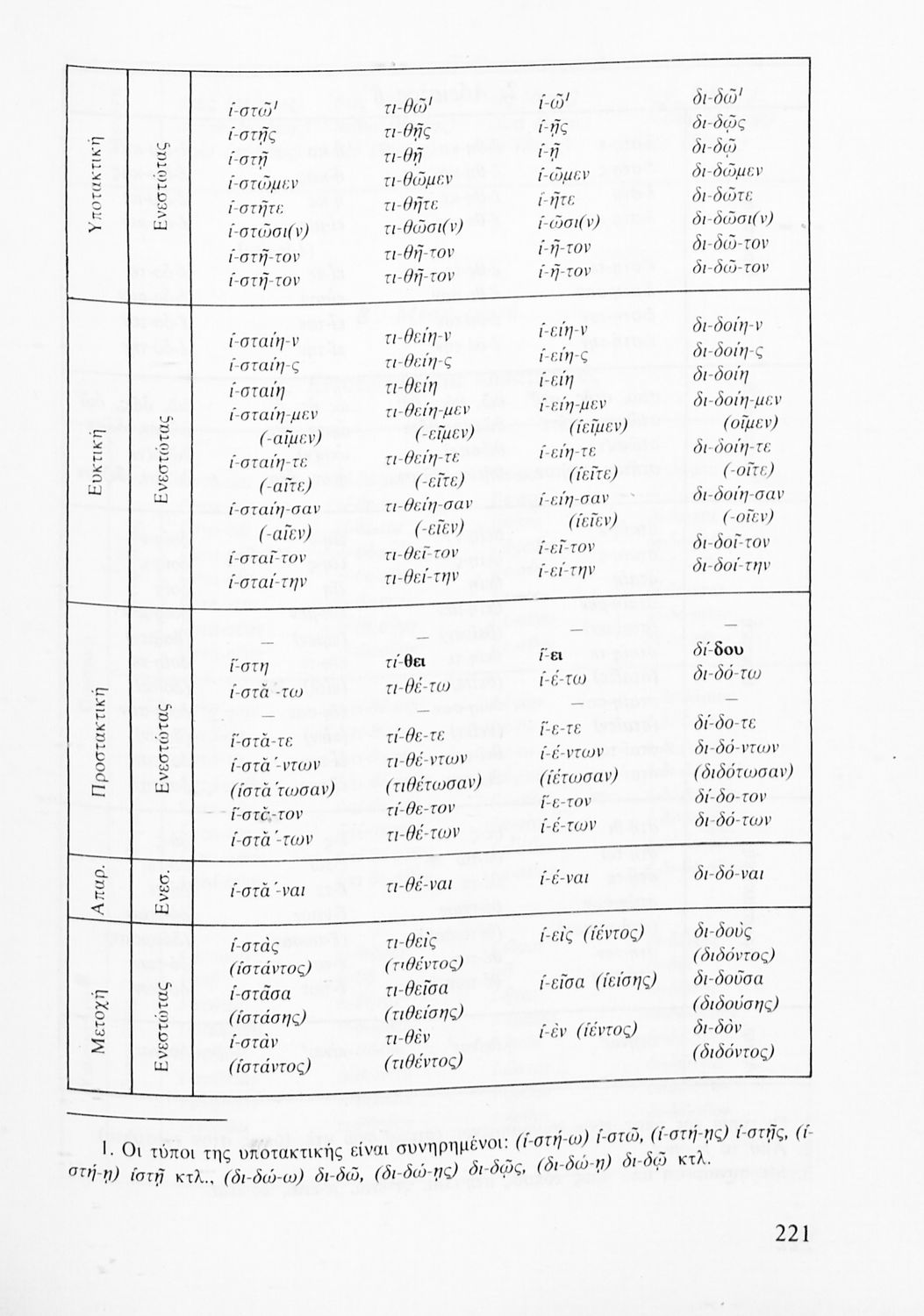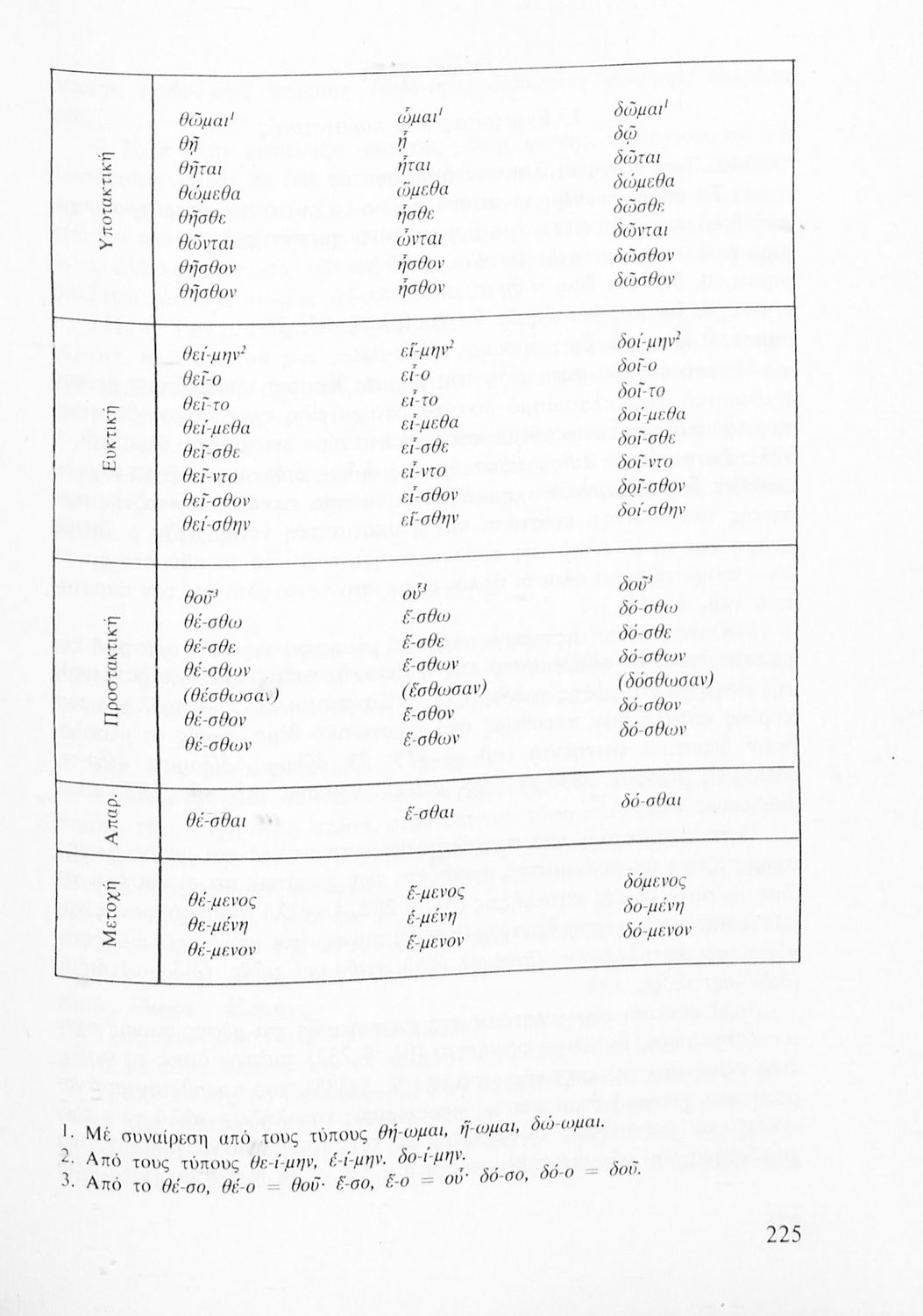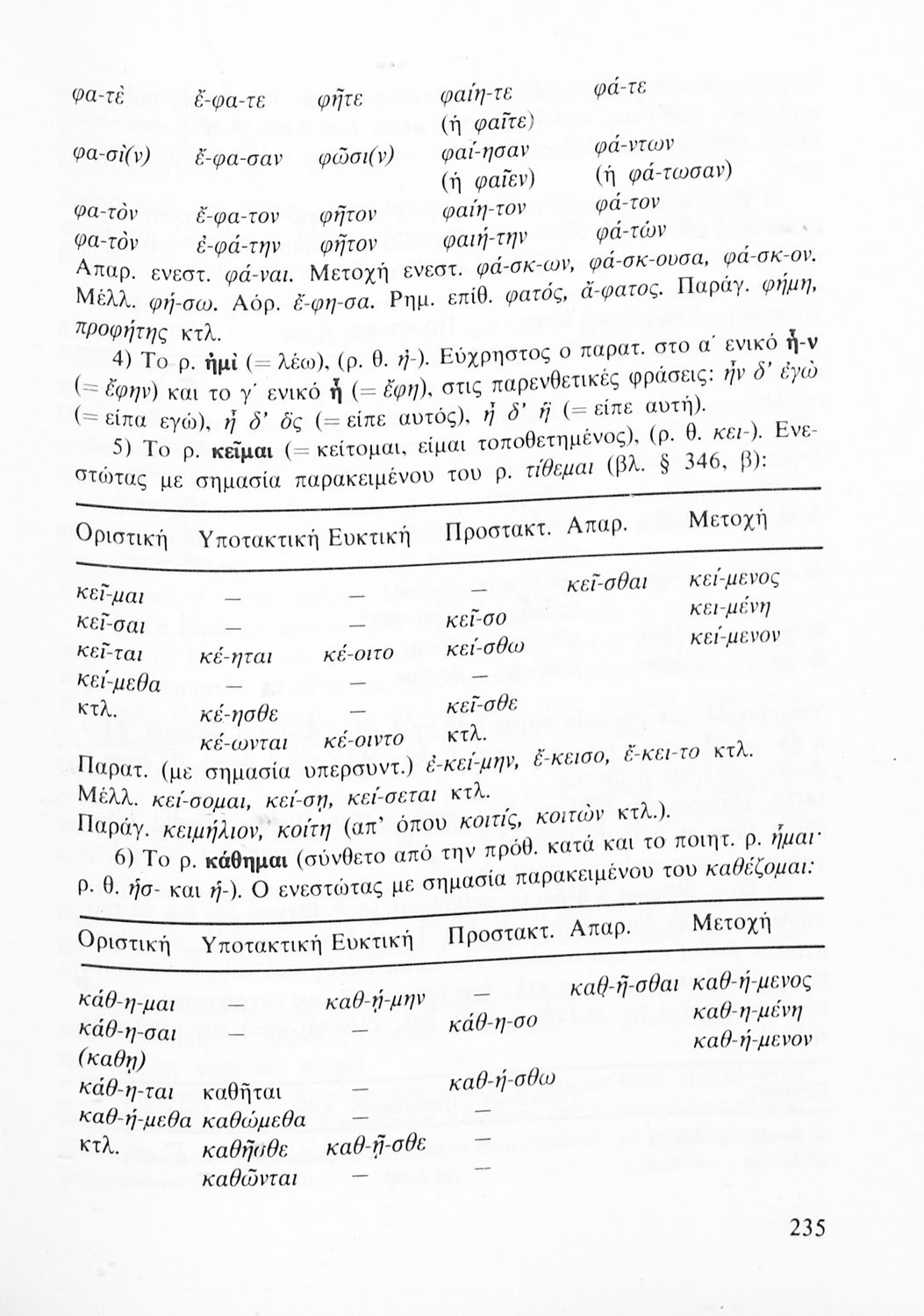 Σχολικό εγχειρίδιο Αρχαίων Ελληνικών Γυμνασίου που περιλαμβάνει τη γραμματική της αρχαίας ελληνικής και είναι χωρισμένο σε φθογγολογικό και τυπολογικό μέρος Περιέχει και κατάλογο ανωμάλων ρημάτων.