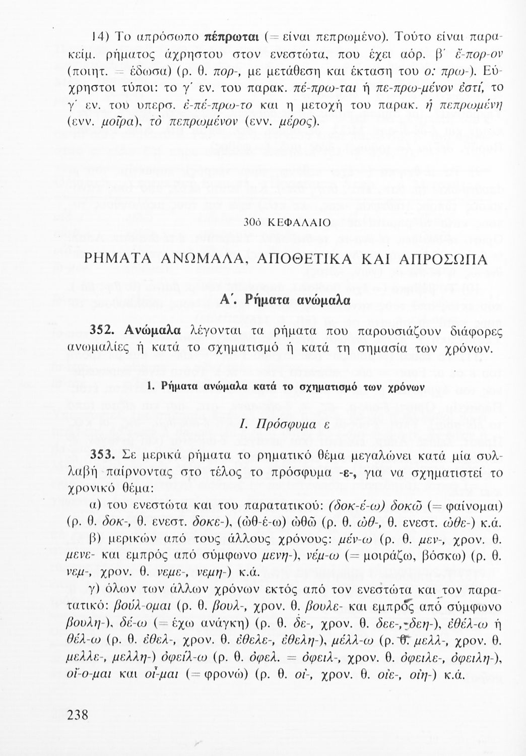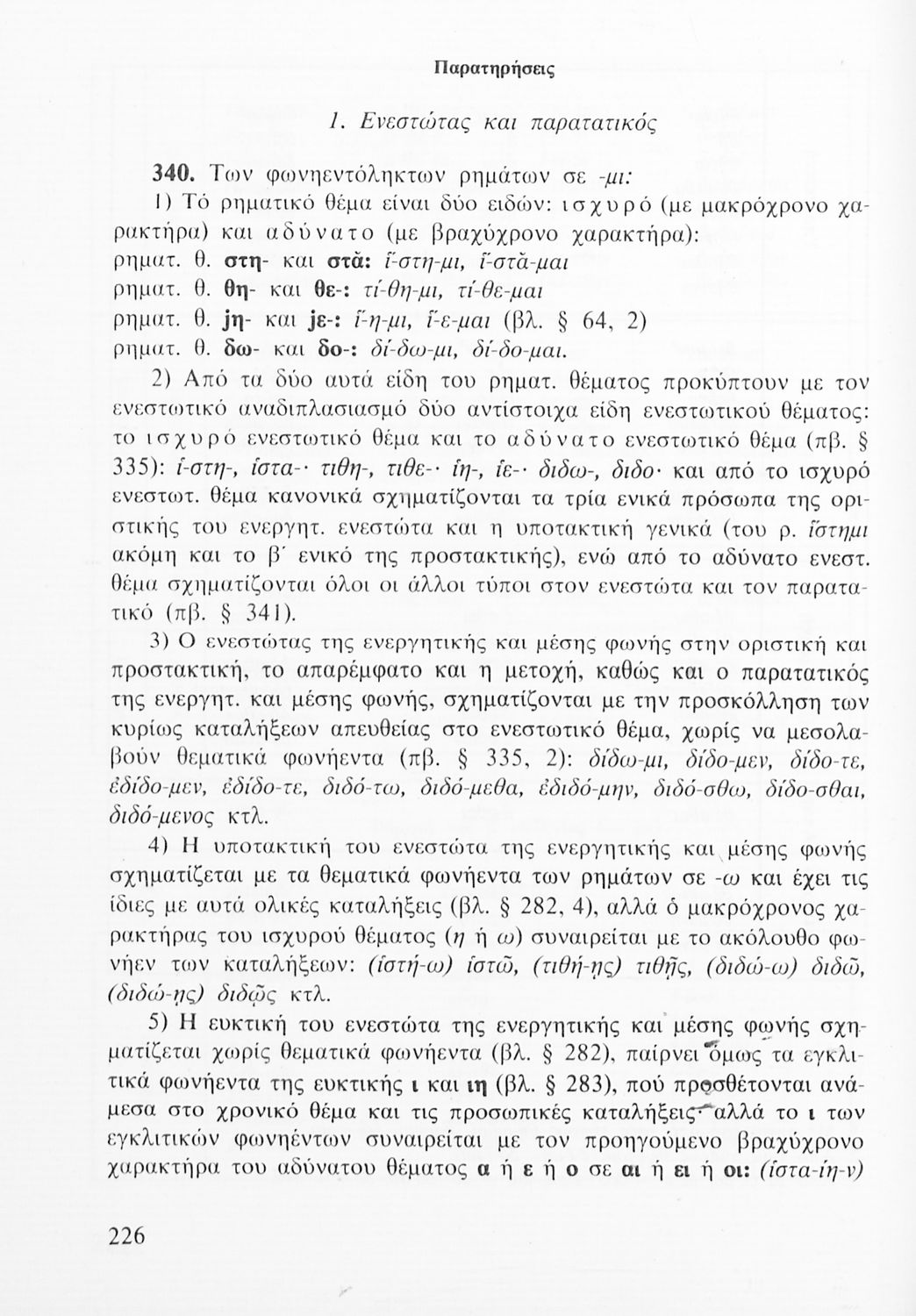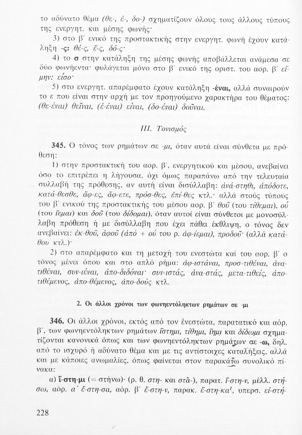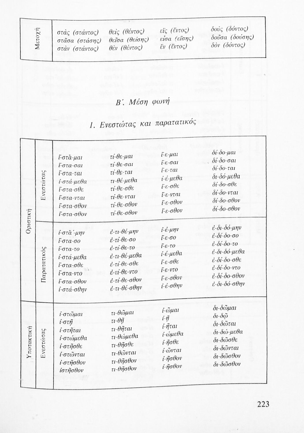 Σχολικό εγχειρίδιο Αρχαίων Ελληνικών Γυμνασίου που περιλαμβάνει τη γραμματική της αρχαίας ελληνικής και είναι χωρισμένο σε φθογγολογικό και τυπολογικό μέρος Περιέχει και κατάλογο ανωμάλων ρημάτων.