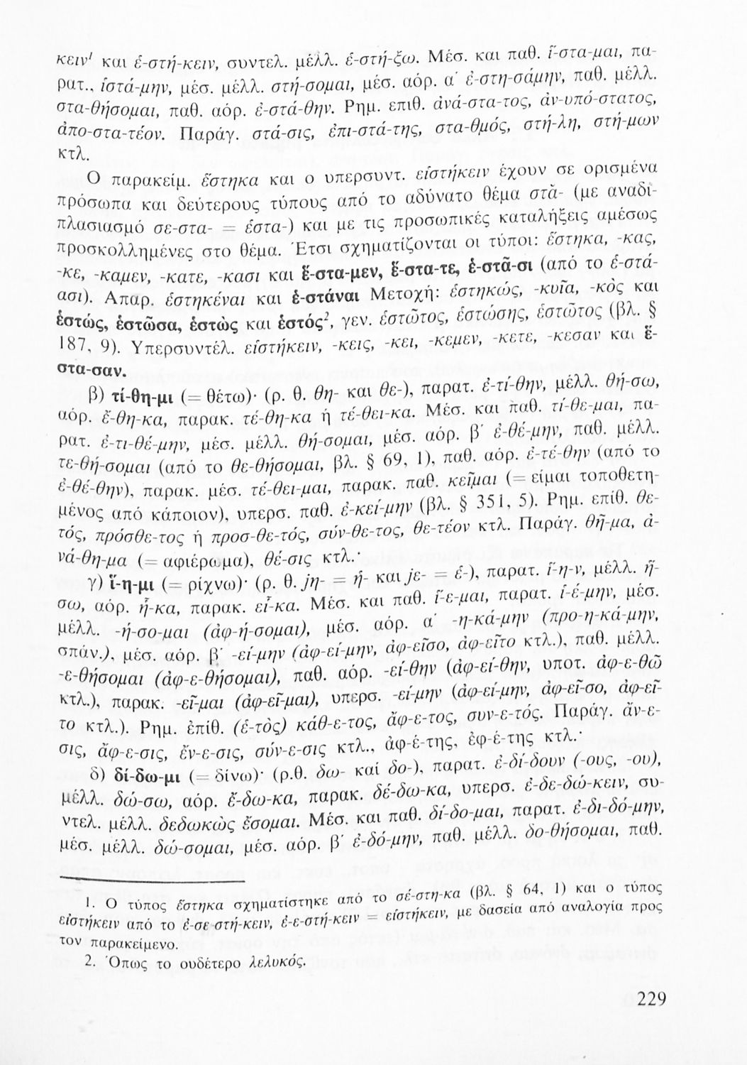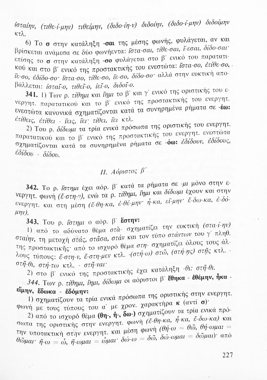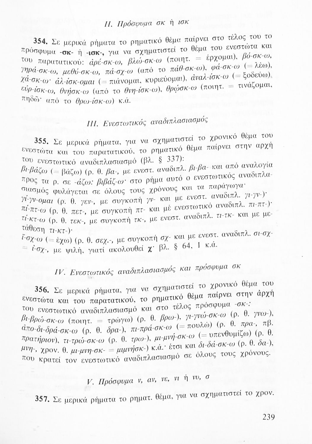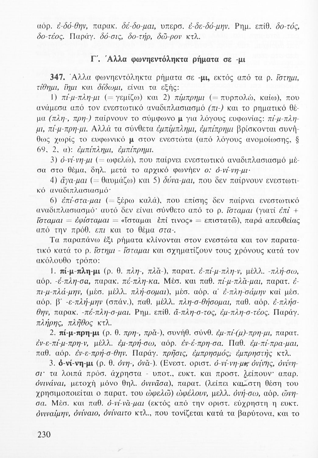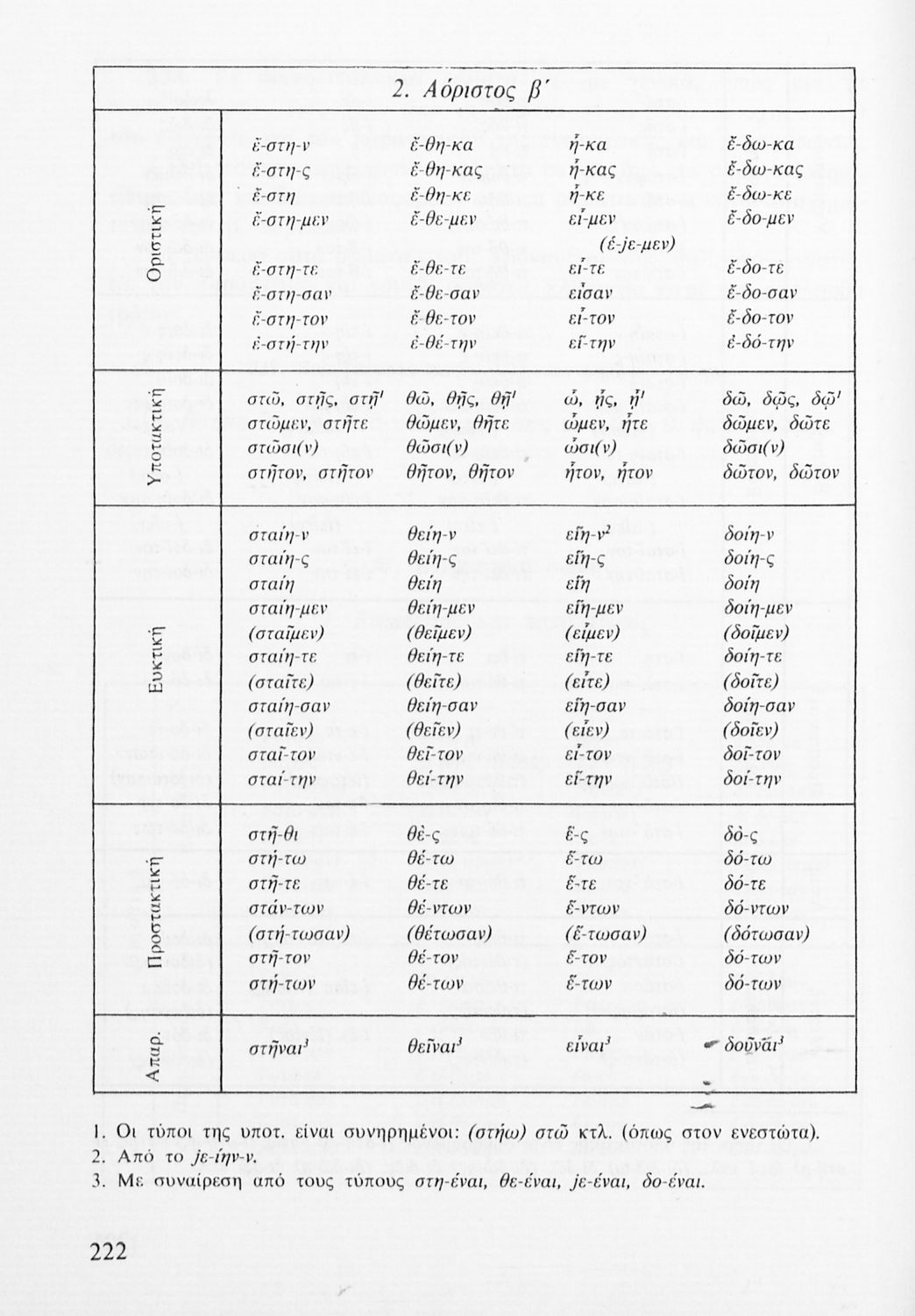 Σχολικό εγχειρίδιο Αρχαίων Ελληνικών Γυμνασίου που περιλαμβάνει τη γραμματική της αρχαίας ελληνικής και είναι χωρισμένο σε φθογγολογικό και τυπολογικό μέρος Περιέχει και κατάλογο ανωμάλων ρημάτων.