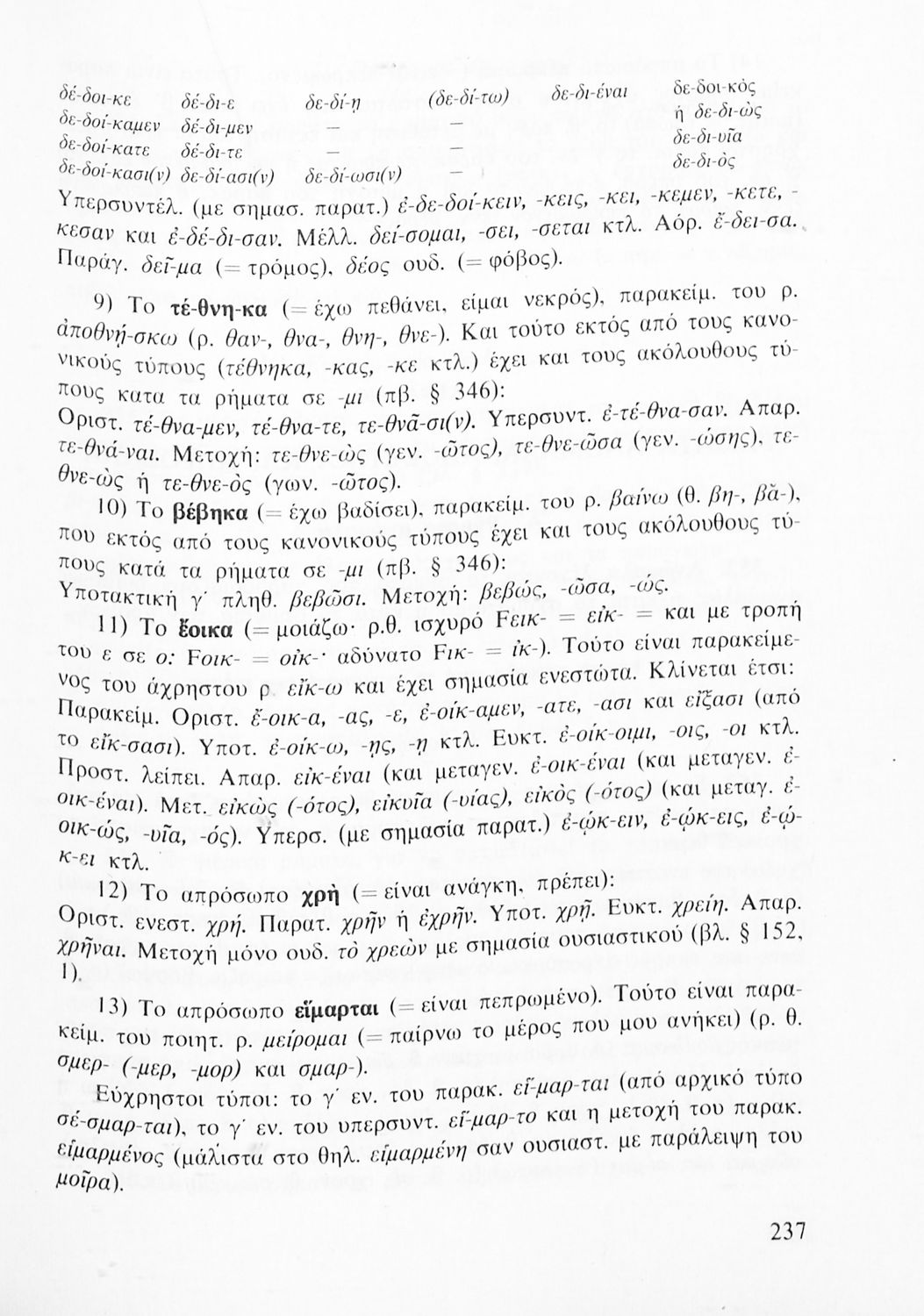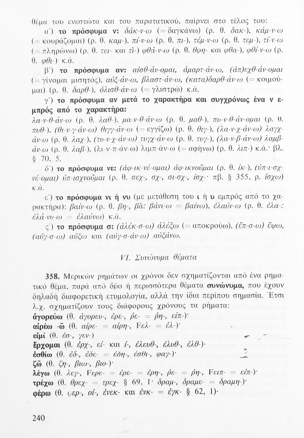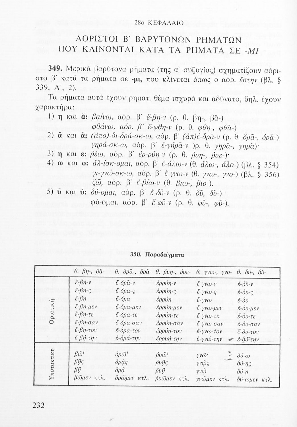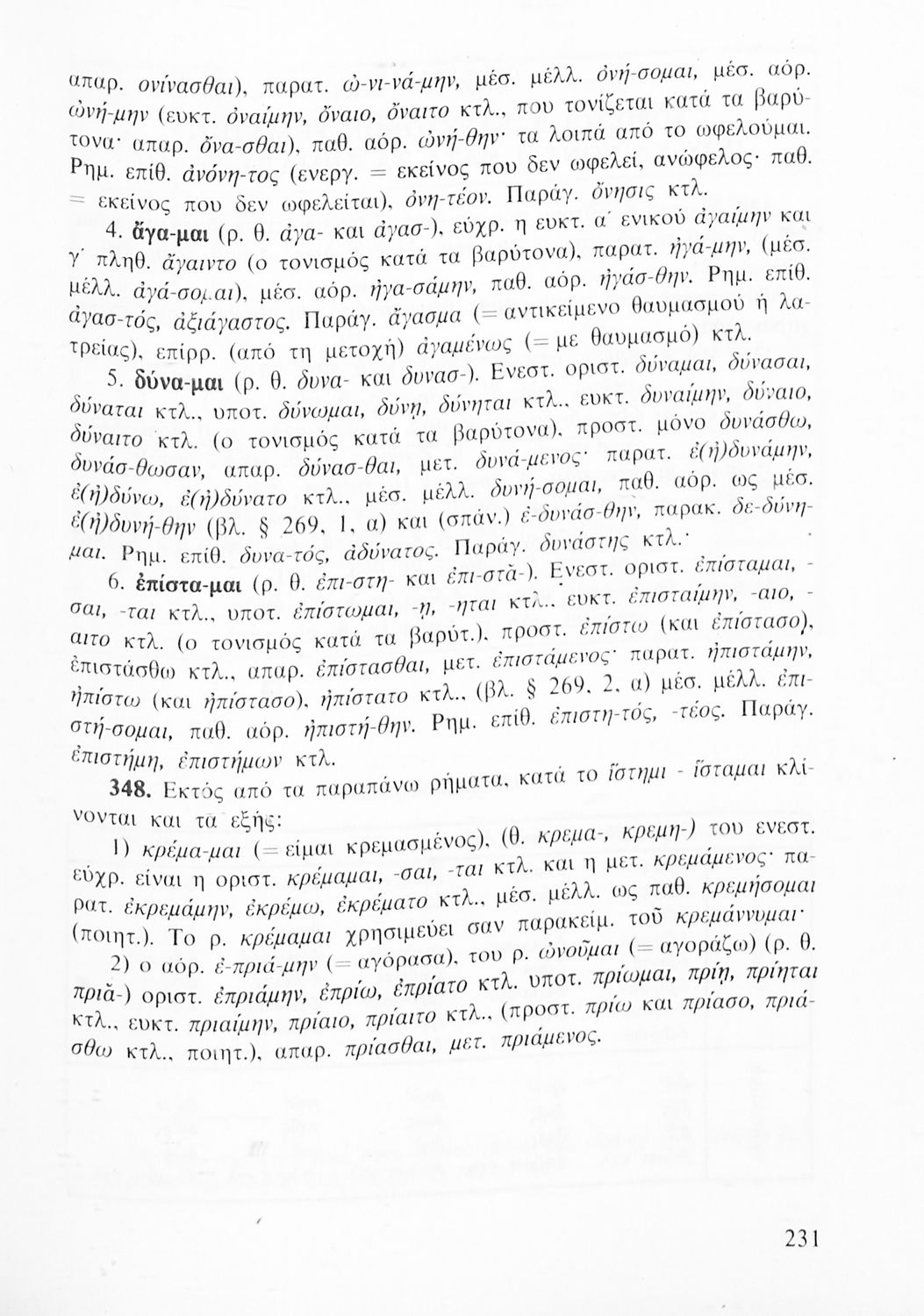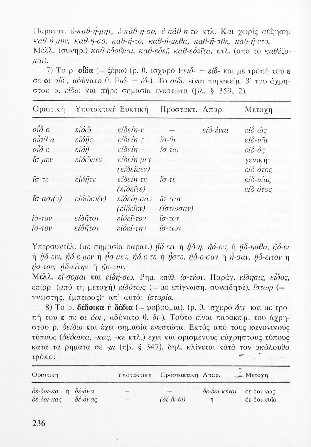 Σχολικό εγχειρίδιο Αρχαίων Ελληνικών Γυμνασίου που περιλαμβάνει τη γραμματική της αρχαίας ελληνικής και είναι χωρισμένο σε φθογγολογικό και τυπολογικό μέρος Περιέχει και κατάλογο ανωμάλων ρημάτων.