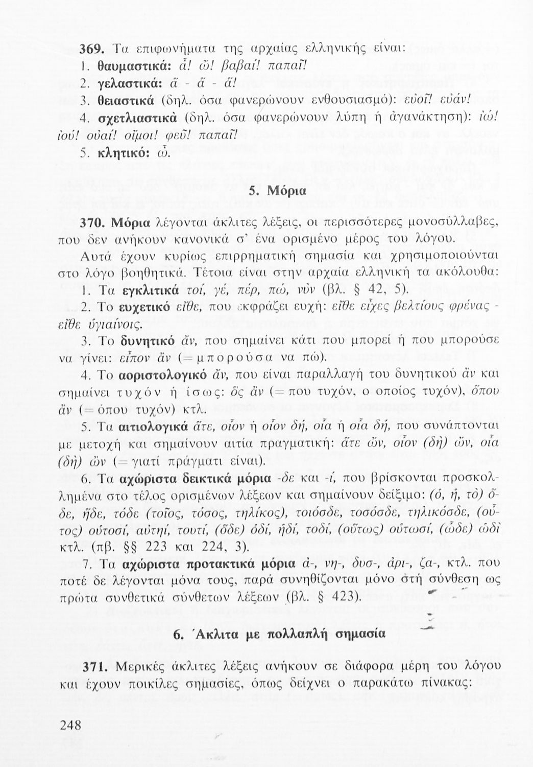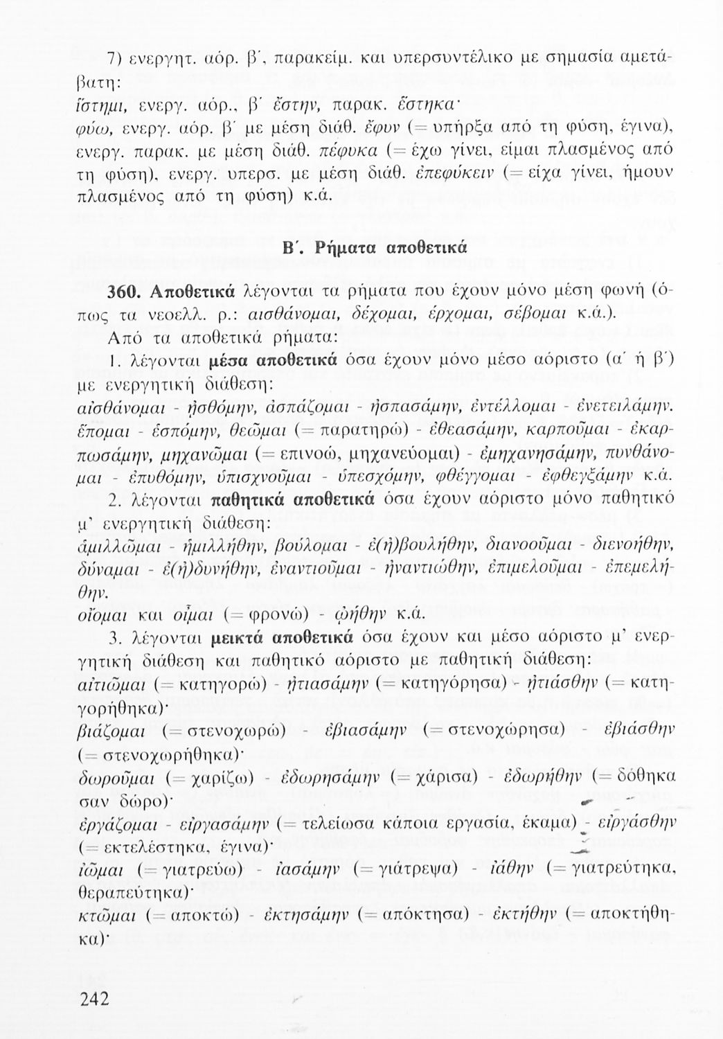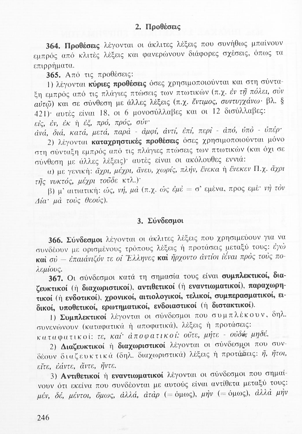 Σχολικό εγχειρίδιο Αρχαίων Ελληνικών Γυμνασίου που περιλαμβάνει τη γραμματική της αρχαίας ελληνικής και είναι χωρισμένο σε φθογγολογικό και τυπολογικό μέρος Περιέχει και κατάλογο ανωμάλων ρημάτων.