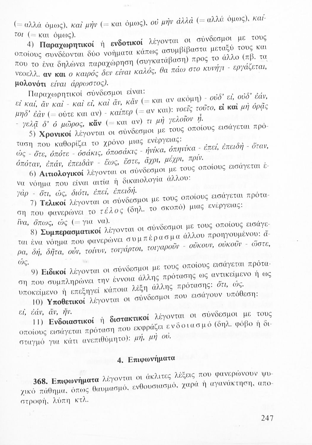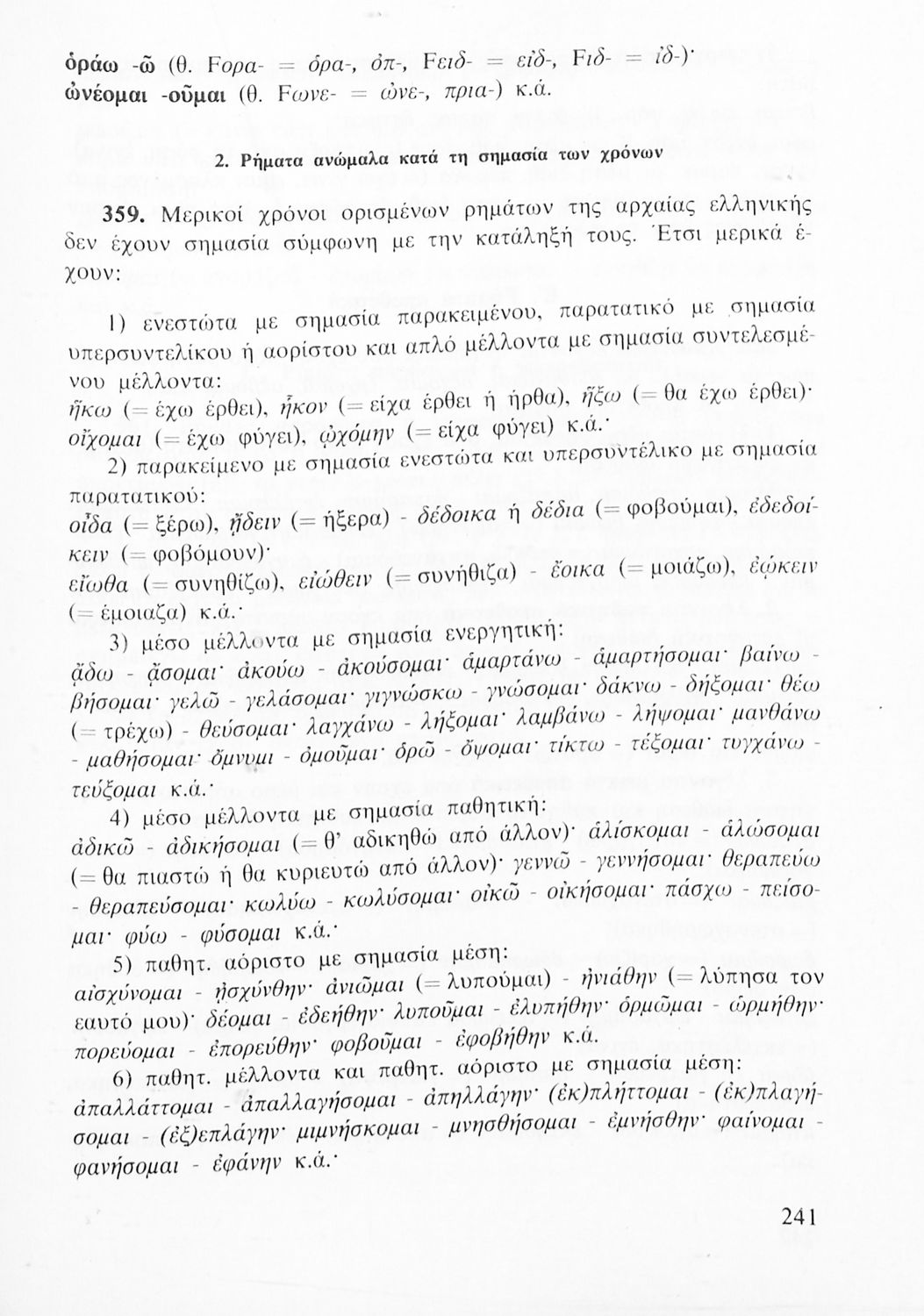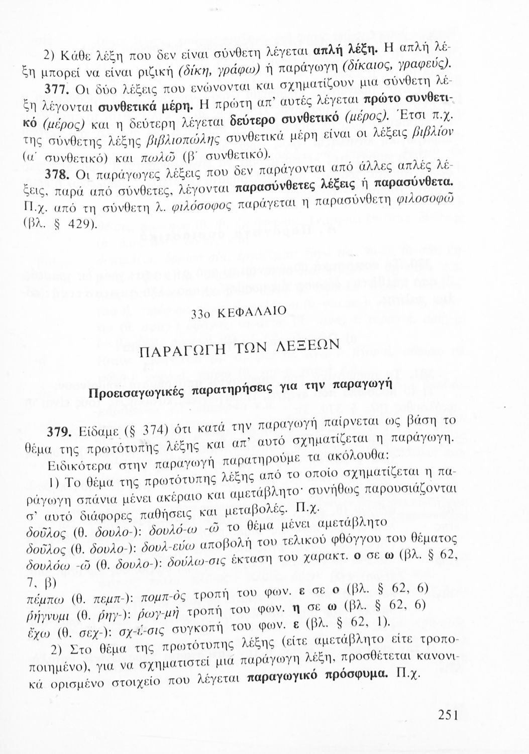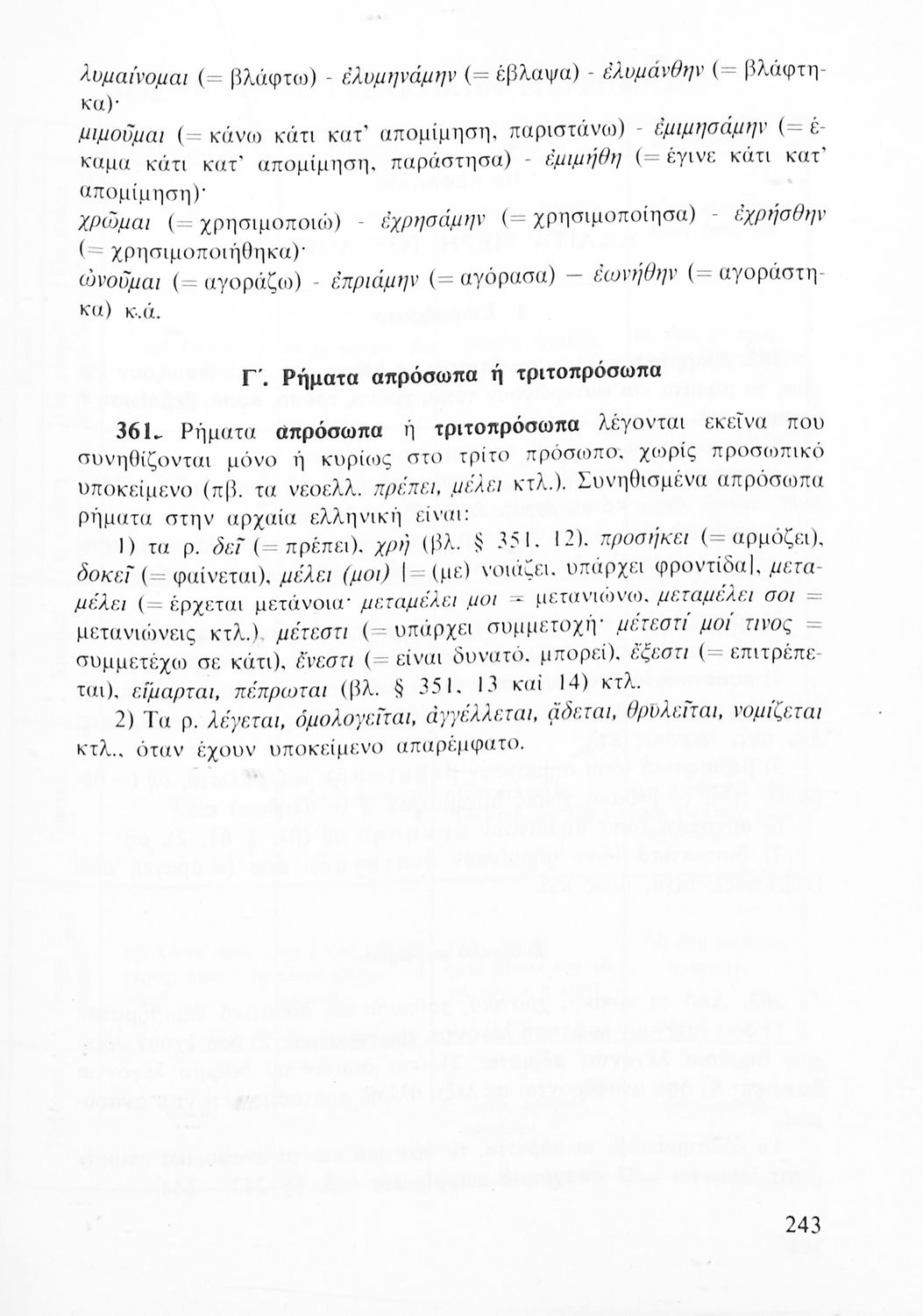 Σχολικό εγχειρίδιο Αρχαίων Ελληνικών Γυμνασίου που περιλαμβάνει τη γραμματική της αρχαίας ελληνικής και είναι χωρισμένο σε φθογγολογικό και τυπολογικό μέρος Περιέχει και κατάλογο ανωμάλων ρημάτων.