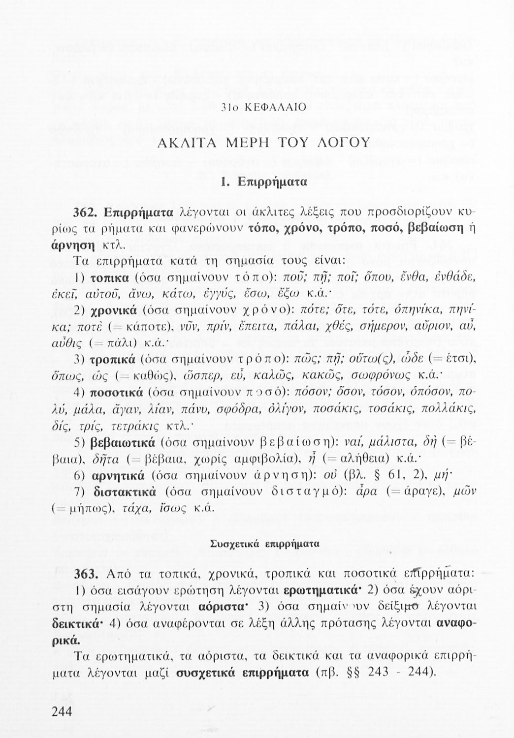 Σχολικό εγχειρίδιο Αρχαίων Ελληνικών που περιέχει τους κανόνες γραμματικής και είναι χωρισμένο σε φθογγολογικό, τυπολογικό και ετυμολογικό μέρος. Περιέχει και κατάλογο ανωμάλων ρημάτων.