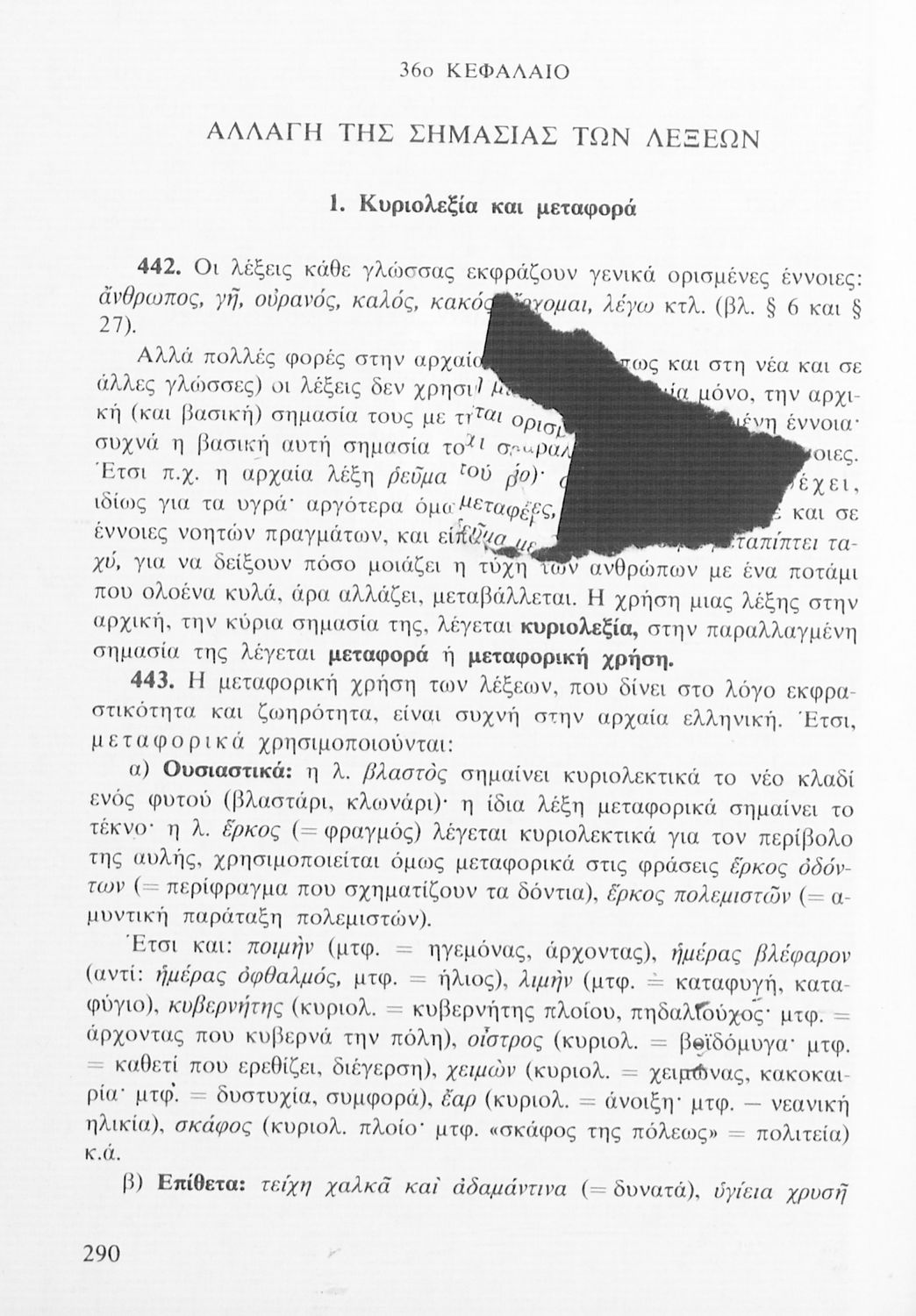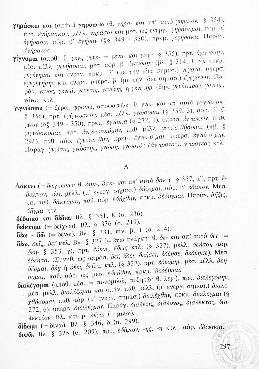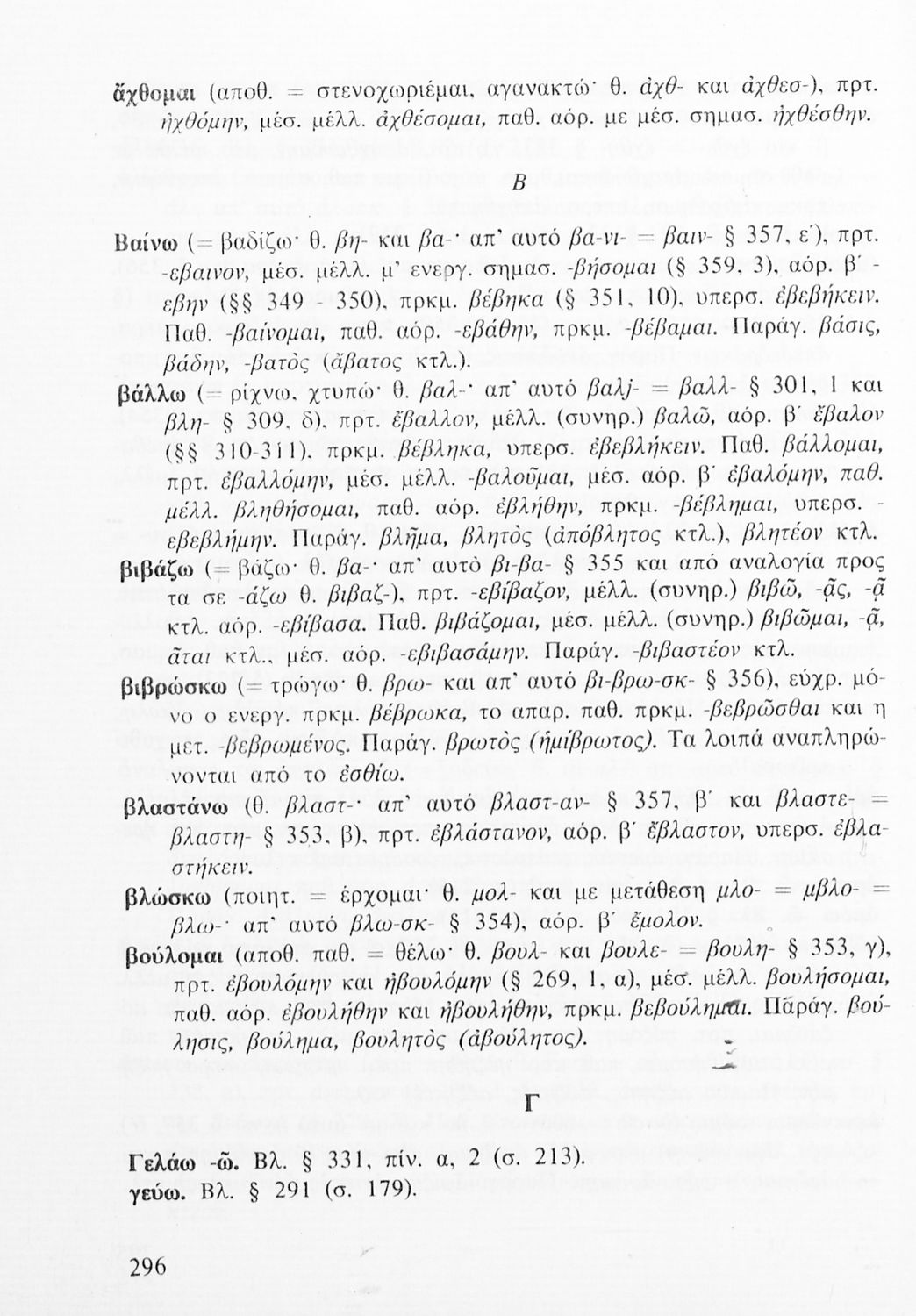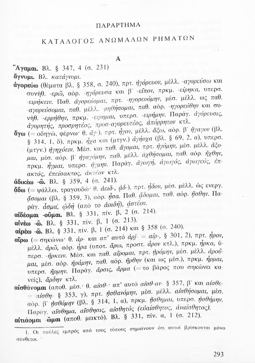 Σχολικό εγχειρίδιο Αρχαίων Ελληνικών Γυμνασίου που περιλαμβάνει τη γραμματική της αρχαίας ελληνικής και είναι χωρισμένο σε φθογγολογικό και τυπολογικό μέρος Περιέχει και κατάλογο ανωμάλων ρημάτων.