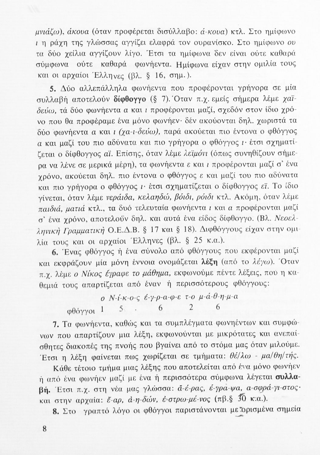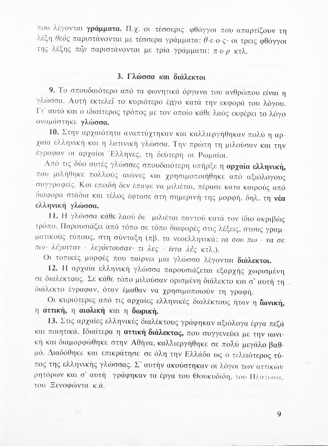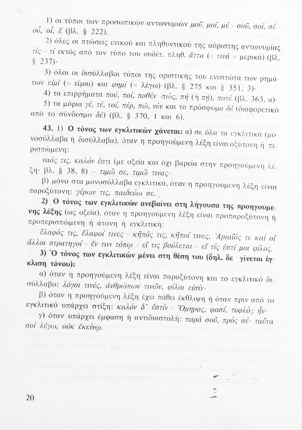 Σχολικό εγχειρίδιο Αρχαίων Ελληνικών Γυμνασίου που περιλαμβάνει τη γραμματική της αρχαίας ελληνικής και είναι χωρισμένο σε φθογγολογικό και τυπολογικό μέρος Περιέχει και κατάλογο ανωμάλων ρημάτων.