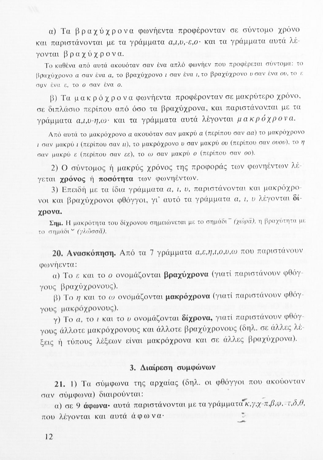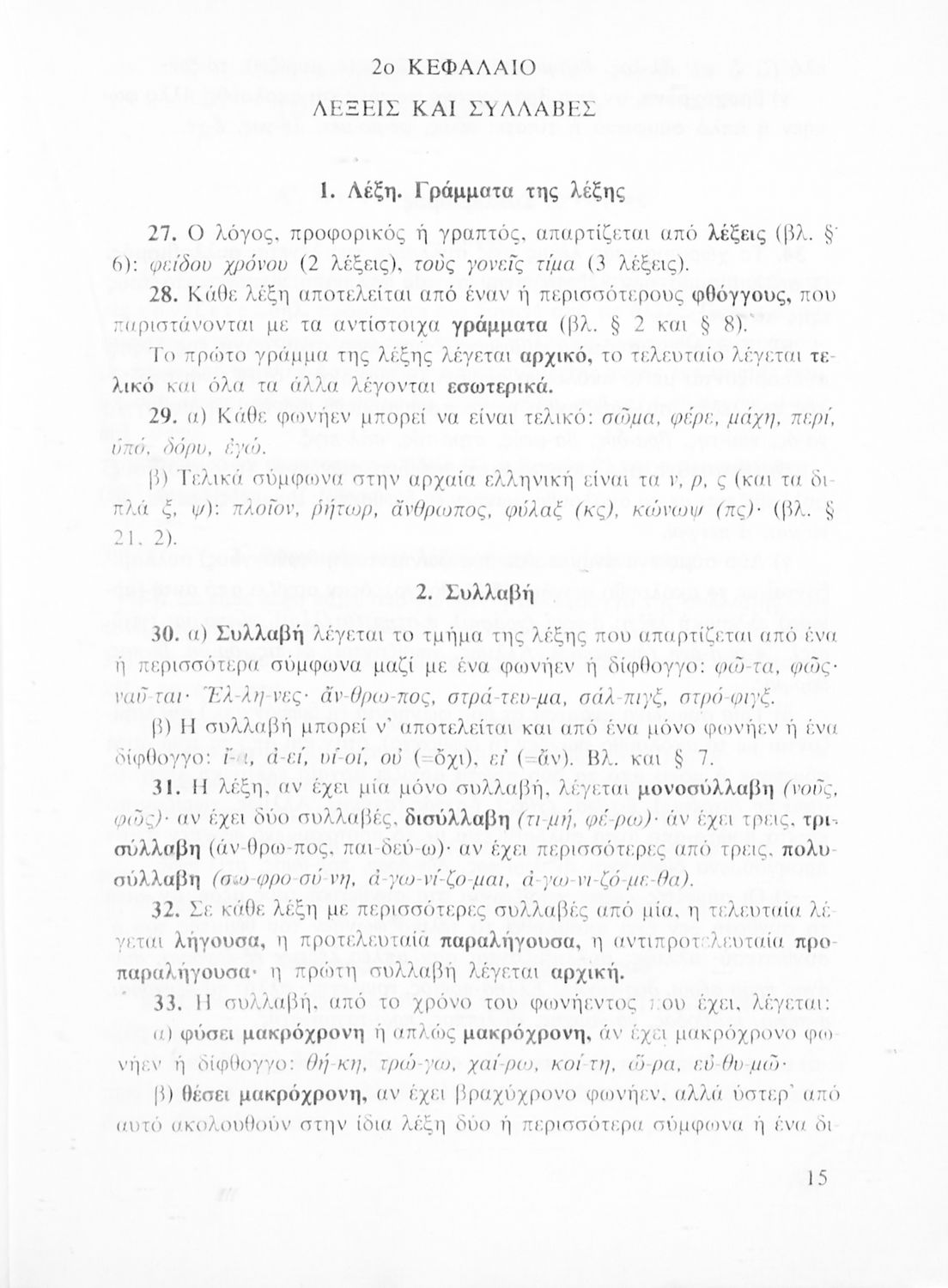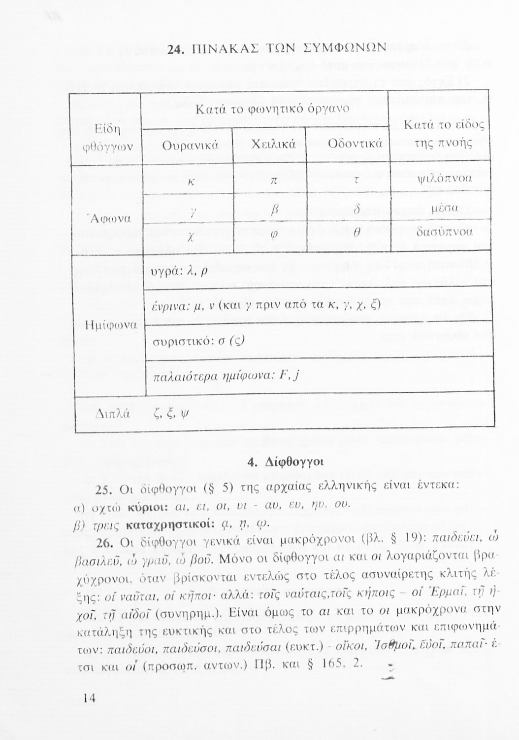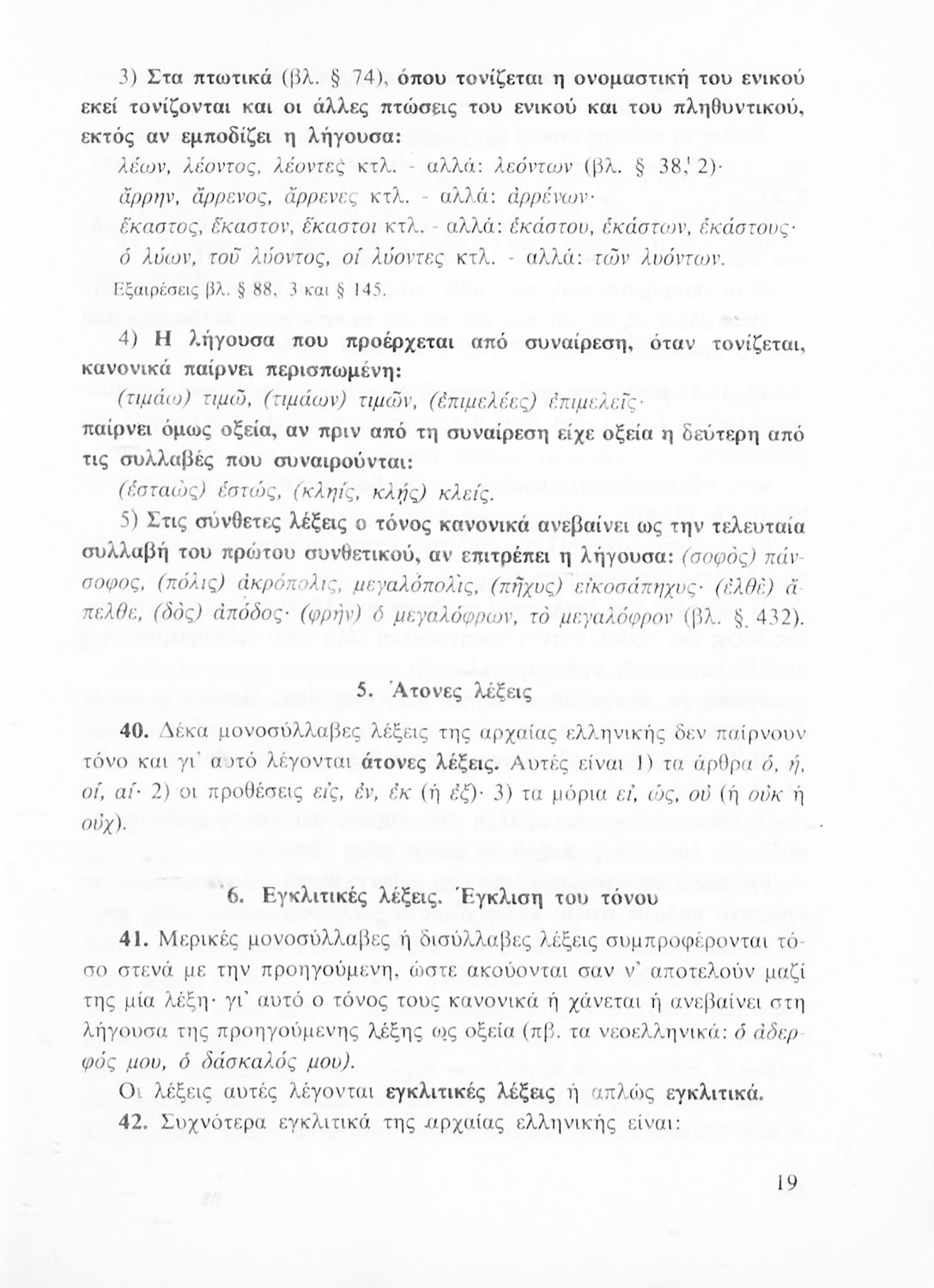 Σχολικό εγχειρίδιο Αρχαίων Ελληνικών Γυμνασίου που περιλαμβάνει τη γραμματική της αρχαίας ελληνικής και είναι χωρισμένο σε φθογγολογικό και τυπολογικό μέρος Περιέχει και κατάλογο ανωμάλων ρημάτων.
