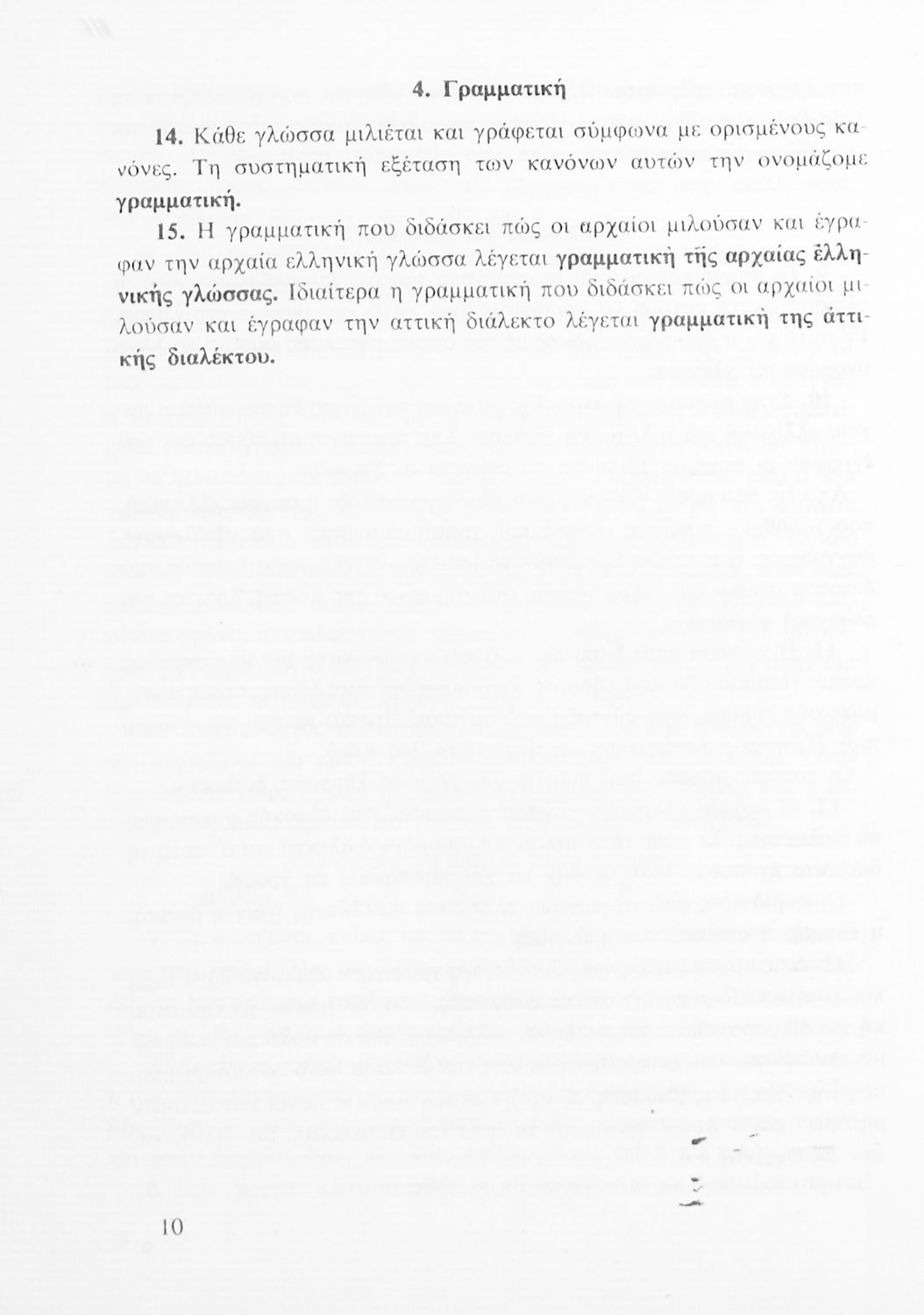 Σχολικό εγχειρίδιο Αρχαίων Ελληνικών Α', Β', Γ' και Δ' Γυμνασίου που περιέχει τους κανόνες γραμματικής και είναι χωρισμένο σε φθογγολογικό, τυπολογικό και ετυμολογικό μέρος. Περιέχει και κατάλογο ανωμάλων ...