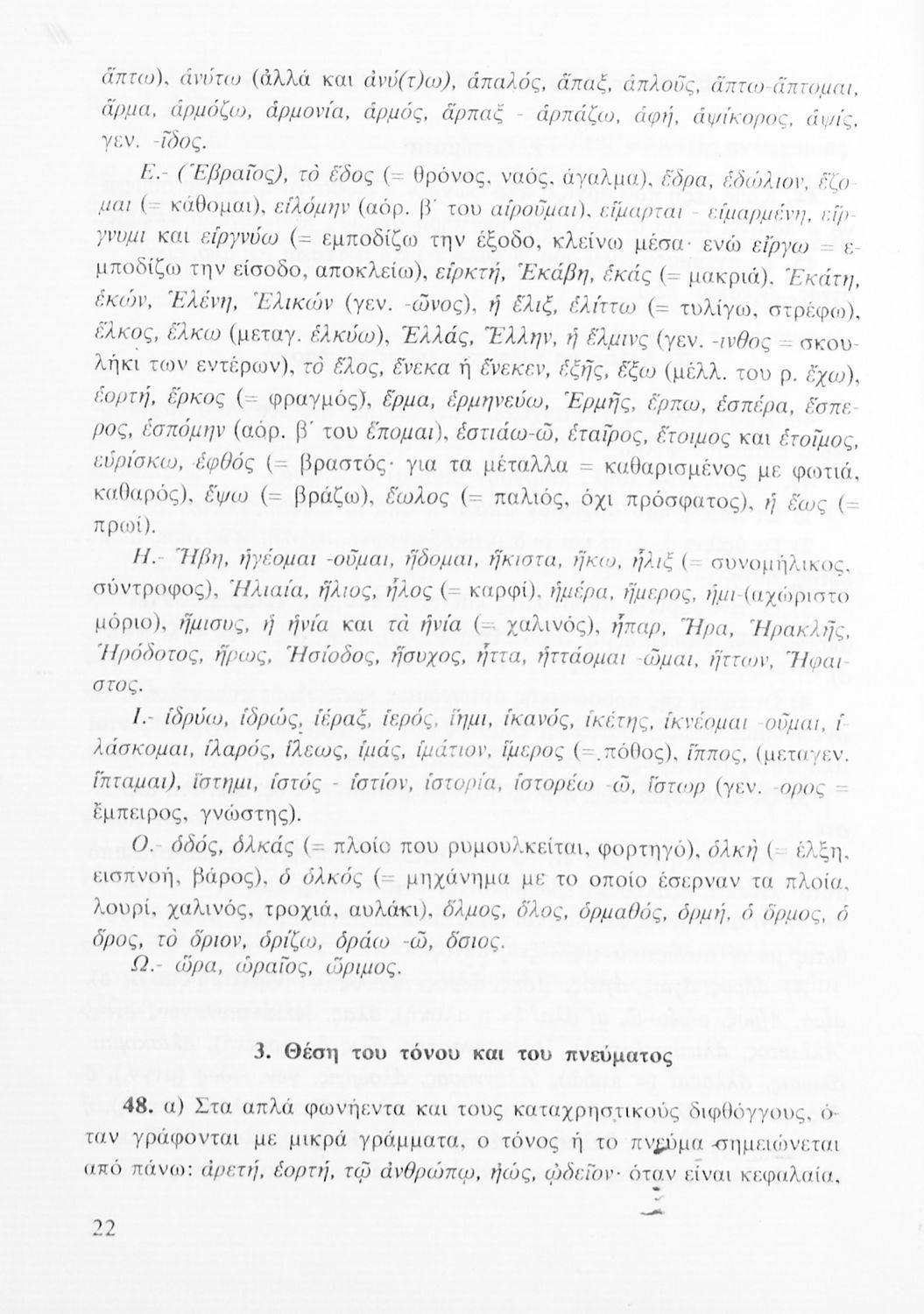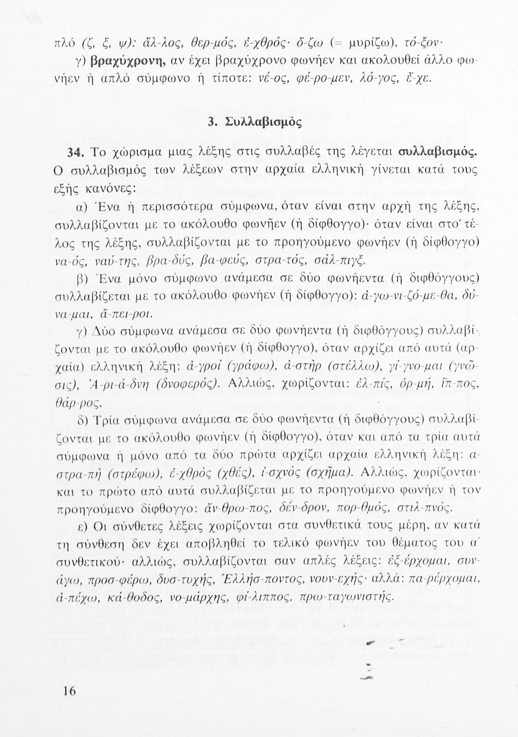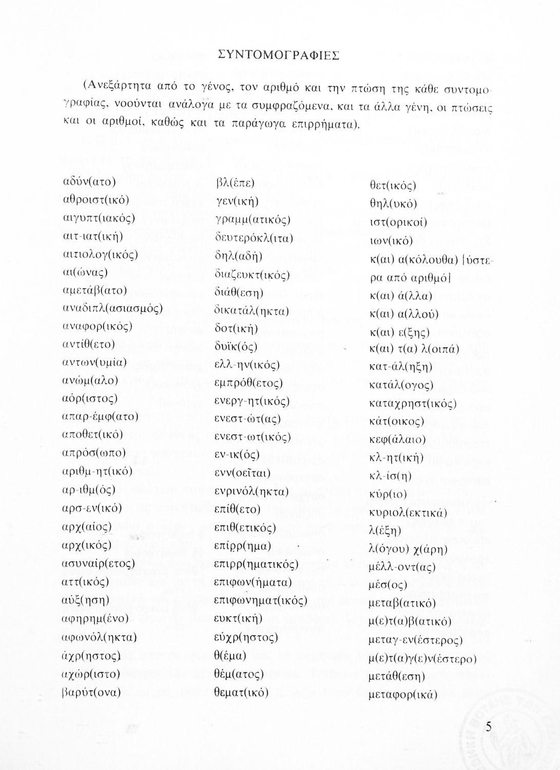 Σχολικό εγχειρίδιο Αρχαίων Ελληνικών που περιέχει τους κανόνες γραμματικής και είναι χωρισμένο σε φθογγολογικό, τυπολογικό και ετυμολογικό μέρος. Περιέχει και κατάλογο ανωμάλων ρημάτων.