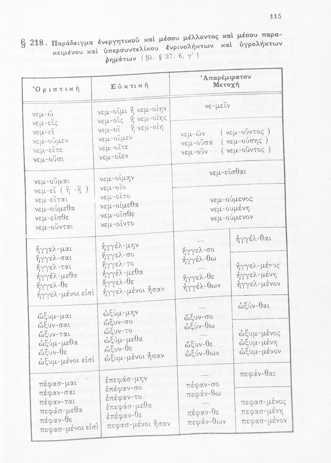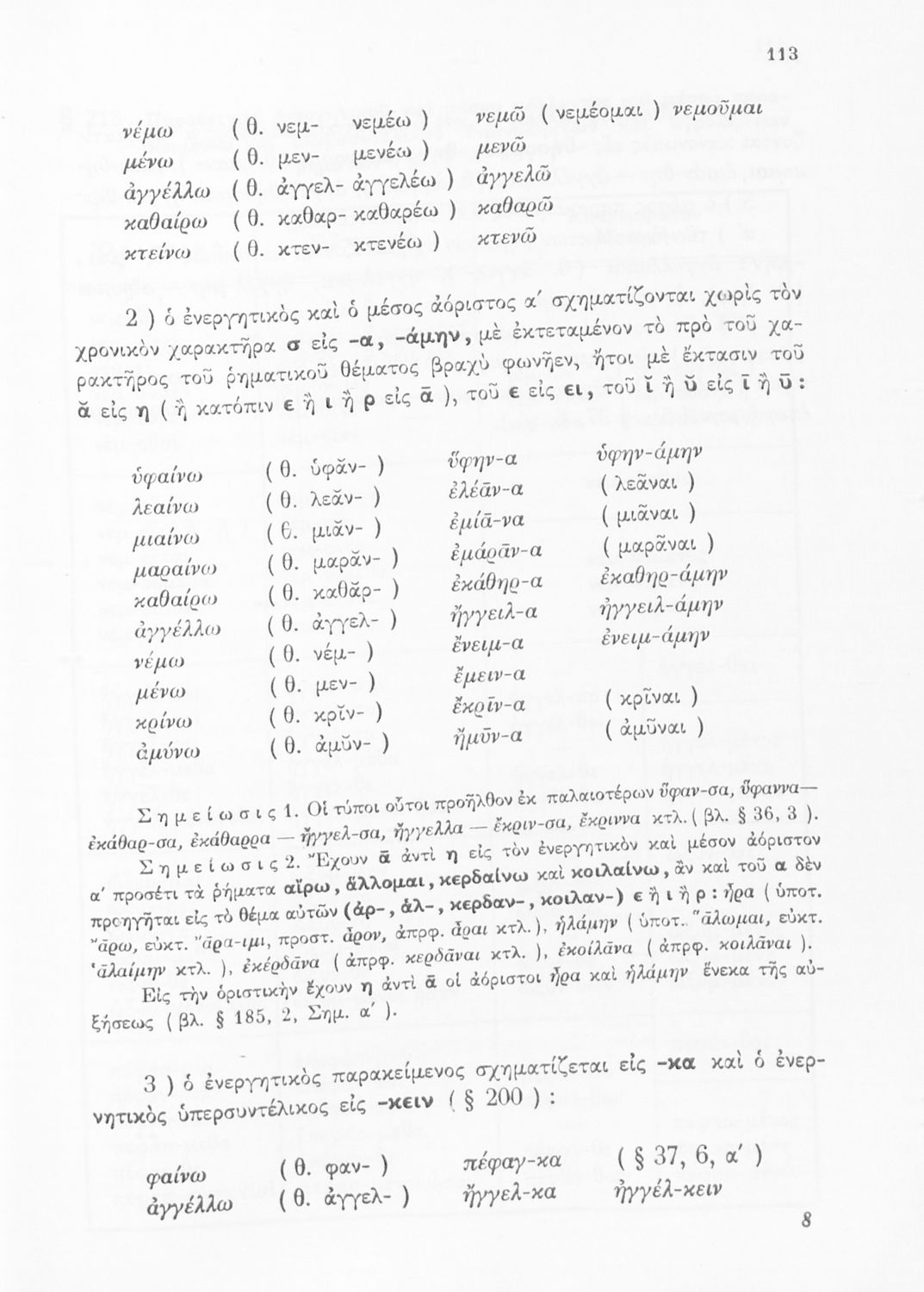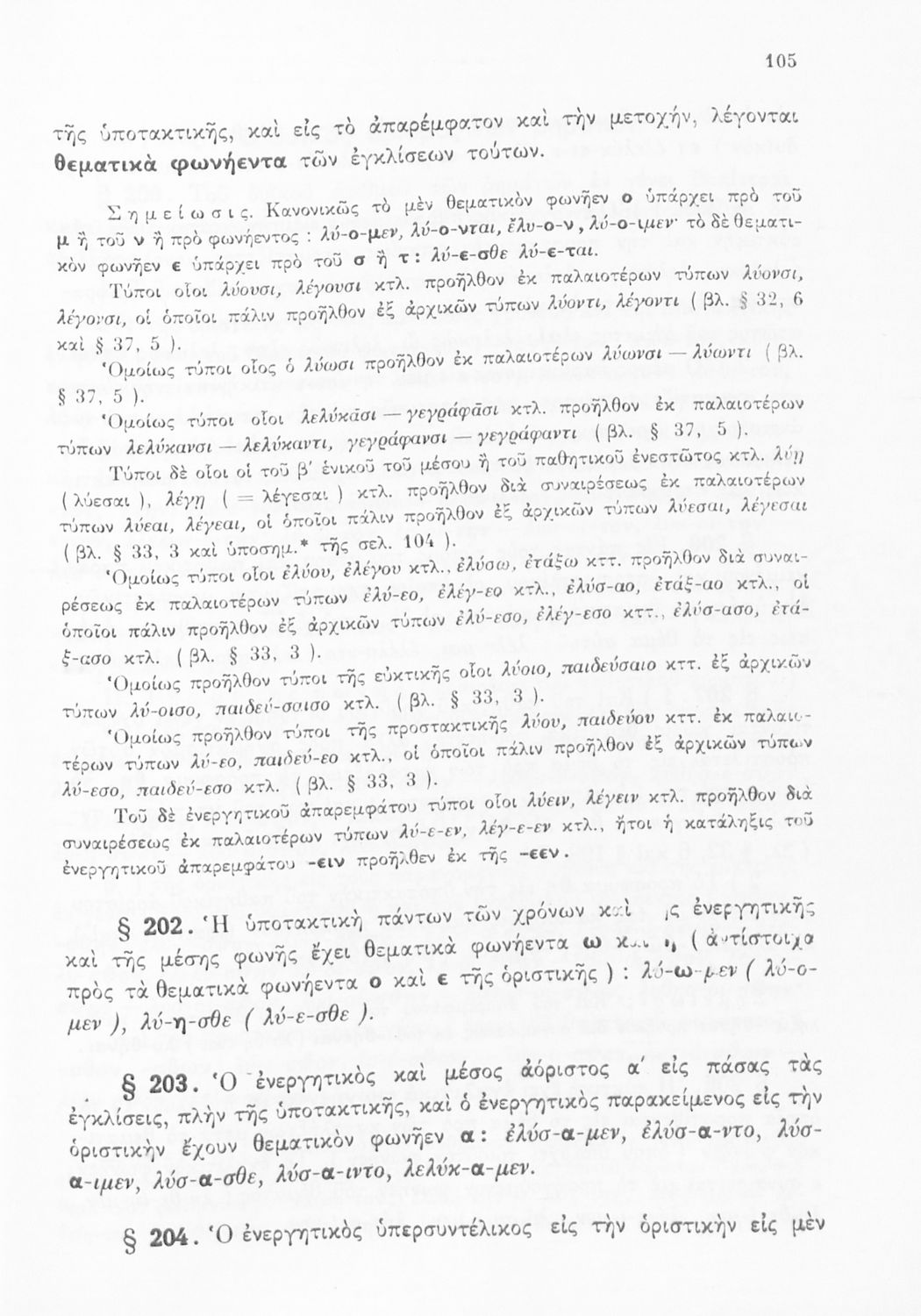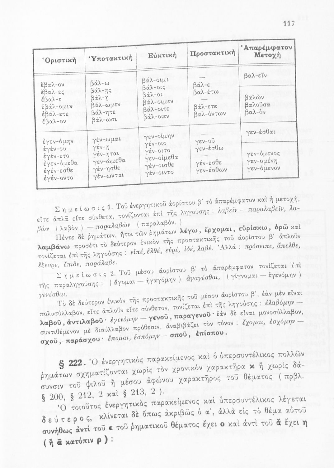 Σχολικό εγχειρίδιο Αρχαίων Ελληνικών Α', Β', και Γ' Γυμνασίου που περιέχει τους κανόνες γραμματικής και είναι χωρισμένο σε φθογγολογικό, τυπολογικό και ετυμολογικό μέρος. Περιέχει και κατάλογο ανωμάλων ρημάτων.