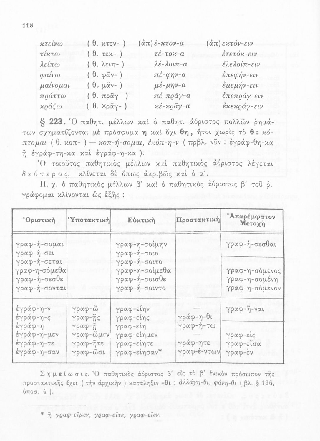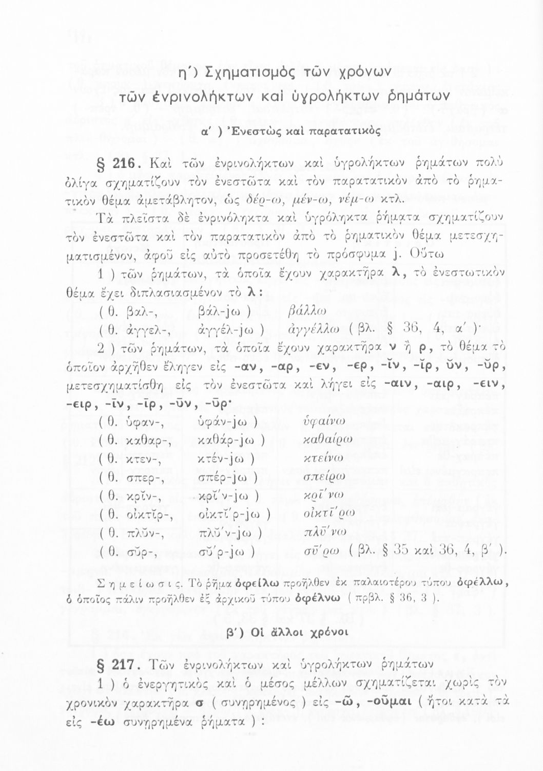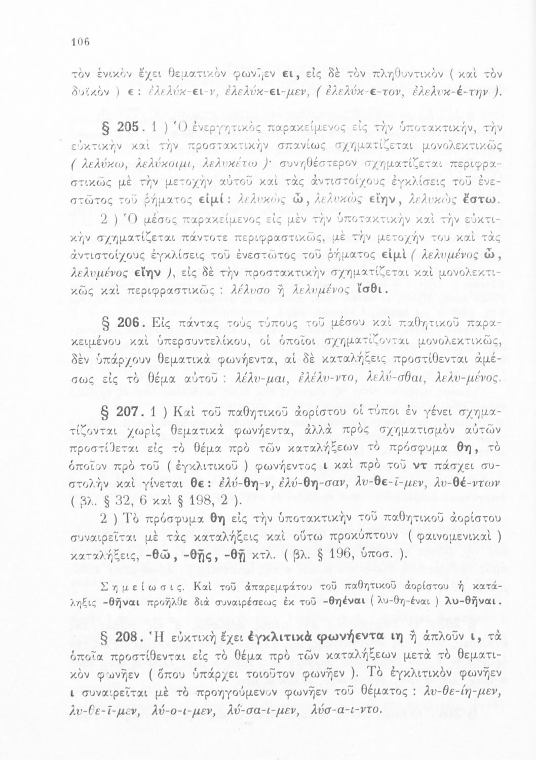 Σχολικό εγχειρίδιο Αρχαίων Ελληνικών Α', Β', και Γ' Γυμνασίου που περιέχει τους κανόνες γραμματικής και είναι χωρισμένο σε φθογγολογικό, τυπολογικό και ετυμολογικό μέρος. Περιέχει και κατάλογο ανωμάλων ρημάτων.