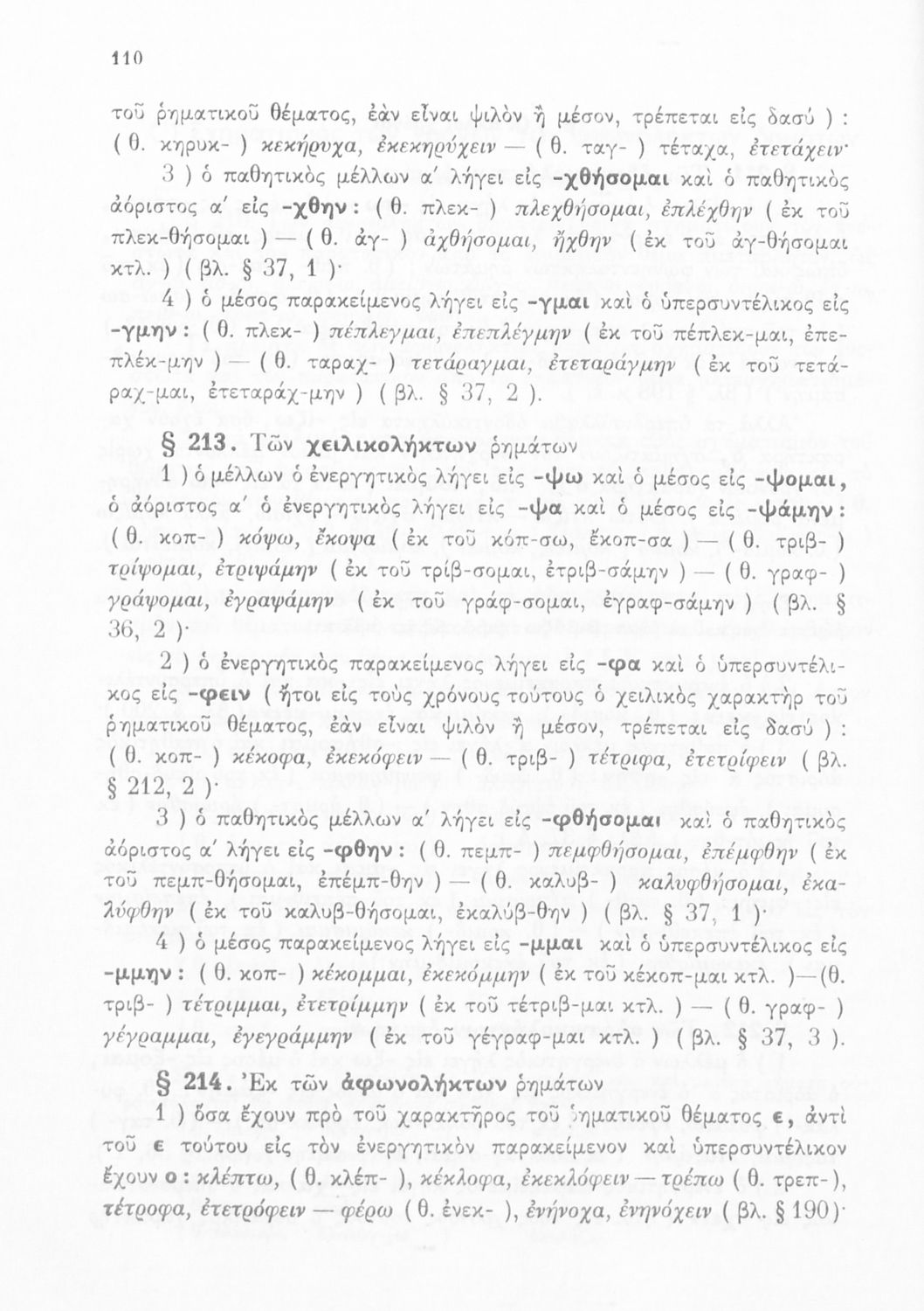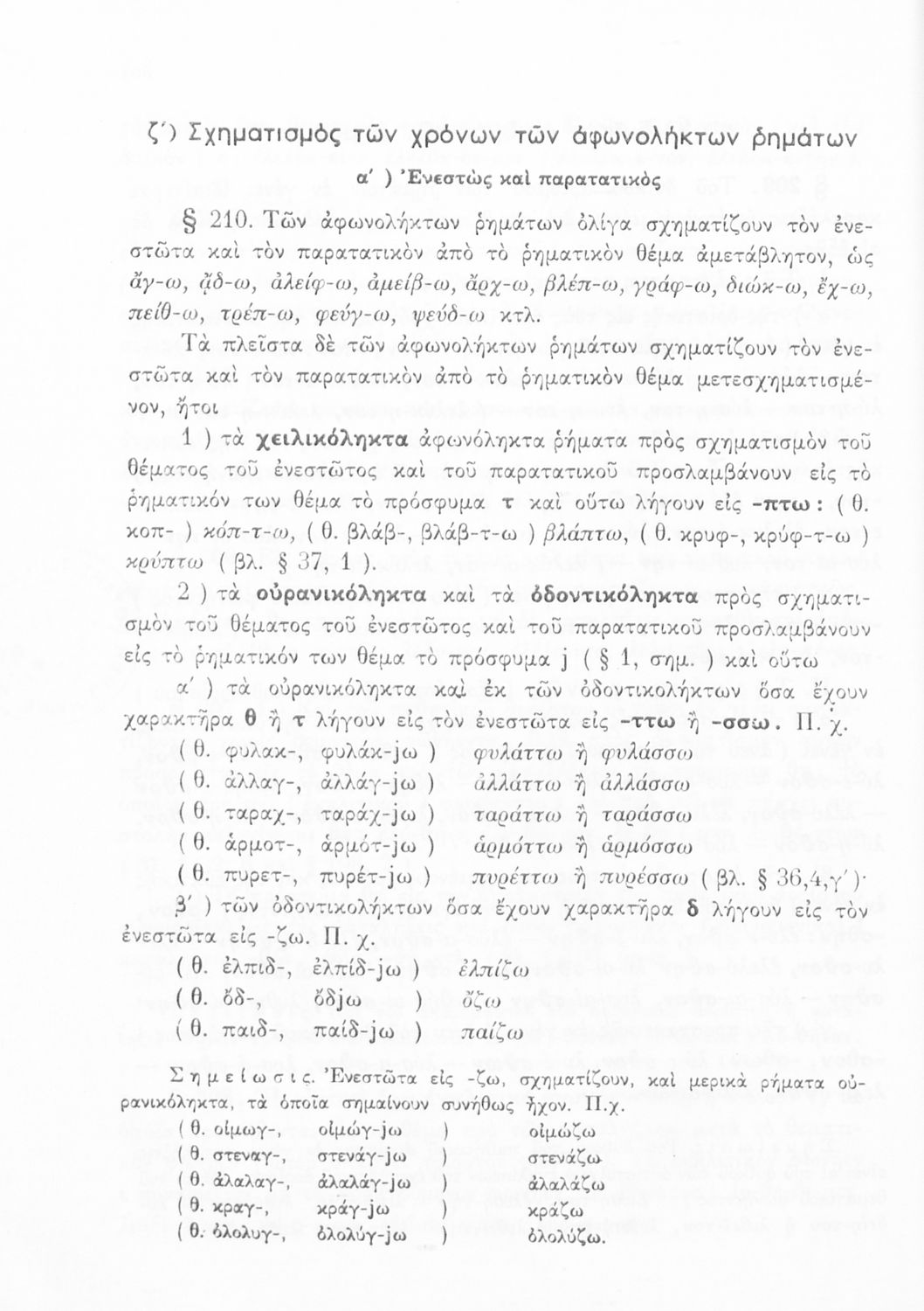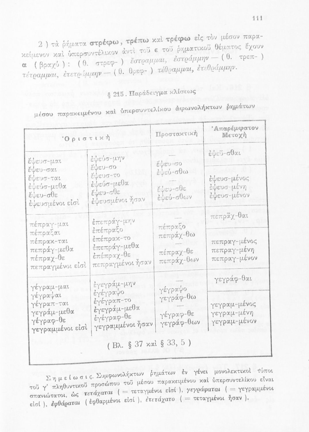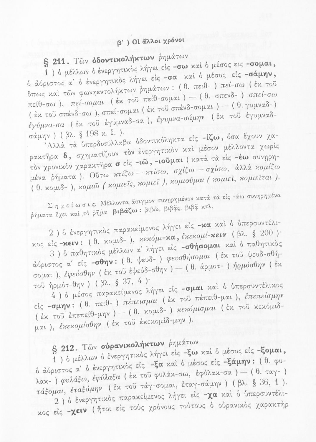 Σχολικό εγχειρίδιο Αρχαίων Ελληνικών Α', Β', και Γ' Γυμνασίου που περιέχει τους κανόνες γραμματικής και είναι χωρισμένο σε φθογγολογικό, τυπολογικό και ετυμολογικό μέρος. Περιέχει και κατάλογο ανωμάλων ρημάτων.
