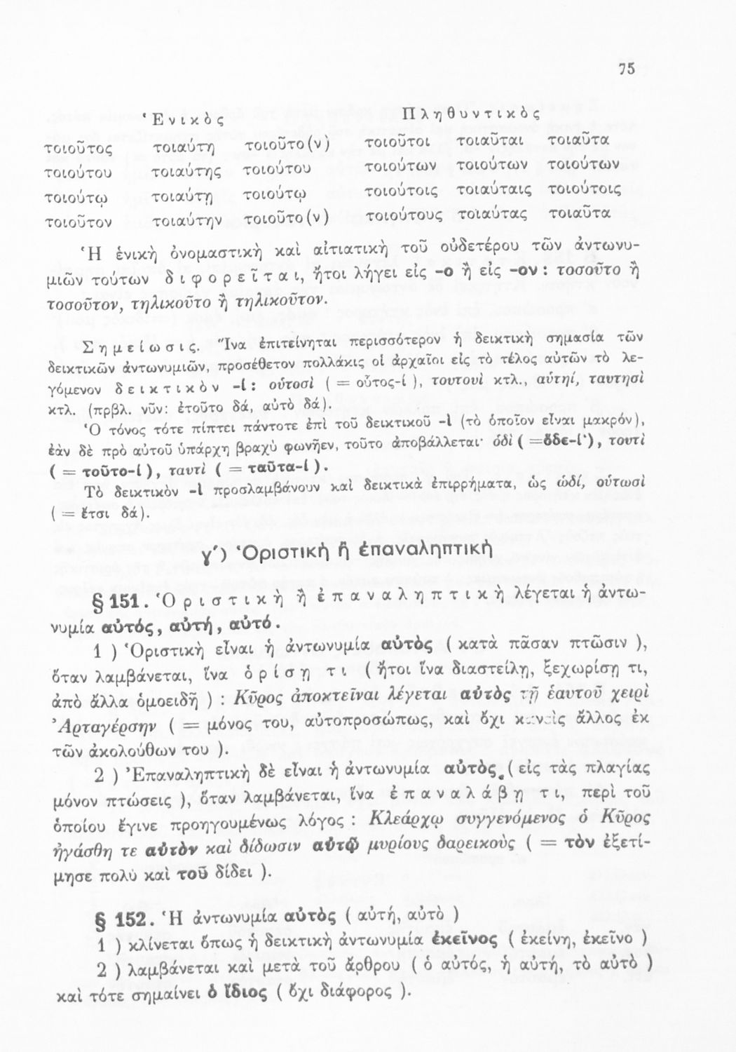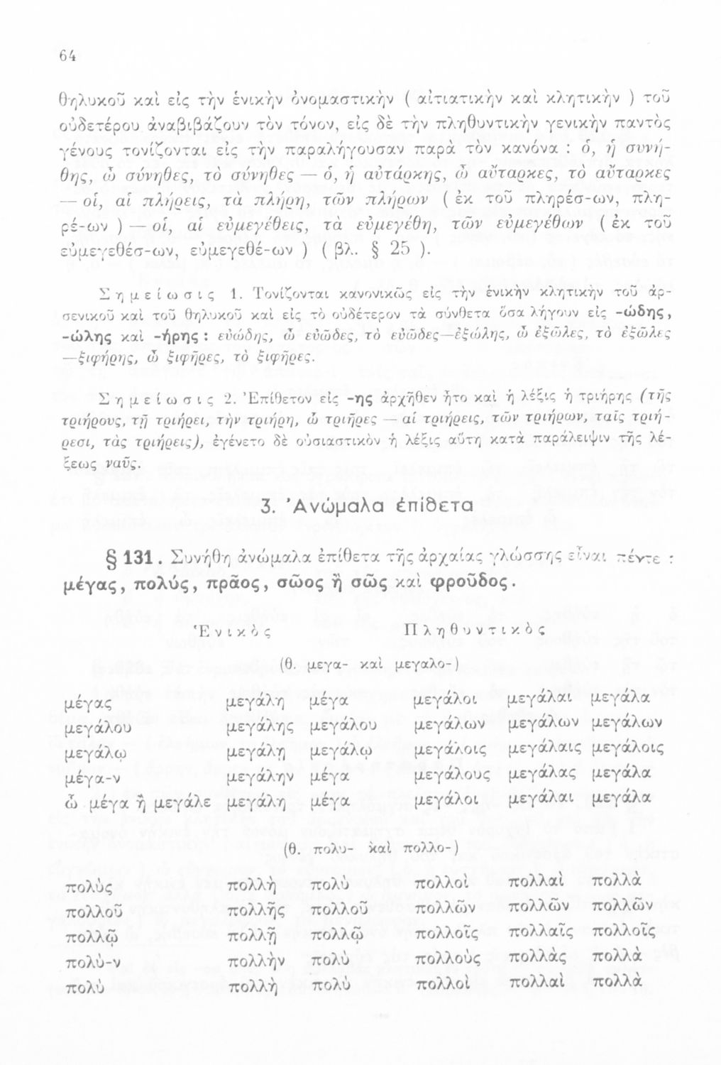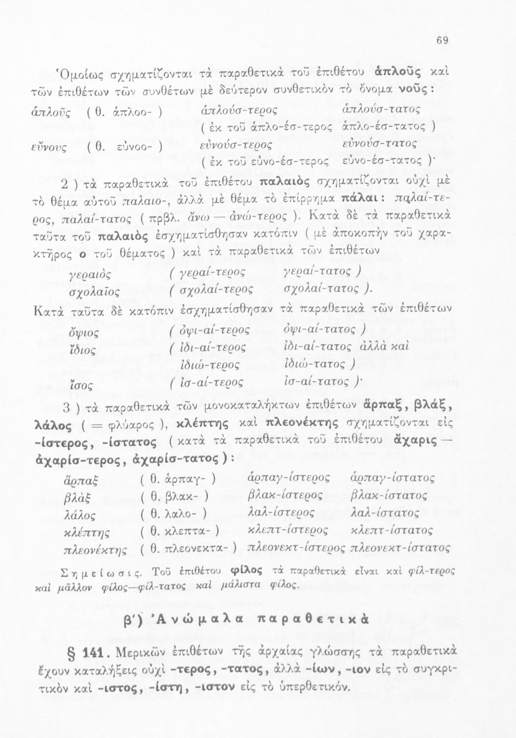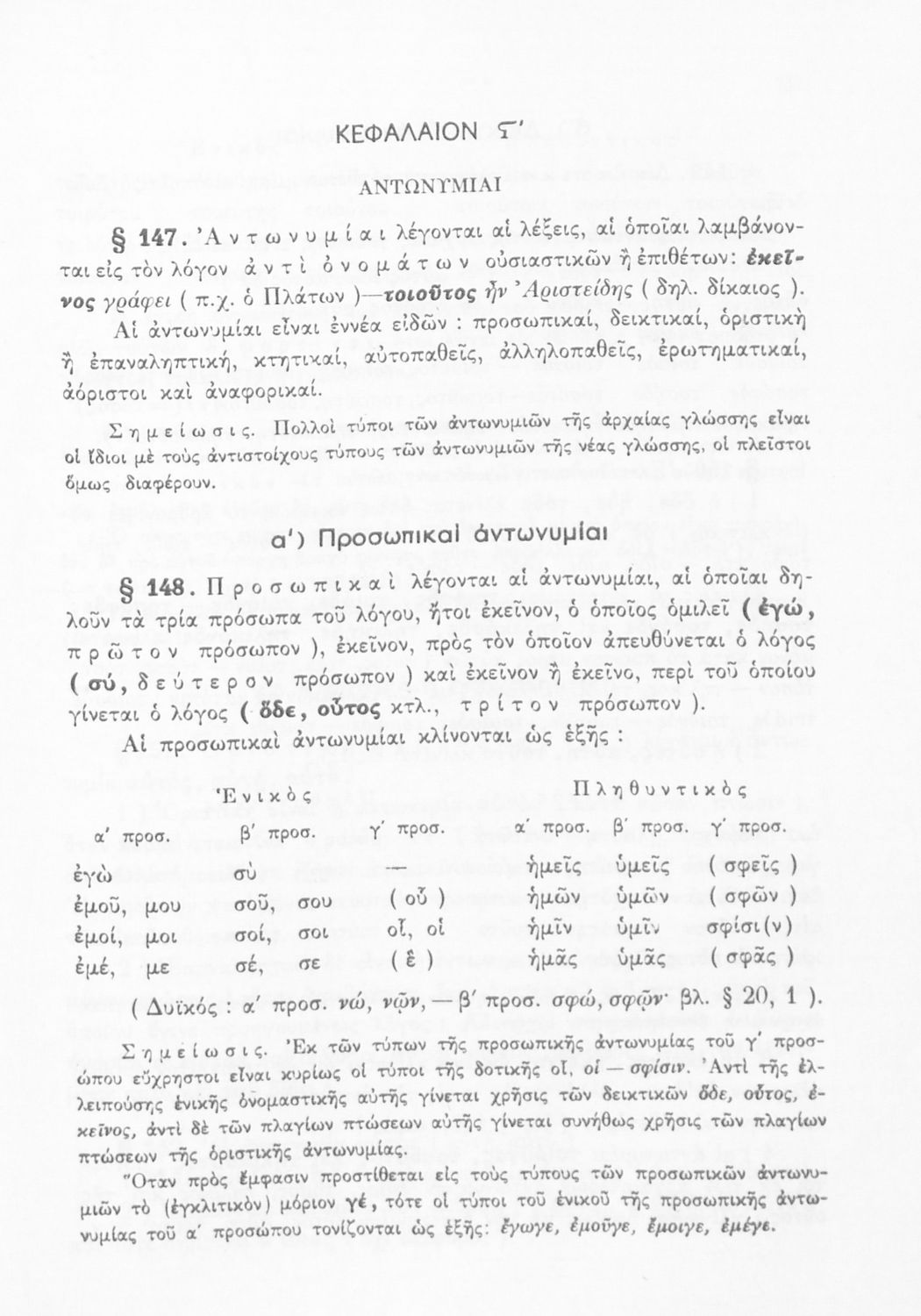 Σχολικό εγχειρίδιο Αρχαίων Ελληνικών Α', Β', και Γ' Γυμνασίου που περιέχει τους κανόνες γραμματικής και είναι χωρισμένο σε φθογγολογικό, τυπολογικό και ετυμολογικό μέρος. Περιέχει και κατάλογο ανωμάλων ρημάτων.