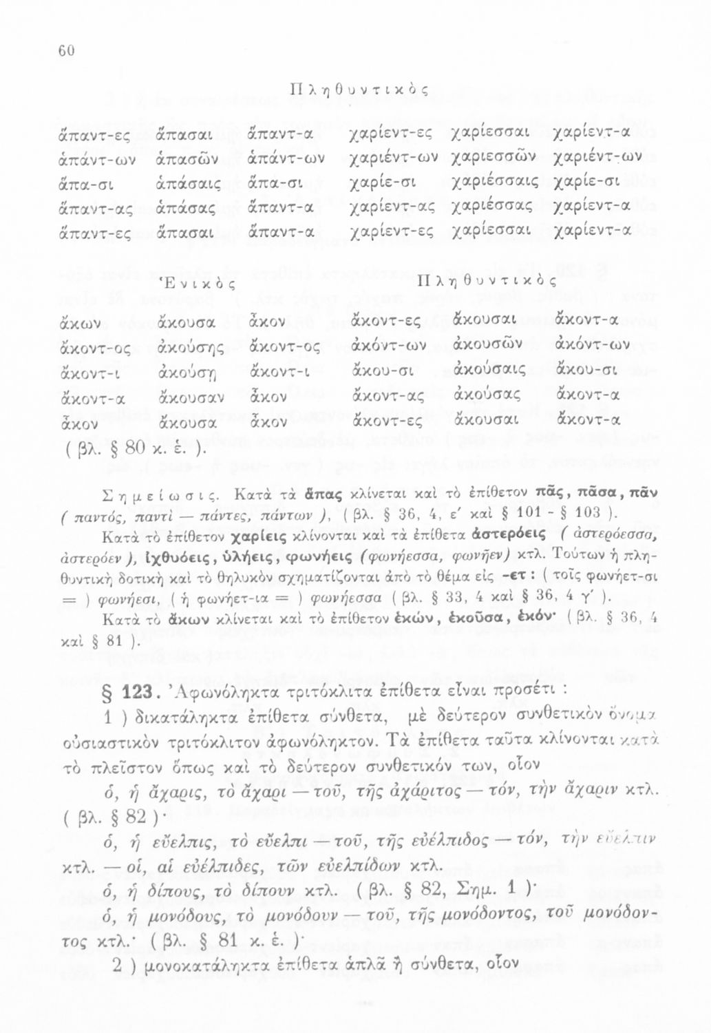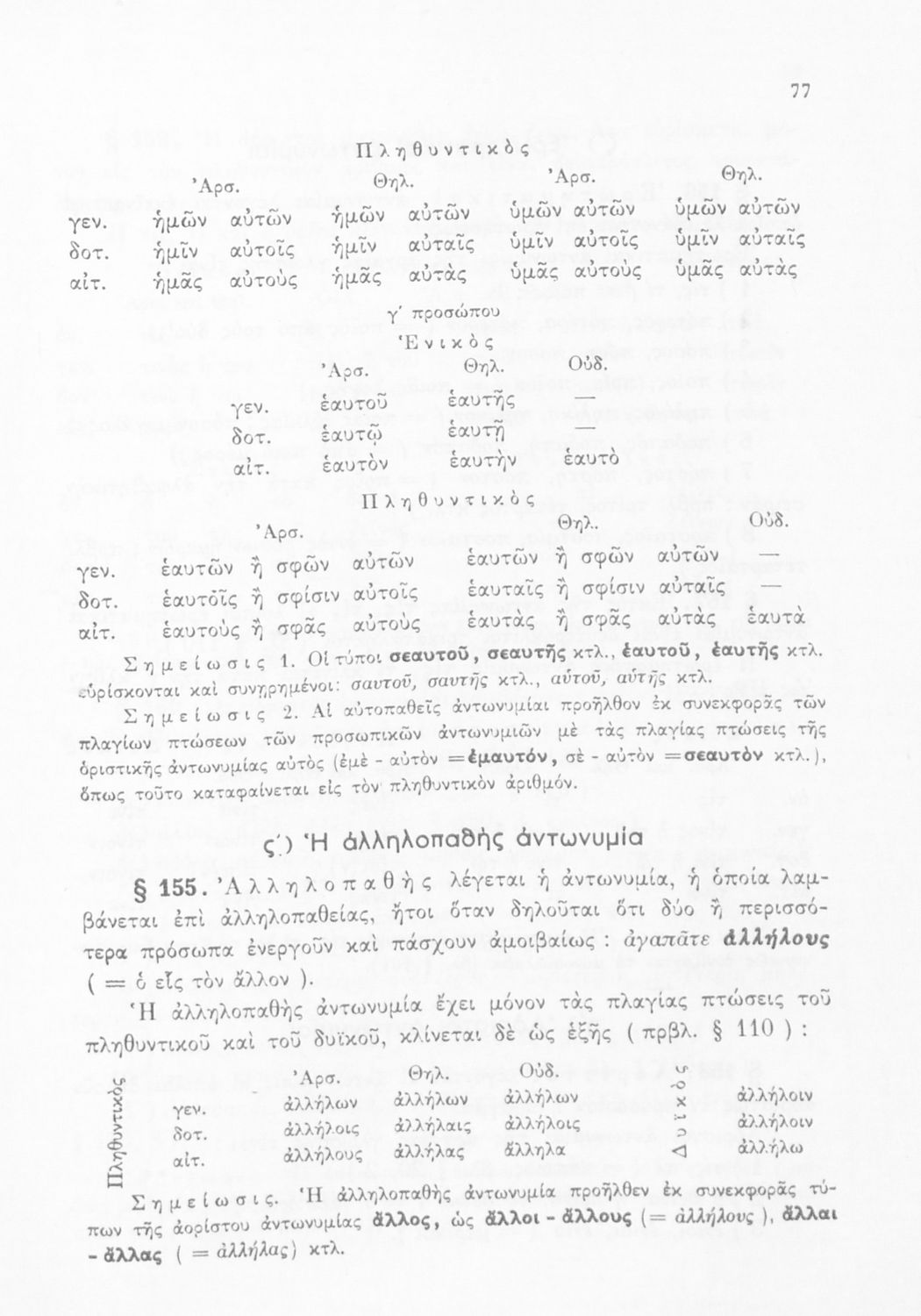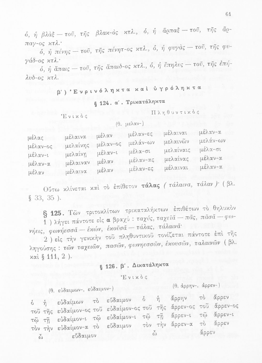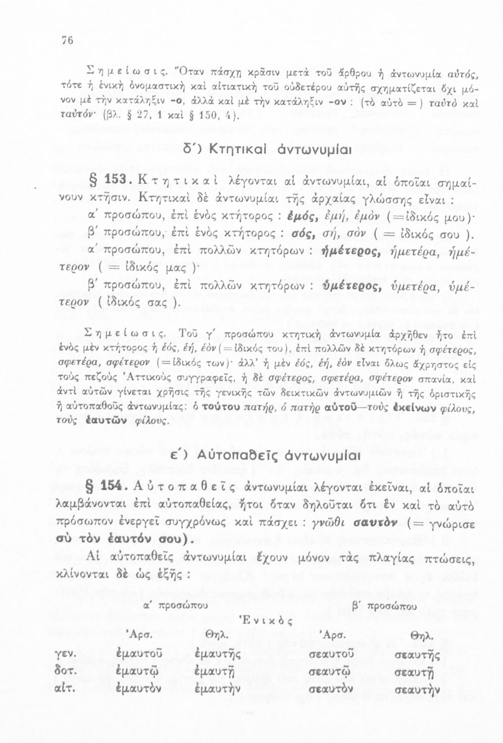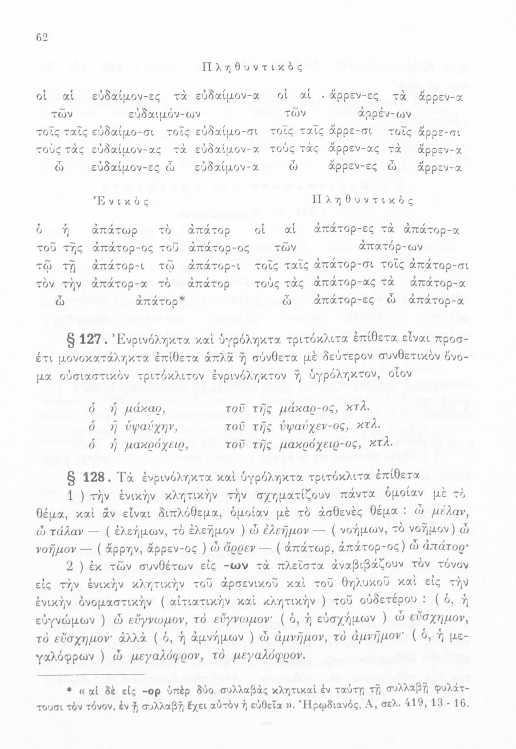 Σχολικό εγχειρίδιο Αρχαίων Ελληνικών Α', Β', και Γ' Γυμνασίου που περιέχει τους κανόνες γραμματικής και είναι χωρισμένο σε φθογγολογικό, τυπολογικό και ετυμολογικό μέρος. Περιέχει και κατάλογο ανωμάλων ρημάτων.