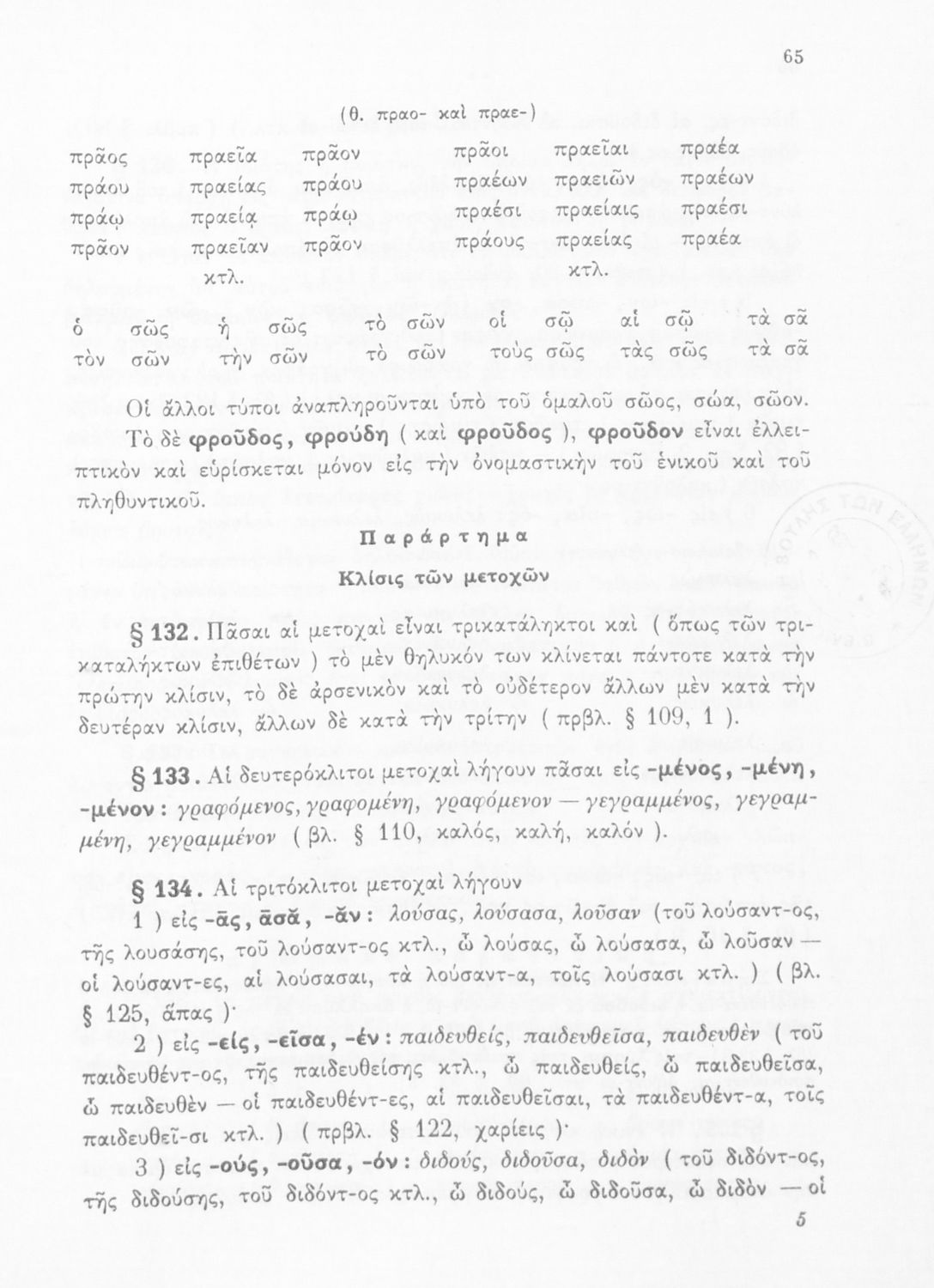 Σχολικό εγχειρίδιο Αρχαίων Ελληνικών Γ΄ Γυμνασίου που περιέχει τους κανόνες γραμματικής και είναι χωρισμένο σε φθογγολογικό, τυπολογικό και ετυμολογικό μέρος. Περιέχει και κατάλογο ανωμάλων ρημάτων.