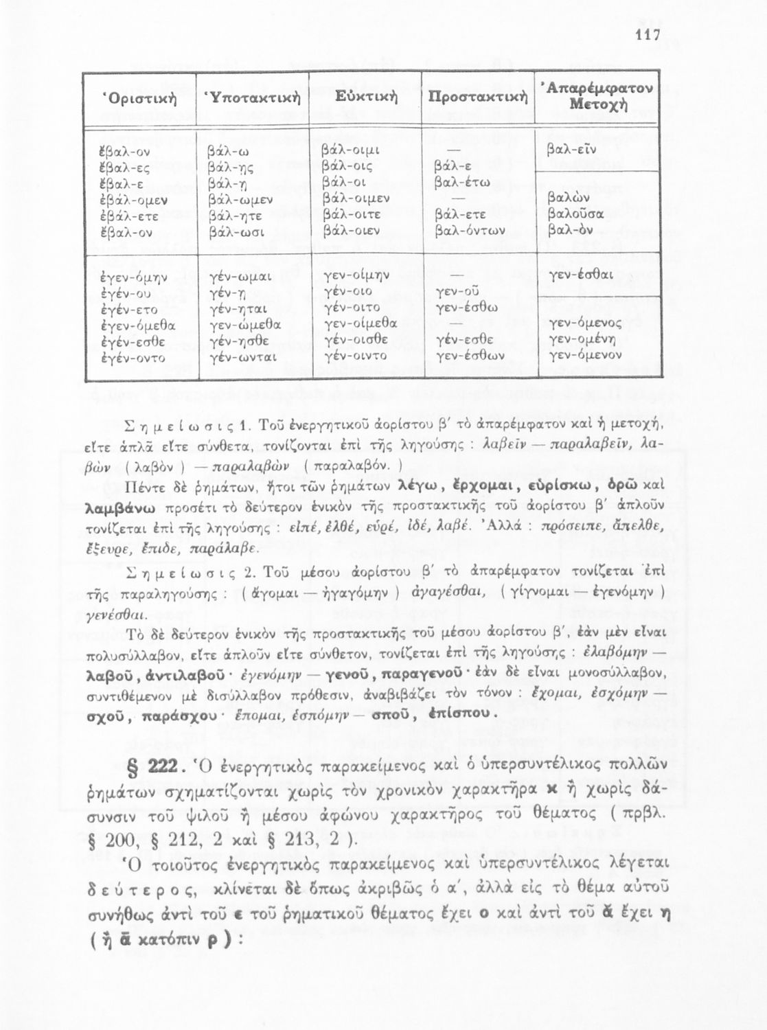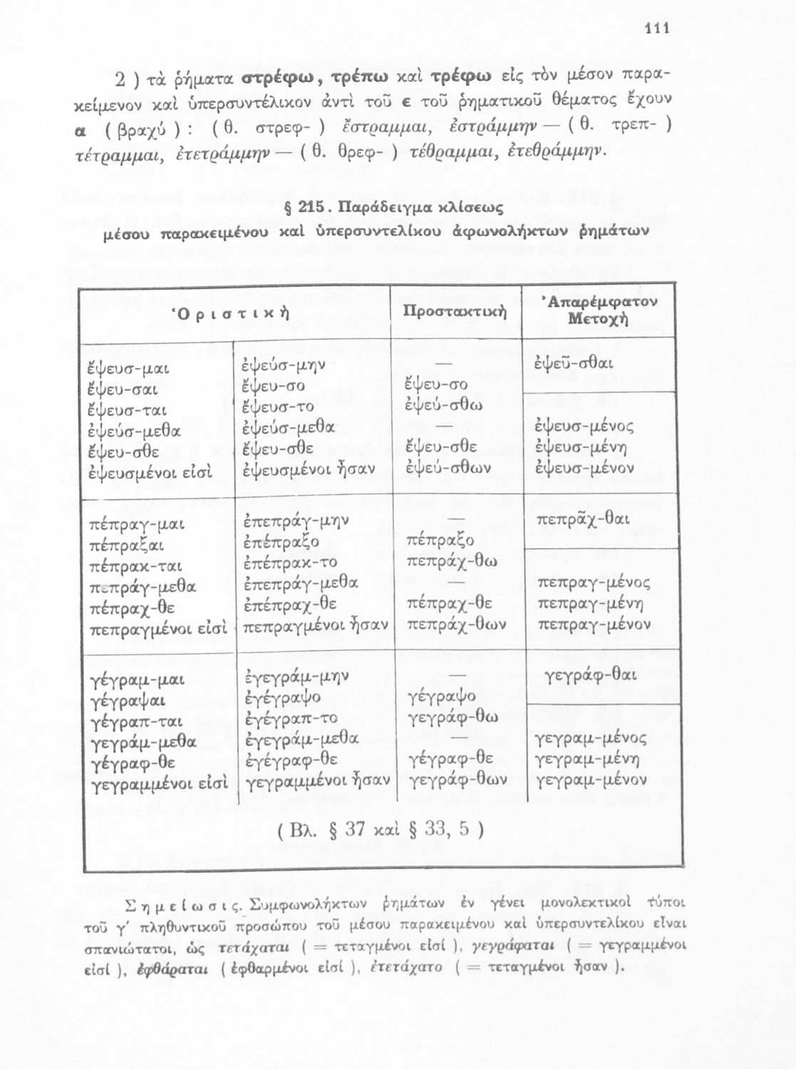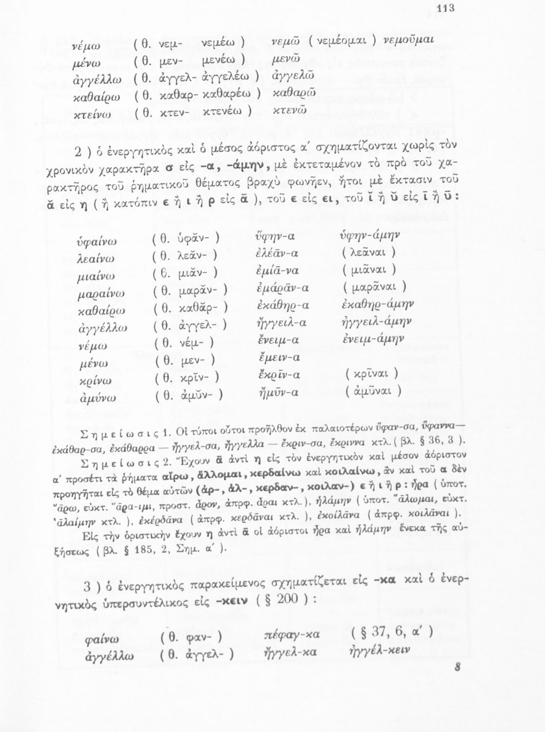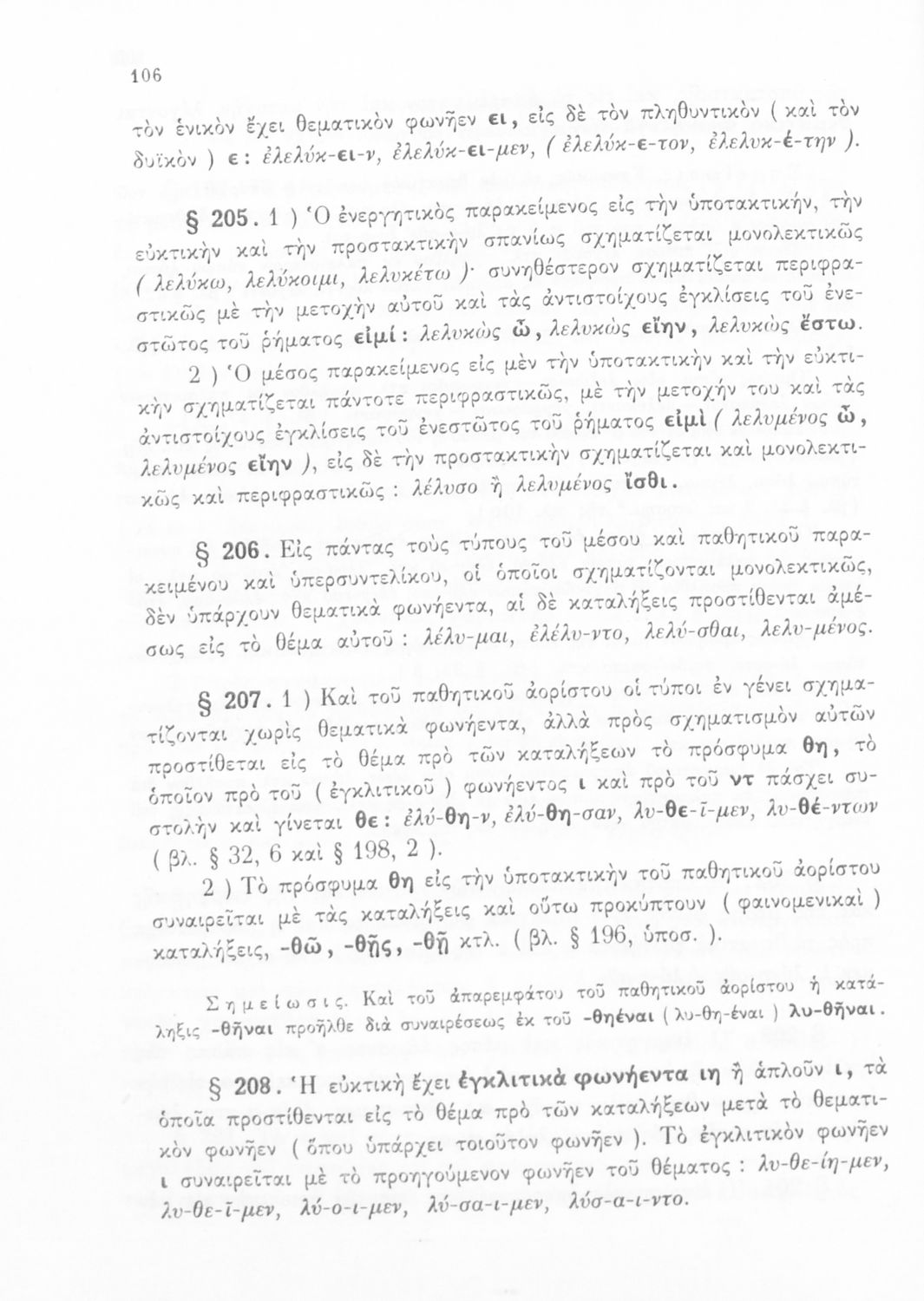 Σχολικό εγχειρίδιο Αρχαίων Ελληνικών Α', Β', και Γ' Γυμνασίου που περιέχει τους κανόνες γραμματικής και είναι χωρισμένο σε φθογγολογικό, τυπολογικό και ετυμολογικό μέρος. Περιέχει και κατάλογο ανωμάλων ρημάτων.