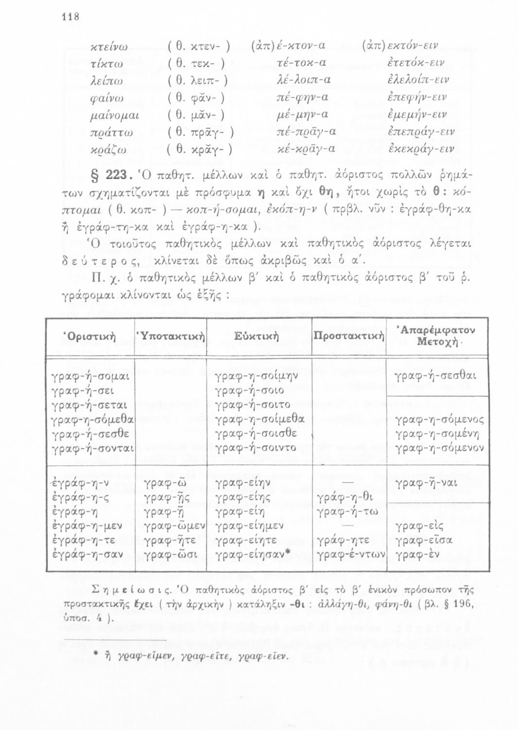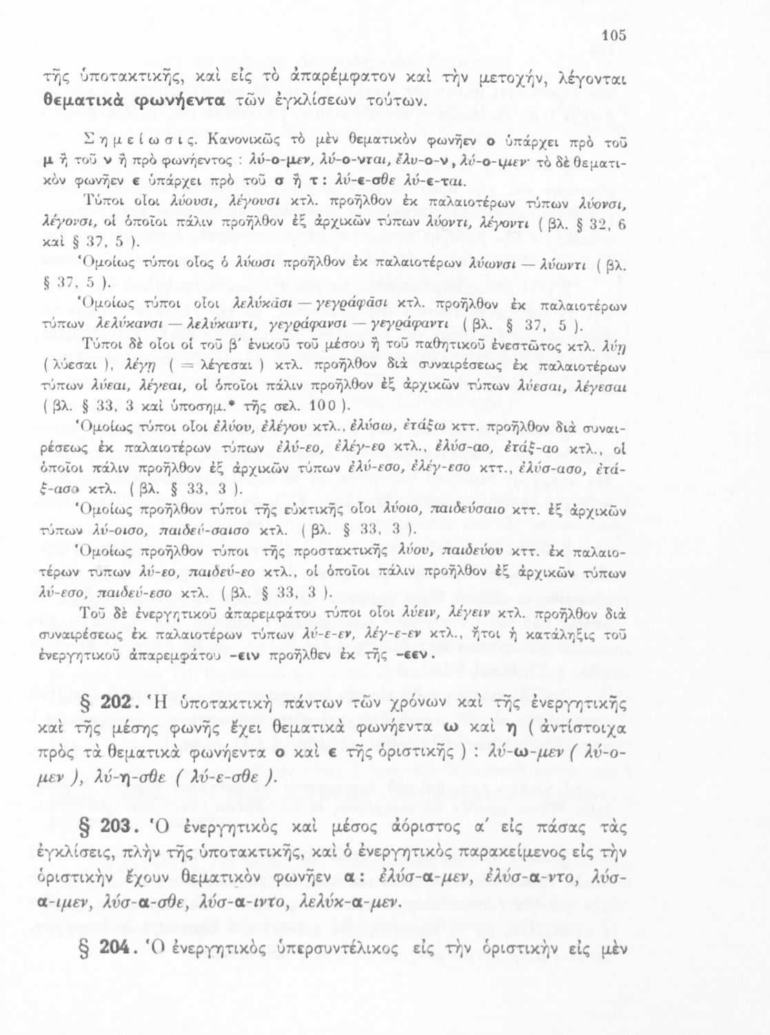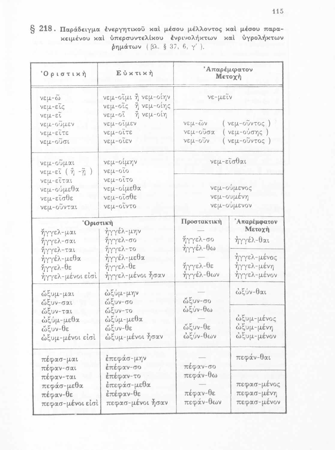 Σχολικό εγχειρίδιο Αρχαίων Ελληνικών Α', Β', και Γ' Γυμνασίου που περιέχει τους κανόνες γραμματικής και είναι χωρισμένο σε φθογγολογικό, τυπολογικό και ετυμολογικό μέρος. Περιέχει και κατάλογο ανωμάλων ρημάτων.
