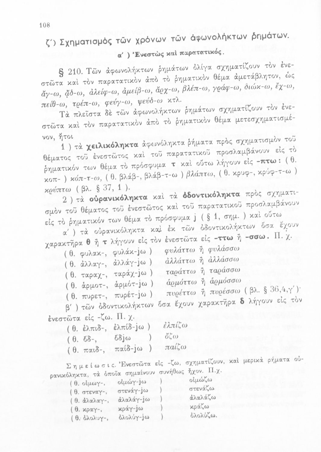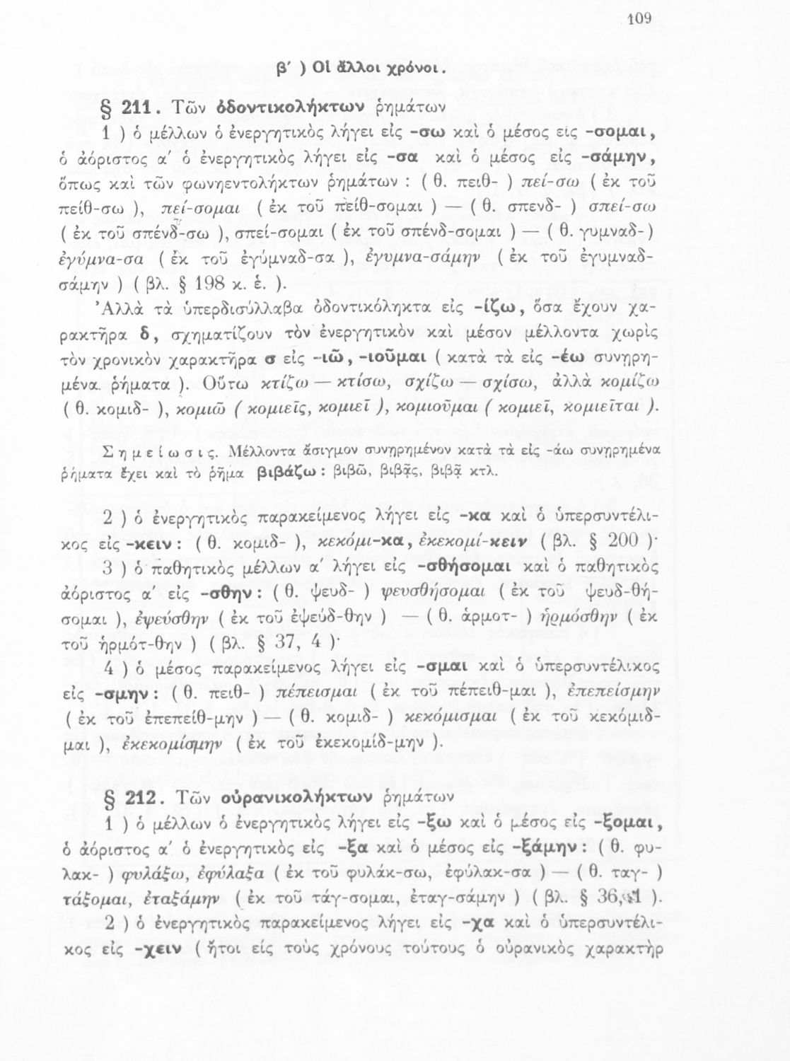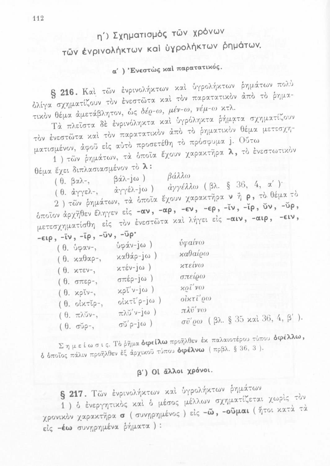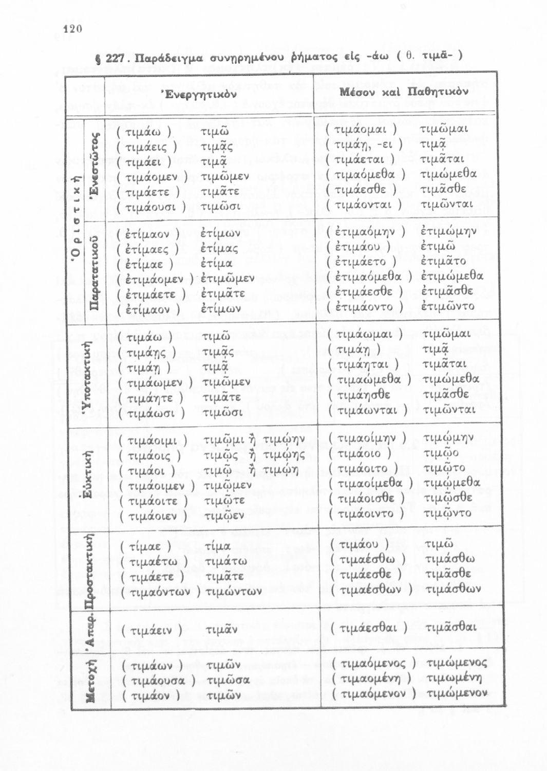 Σχολικό εγχειρίδιο Αρχαίων Ελληνικών Α', Β', και Γ' Γυμνασίου που περιέχει τους κανόνες γραμματικής και είναι χωρισμένο σε φθογγολογικό, τυπολογικό και ετυμολογικό μέρος. Περιέχει και κατάλογο ανωμάλων ρημάτων.