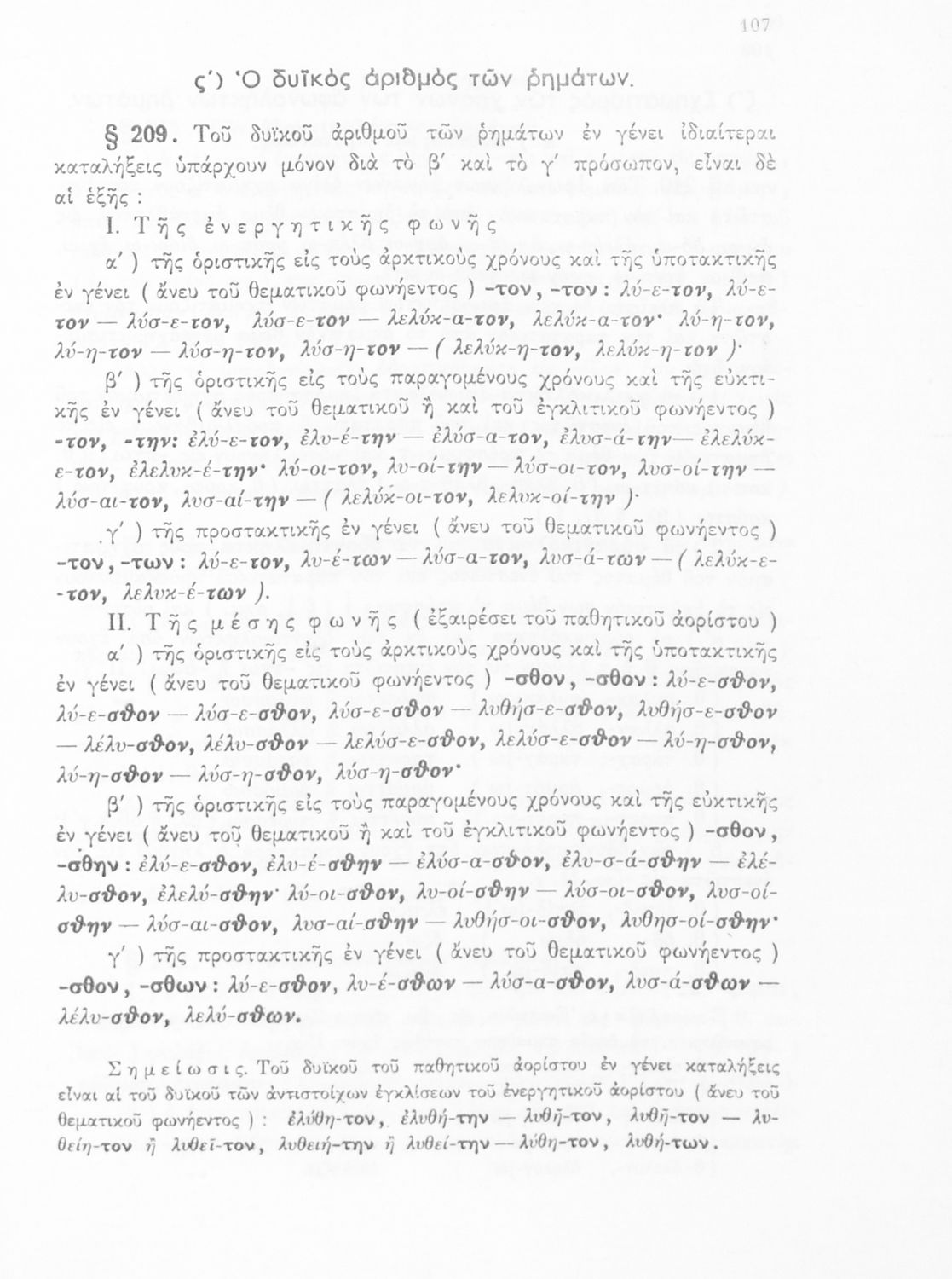 Σχολικό εγχειρίδιο Αρχαίων Ελληνικών Α', Β', Γ' και Δ' Γυμνασίου που περιέχει τους κανόνες γραμματικής και είναι χωρισμένο σε φθογγολογικό, τυπολογικό και ετυμολογικό μέρος. Περιέχει και κατάλογο ανωμάλων ρημάτων. Φέρει το σύμβολο της δικτατορίας.